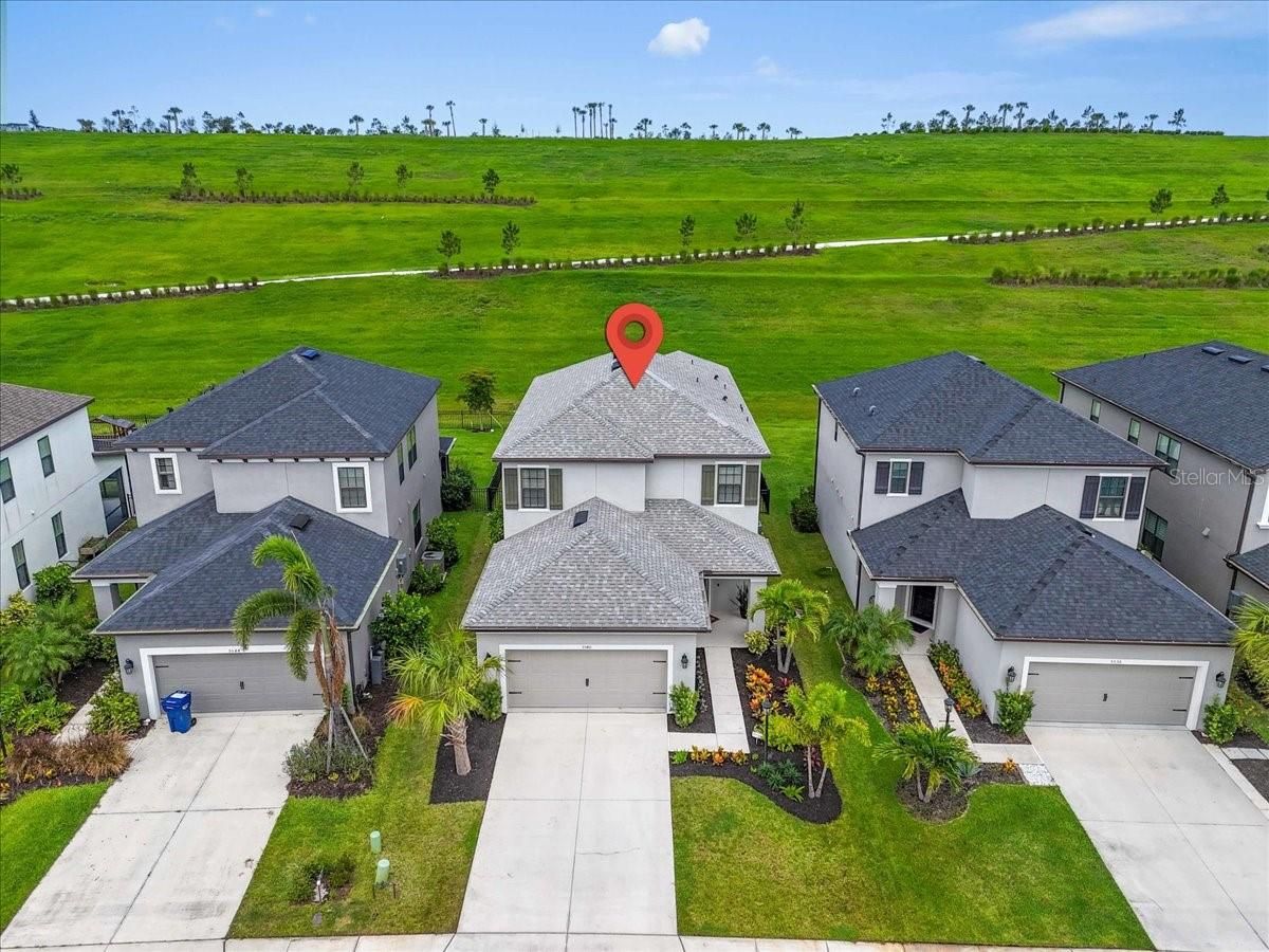 Welcome to this stunning 2020-built two-story home located in Grandview at The Heights, a premier gated community offering resort-style amenities and natural beauty. Boasting nearly 3,000 sq ft, this flexible 4–5 bedroom home includes a den, loft, and bonus room, ideal for multi-generational living or work-from-home needs. The open-concept great room features elegant architectural details, crown molding, and numerous custom upgrades. The chef’s kitchen is the heart of the home, showcasing stylish pendant lighting, a custom backsplash, granite countertops, and stainless steel appliances—perfect for entertaining and everyday living. The floor plan seamlessly flows and allows for easy entertaining and living. Scenic views from all the living areas, primary suite, and outdoor spaces. Enjoy the comfort of a spacious first-floor primary suite with a walk-in closet and a luxurious ensuite bath complete with dual vanities and a walk-in shower. Work from home with your first floor den. Upstairs, a secondary guest suite with a private full bath adds extra convenience and two additional guest suites to meet all of your needs. A large bonus room can easily serve as a fifth bedroom, while the loft area offers space for a cozy lounge or additional study. Step outside to a screened lanai and open paver patio, overlooking a well-sized fenced backyard with scenic views and direct access to the scenic elevated trail park. Residents of The Heights enjoy a vibrant lifestyle with access to a resort-style pool, cabana, grilling area, basketball court, and a kayak launch on 255-acre Ward Lake. The elevated trail park offers walking trails, lake views, fitness stations, pet park, and open green spaces. Conveniently located near to entertainment, shopping, dining, golf, area beaches, and medical facilities —this home is truly a rare find!