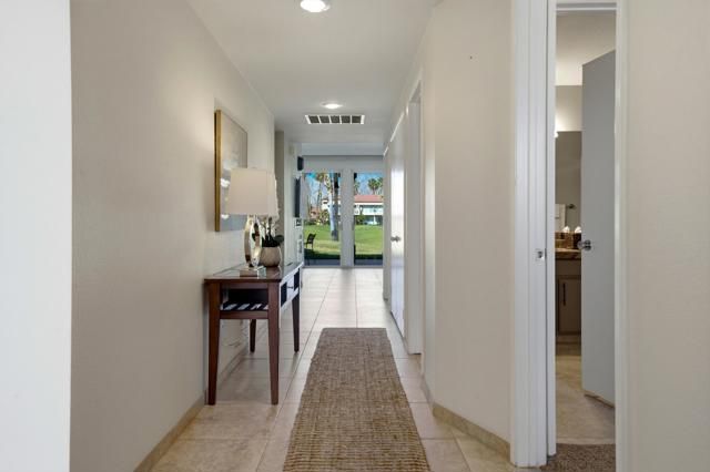 Experience elevated desert living in this beautifully upgraded lower-level condo, ideally situated on the renowned Jack Nicklaus Tournament Course within the prestigious PGA West--host venue for The American Express Golf Tournament. Perfectly positioned along the 5th fairway, this exceptional residence showcases breathtaking panoramic views of the lush golf course and the majestic Santa Rosa Mountains, creating a serene and picturesque backdrop for everyday living. And conveniently located just a few steps to the community pool and spa. Designed with both comfort and style in mind, the home offers a light-filled, open-concept layout that seamlessly blends indoor and outdoor living. Large windows and sliding glass doors invite natural light to pour in, enhancing the bright and airy ambiance while framing the stunning views beyond. Step outside to your private patio--an ideal setting for morning coffee, al fresco dining, or simply relaxing as you take in the tranquil golf course scenery.The thoughtfully updated kitchen features sleek granite countertops, stainless steel appliances, and ample cabinetry, making it both functional and inviting for cooking and entertaining. The bathrooms echo the same level of quality with matching granite finishes, while tile flooring throughout the main living areas adds durability and a clean, contemporary feel. Plush carpeting in the bedrooms provides warmth and comfort, creating peaceful retreats at the end of the day.Offered turnkey furnished, this home is move-in ready and perfectly suited as a full-time residence, seasonal getaway, or investment opportunity in one of the desert's most sought-after communities. Whether you're a golf enthusiast or simply seeking a luxurious and low-maintenance lifestyle, this property delivers the ultimate in resort-style living.Membership opportunities at PGA West are available separately, offering access to world-class golf, dining, and resort-style amenities.Please note that staging inventory is not included. Seller is a licensed real estate broker. All information herein is deemed accurate but not guaranteed. Buyer to verify to their satisfaction.