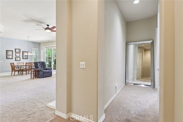 Perfectly positioned within the highly desirable 55+ Solera Diamond Valley community, this exceptional single-story home offers one of the best locations available. Tucked away on a quiet cul-de-sac, bordering a park, and just a short stroll to the community clubhouse, the setting is hard to beat. Step inside and you're immediately greeted by a thoughtfully designed layout and quality finishes throughout. This popular “San Carlos†floor plan is known for its bright, open-concept design and includes two bedrooms, two bathrooms, plus a versatile office/den. Soaring 10-foot ceilings and 8-foot raised-panel doors add to the home's spacious feel. The kitchen is designed for both everyday living and entertaining, featuring a center island, breakfast nook, upgraded appliances, and a gas cooktop. It flows seamlessly into the inviting living room, where a fireplace creates the perfect ambiance for cooler evenings. The primary suite offers a comfortable retreat with a generously sized walk-in closet, while the laundry room is equipped with added cabinetry and a deep utility sink for functionality. Outside, enjoy a beautifully finished concrete patio-ideal for relaxing or hosting-along with an extended two-car garage providing additional space. Residents of this vibrant community enjoy