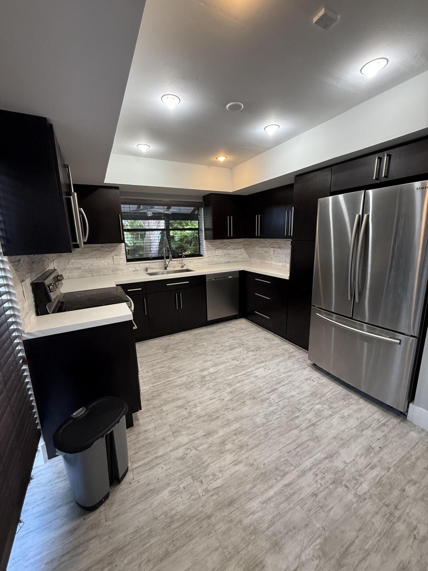 Completely remodeled 2 bed 2 1\2 bath home in 55 + gated golfers paradise community, golf and social memberships are optional. Barrel Roof under 15 years old. Quartz countertops, Marble backsplash and newer appliances. Two Primary bedrooms suites. New Marble flooring. Property is on a corner lot with beautiful lit landscaping, views from your covered patio. Newer hurricane impact garage door, home generator. Move in ready .