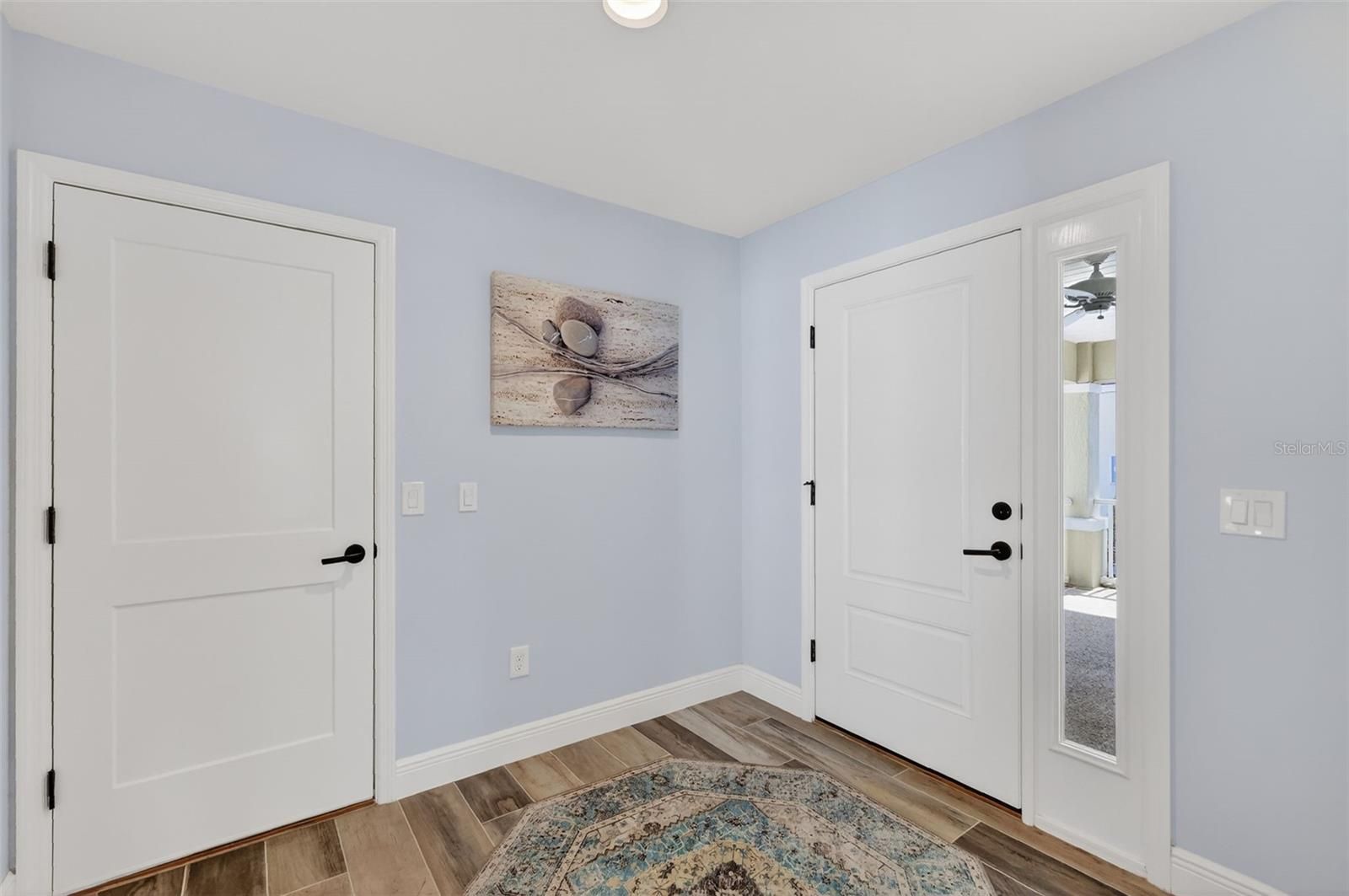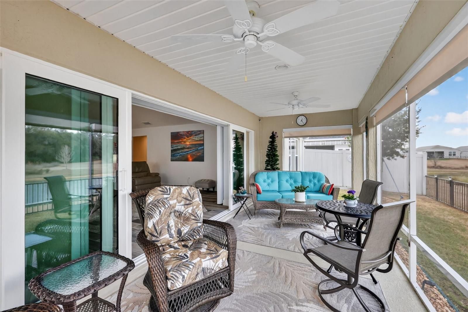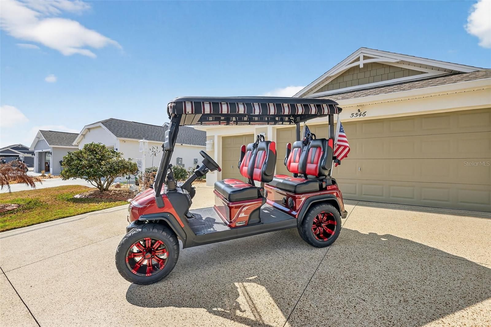 3/2 Winslow Courtyard Villa with PRIVATE WATER VIEW offered TURNKEY with a 4-seater golf cart in the Village of Hammock at Fenney! From the moment you arrive, you’ll appreciate the decorative refinished driveway, gated entrance, and welcoming storm door that set the tone for this beautifully maintained home. Step inside to a foyer with coat closet, tile flooring throughout, and soaring vaulted ceilings that perfectly frame the serene water views. The thoughtfully designed kitchen features quartz countertops, a deep Kohler sink, stainless steel appliances with gas range, tile backsplash, under-cabinet lighting, pull-out cabinet drawers, and a spacious walk-in pantry — ideal for both everyday living and entertaining. The open living room offers comfortable seating and tranquil waterfront views, creating the perfect space to relax and unwind. The spacious primary suite is a true retreat with tray ceiling, peaceful water views, and a Mattress Firm adjustable bed. The en-suite bath includes a large walk-in closet, double sink vanity, beautifully tiled walk-in shower, and private water closet. Both guest bedrooms feature built-in closets, and the guest bath offers a tiled tub/shower combination. You’ll also appreciate the inside laundry room complete with utility sink, extra storage, and Samsung washer and dryer. The 2-car plus golf cart garage boasts epoxy floors, magnetic screens, and a Pegasus water softener system. Sliding glass doors lead to the screened lanai with pull-down shades, offering a private courtyard setting where you can enjoy peaceful waterfront views — perfect for morning coffee or evening gatherings. Gutters surrounding the home provide added peace of mind. This exceptional property includes a 4-seater electric golf cart and comes fully equipped with furniture, décor, and household items — simply bring your suitcase and start enjoying the lifestyle. The Village of Fenney provides access to resort-style family pool, scenic trails at Fenney Springs Nature Trail, dining at Fenney Grill, and fun at Fenney Putt & Play. Golf enthusiasts will love being just minutes from Red Fox Executive Golf Course and Gray Fox Executive Golf Course. Move right in and start enjoying everything The Villages lifestyle has to offer!