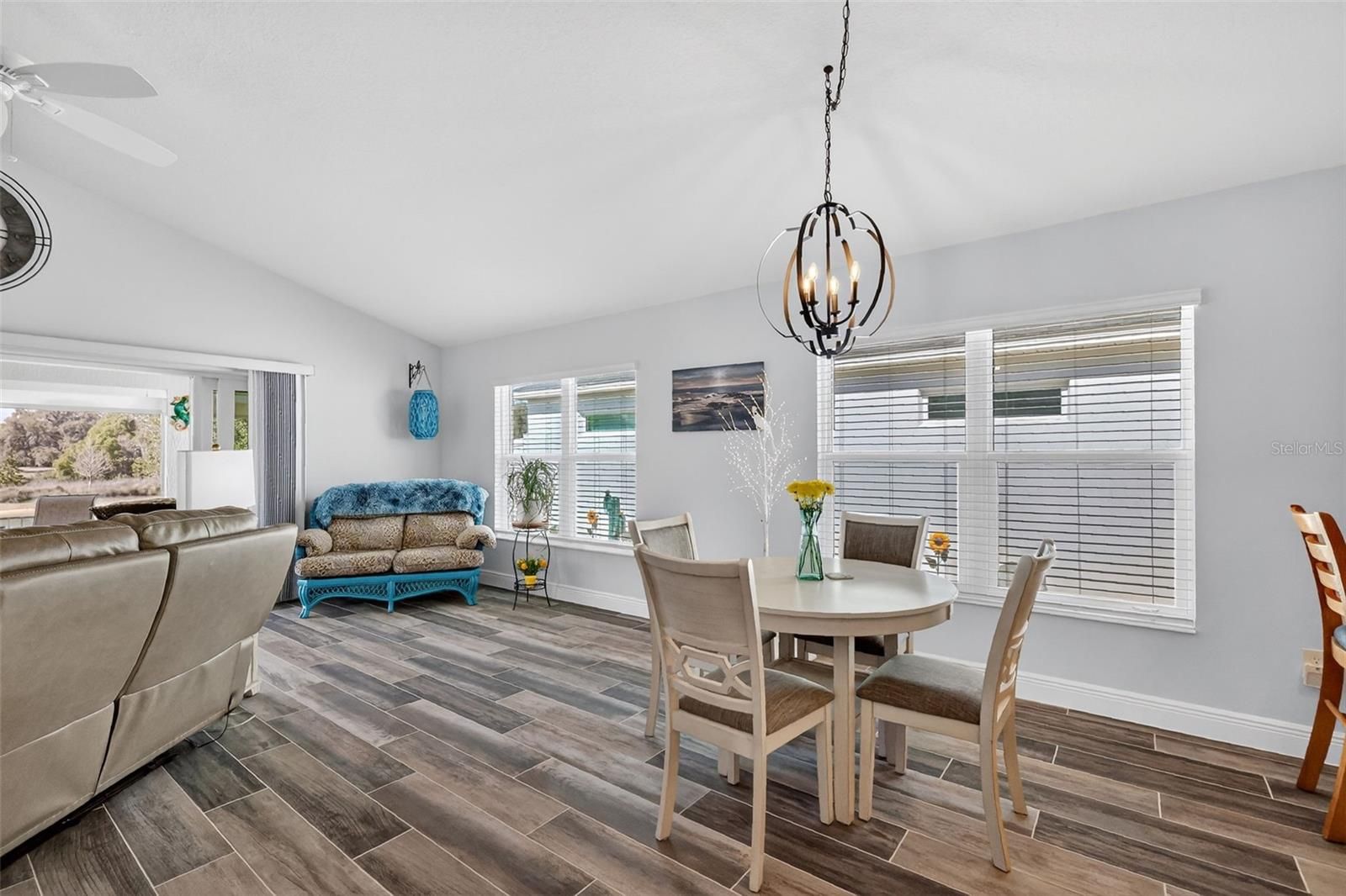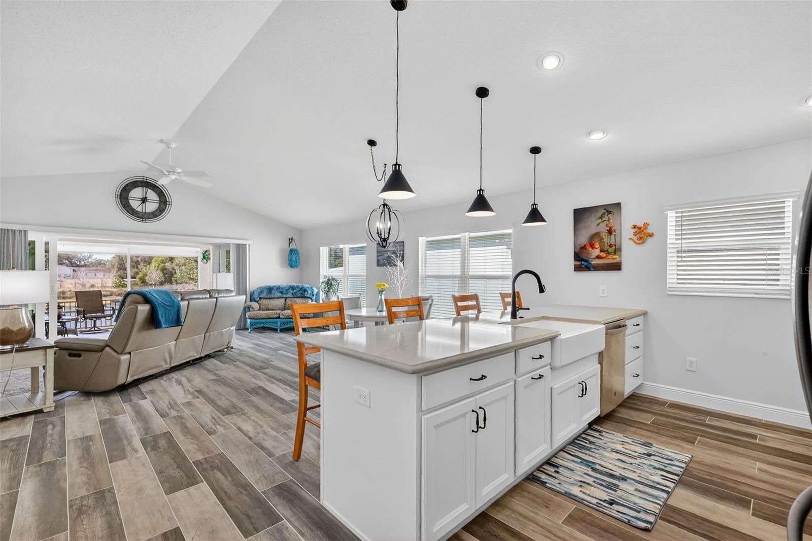 - Ceiling Fan(s), High Ceilings, Living/Dining Room, Open Floorplan, Stone Counters, Thermostat, Vaulted Ceiling(s), Window Treatments