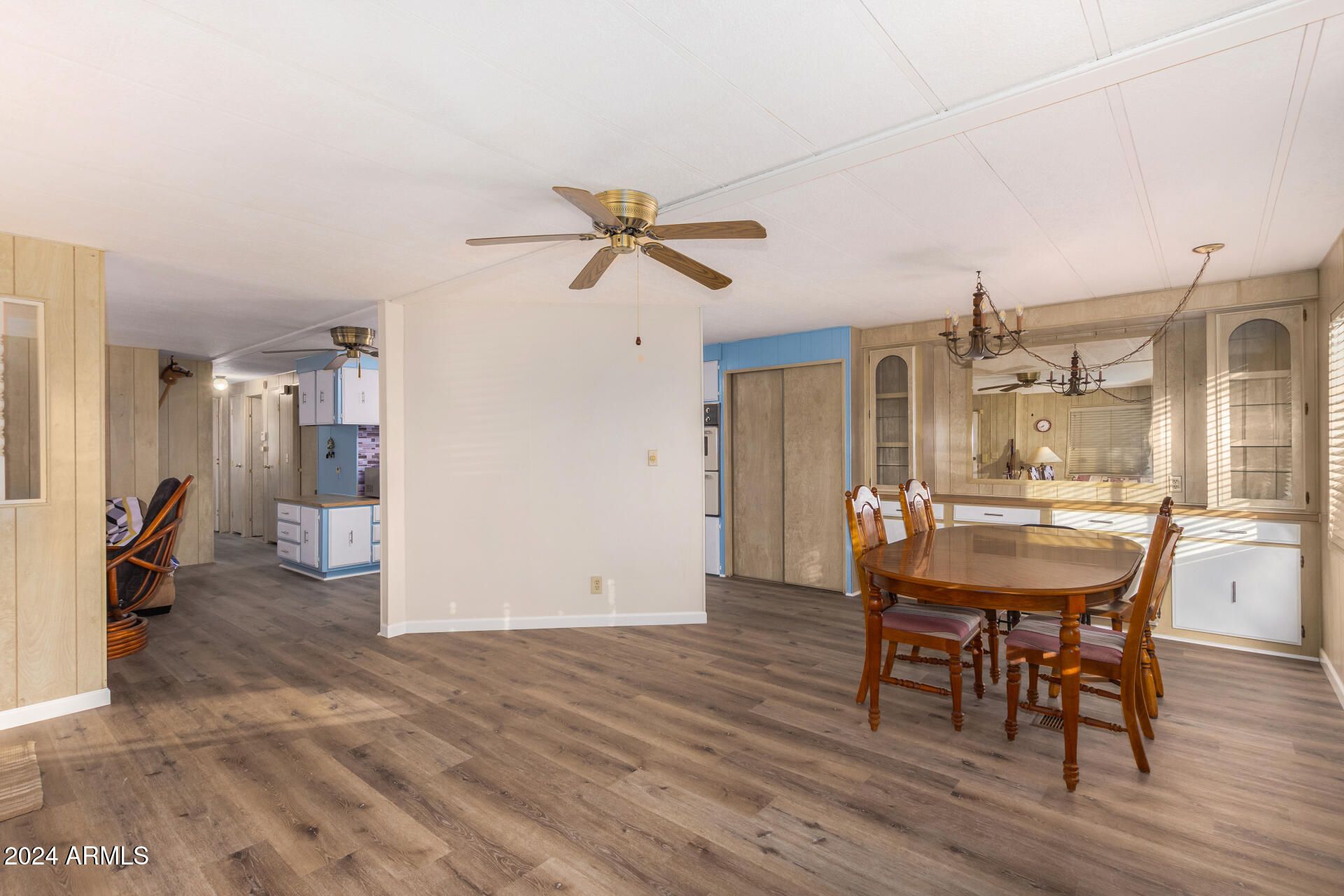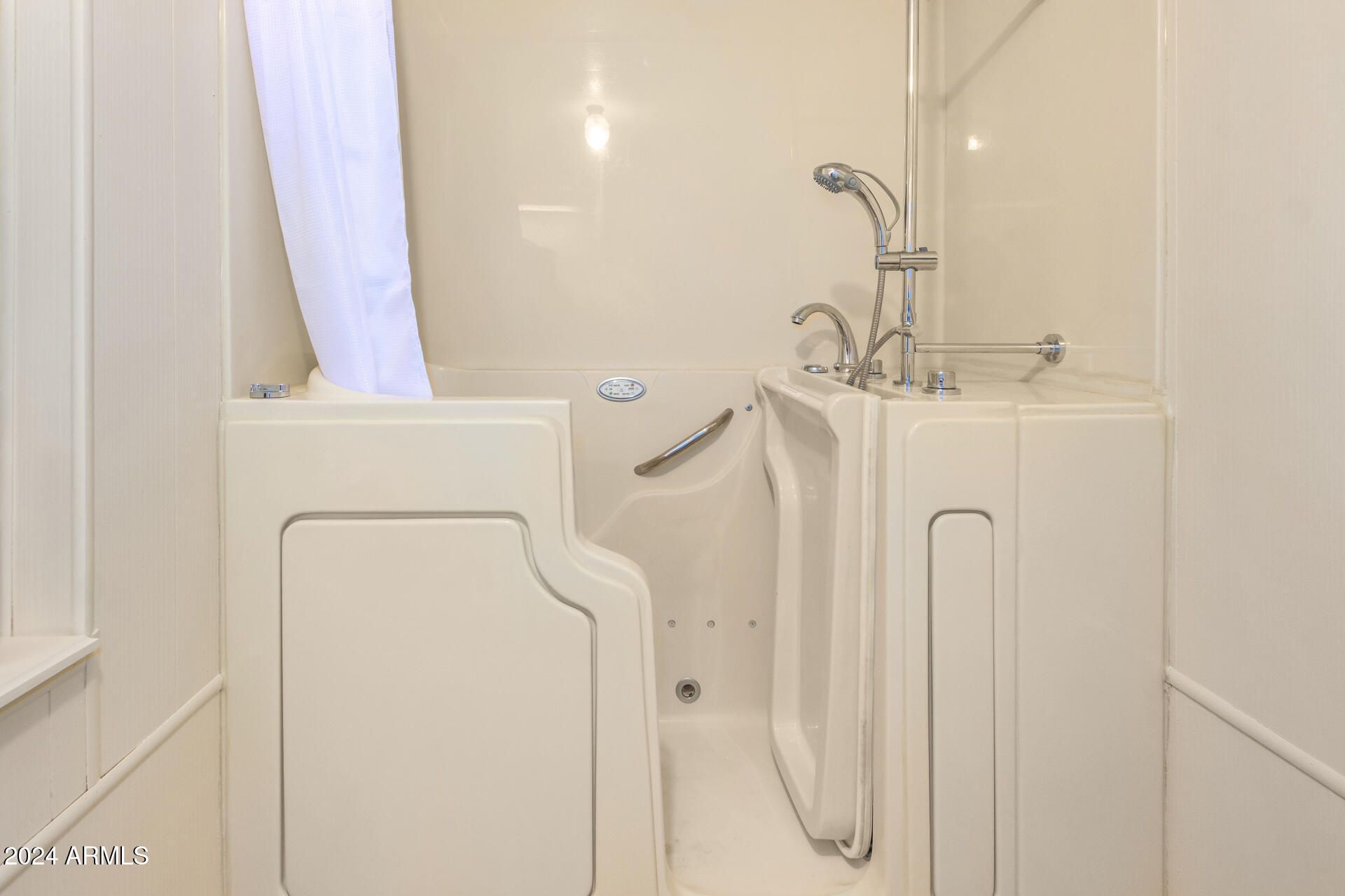 Enjoy true single-level living with no steps or thresholds anywhere in the home. Brand new flooring flows seamlessly from room to room, creating a clean and modern feel throughout. Recent updates include new faucets, lighting, paint, flooring, and a new roof—move-in ready and maintenance-free! The SafeStep walk-in Jacuzzi tub in the primary suite offers luxury and convenience, featuring multiple jets, a rain shower head, built-in lighting, music, and even a remote control for ultimate relaxation. EASY ACCESS TO ALL THE AMENITIES APACHE WELLS IS FAMOUS FOR. RESTAURANT, GOLF, SOFTBALL, PICKLEBALL, SHUFFLEBOARD, LAPIDARY, BINGO NIGHTS, WOODSHOP, CERAMICS, FULL GYM, AND HEATED POOL!