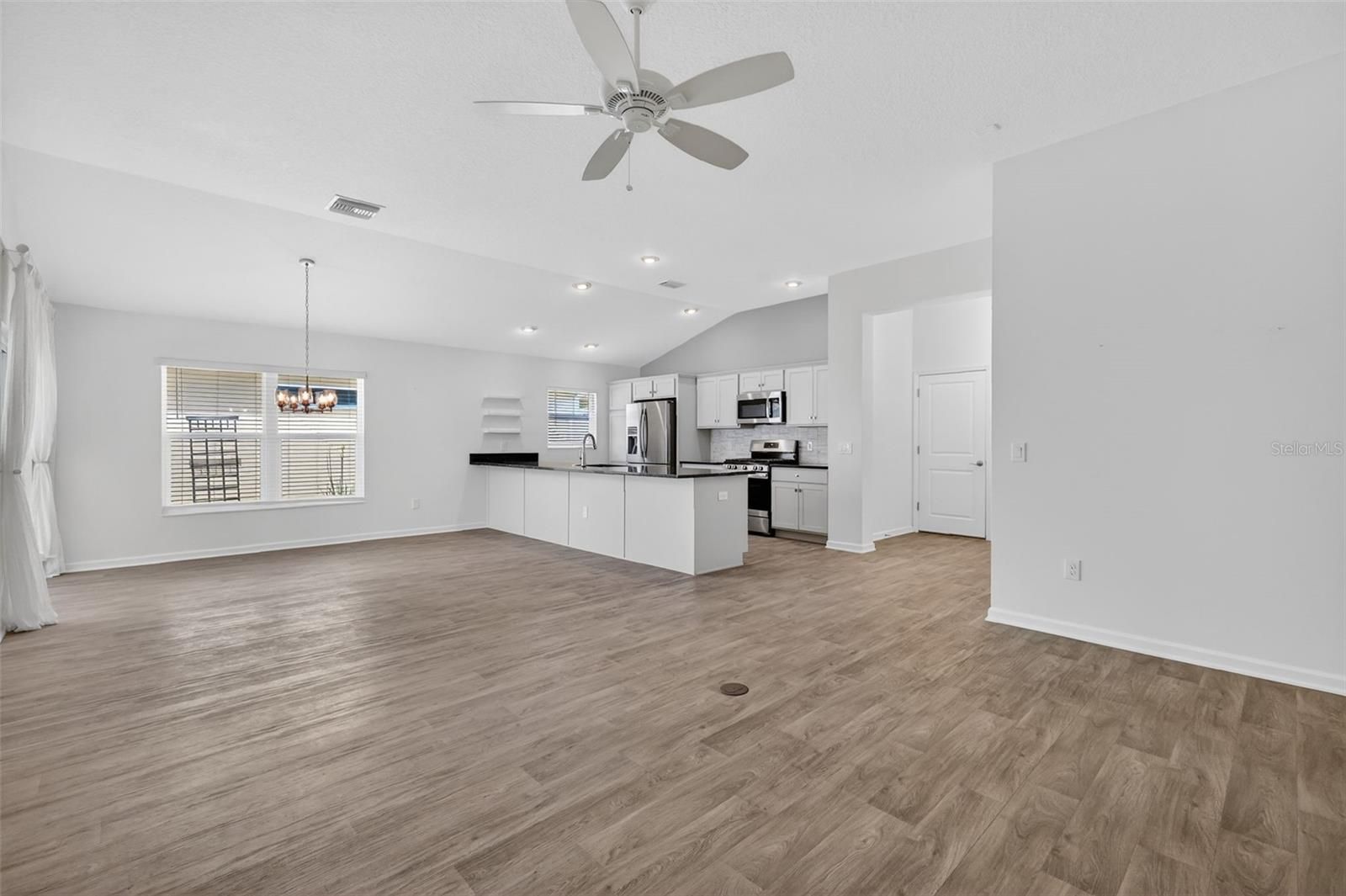- Ceiling Fan(s), High Ceilings, Living/Dining Room, Open Floorplan, Split Bedrooms, Vaulted Ceiling(s)
