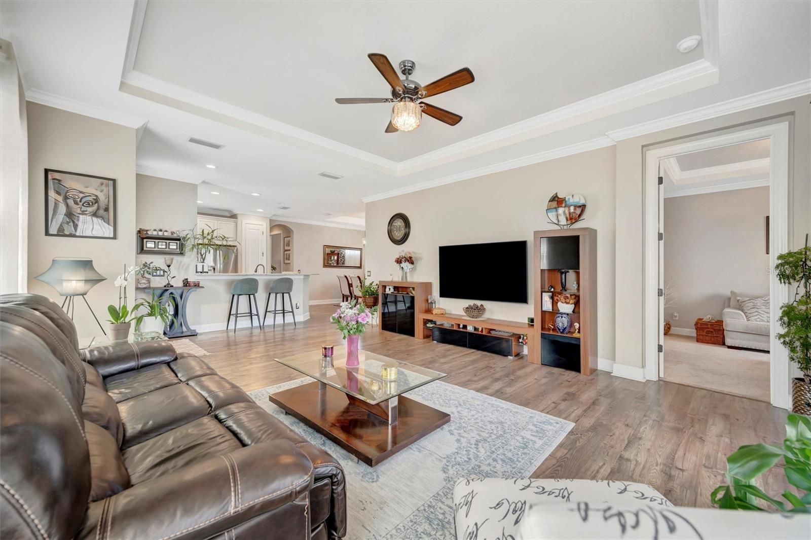 - High Ceilings, Open Floorplan, Main Level Primary, Solid Surface Counters, Tray Ceiling(s), Walk-In Closet(s)