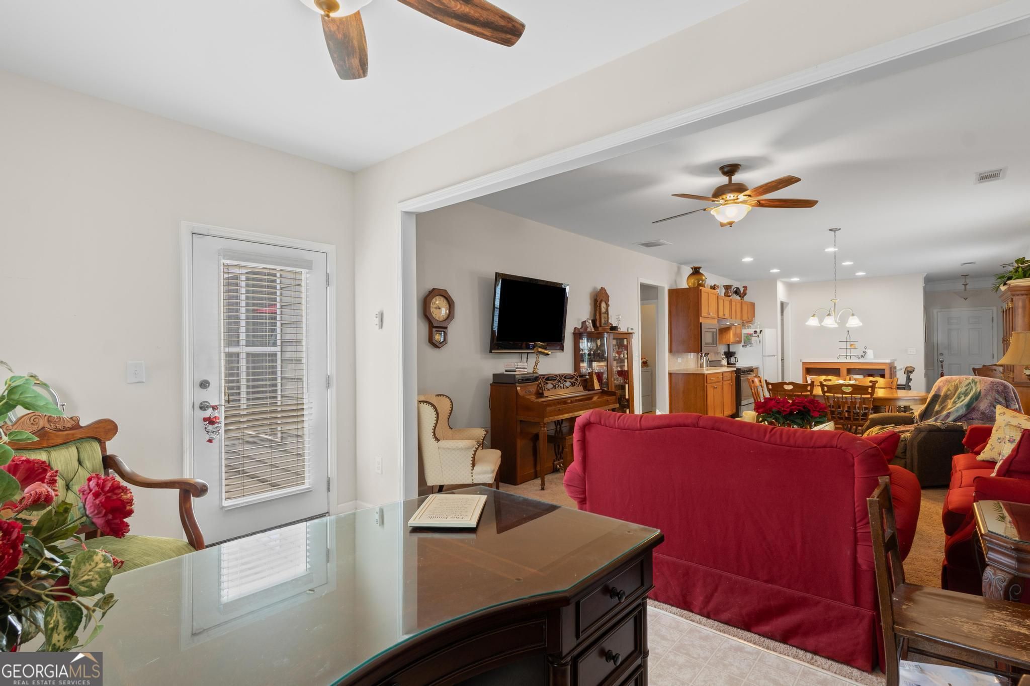 - Double Vanity, Main Level Primary, Separate Shower, Split Bedrooms, Tile Bath, Walk-In Closet(s), Family Room, Laundry Facility, Home Office
