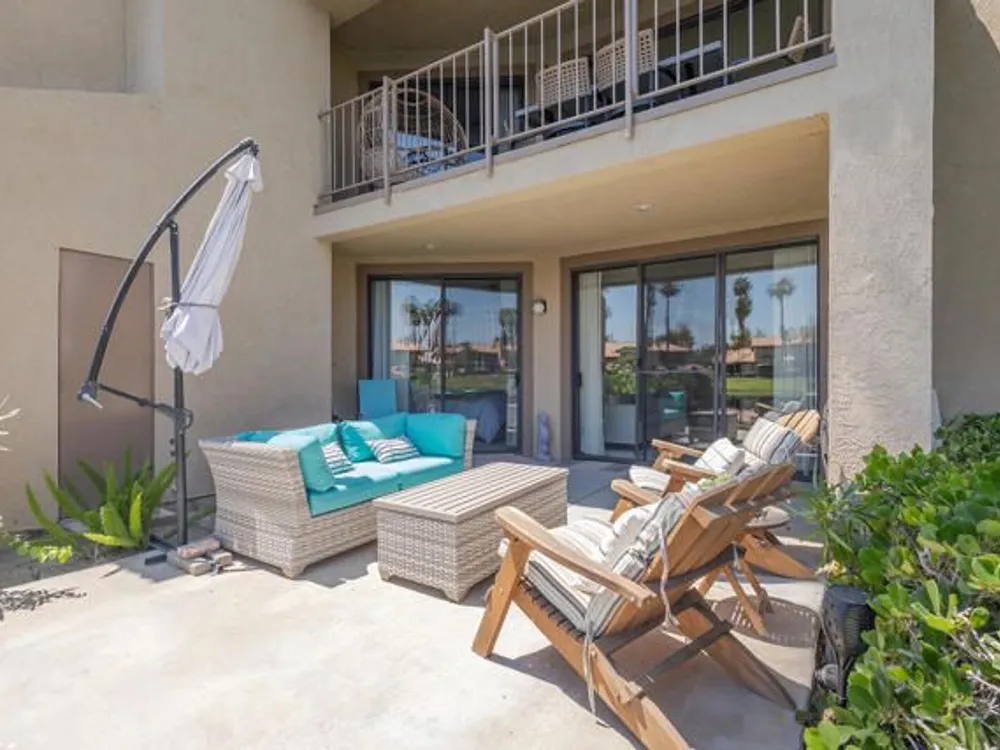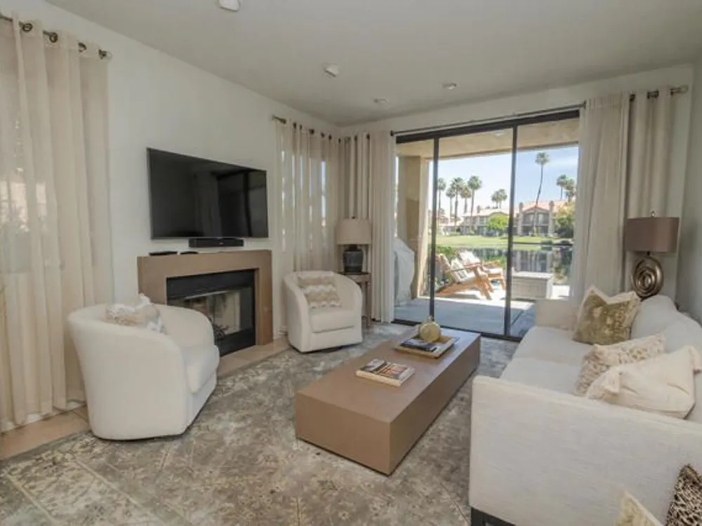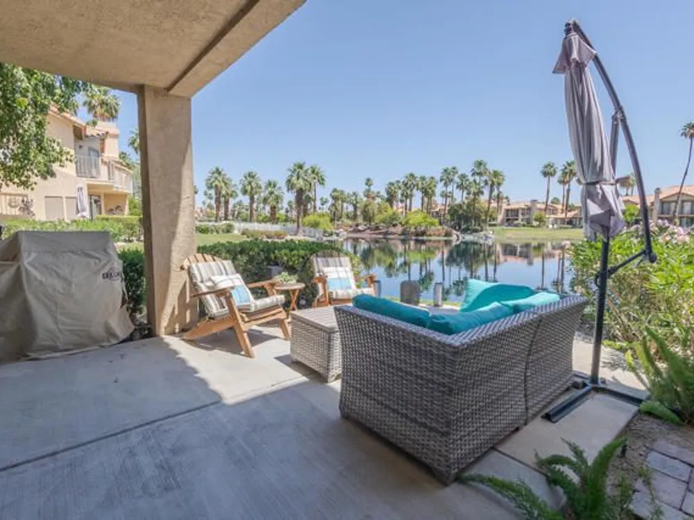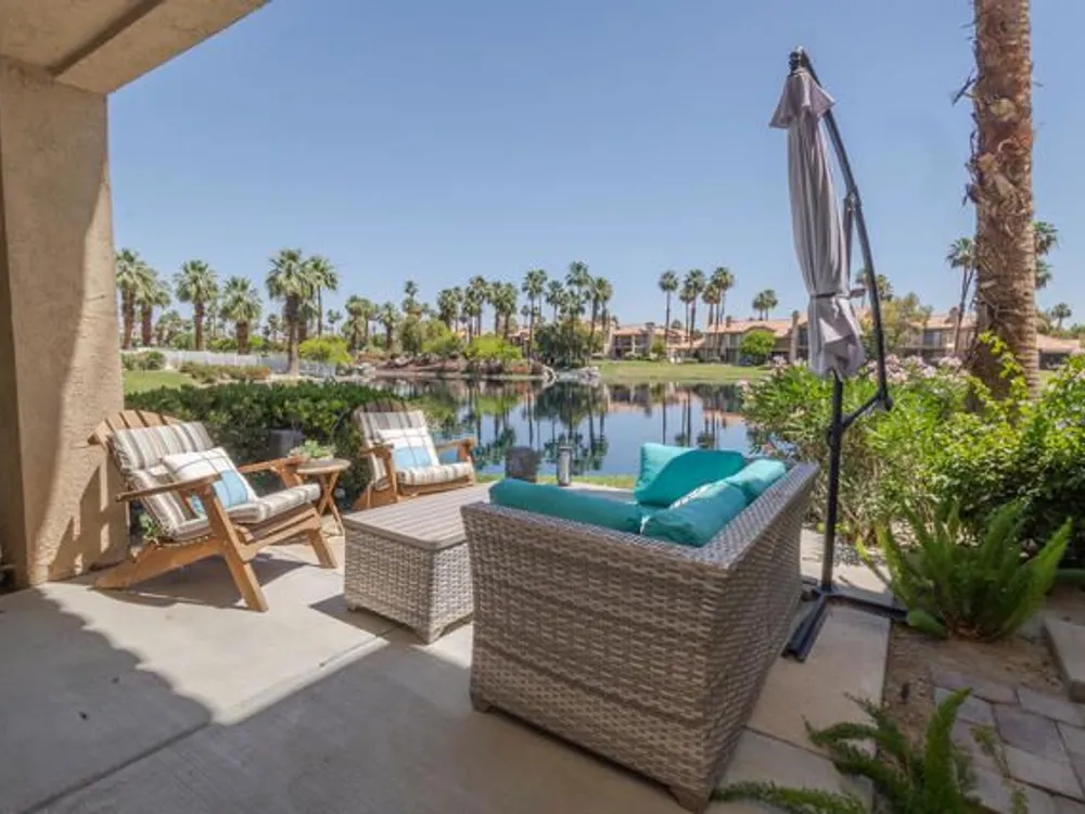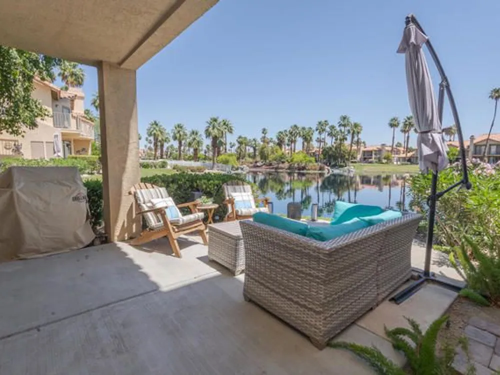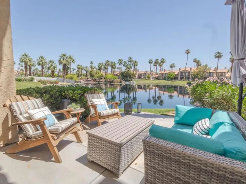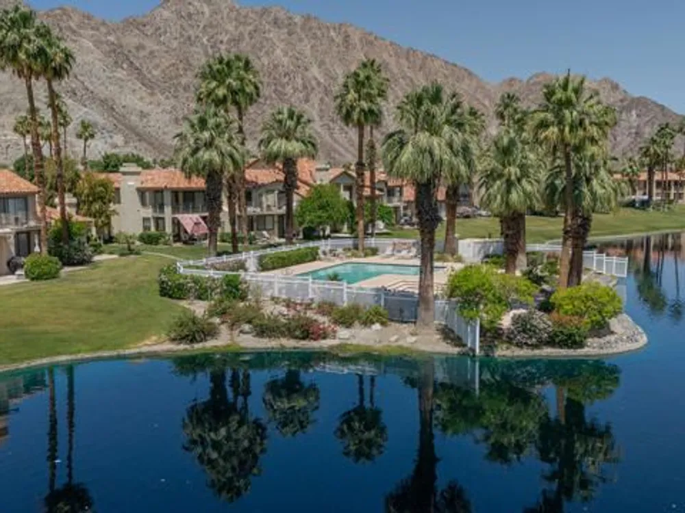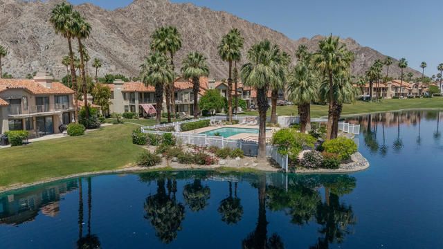 This rare premium location condo is the ''Champion floor plan,'' lower-level end unit and offers breathtaking lake views and mountains. Meticulously cared for with areas of remodeling is a gem two-bedroom condo. The stylish kitchen has new cabinets, soft close hinges with new quartz countertops, new recessed lighting, and upgraded appliances. A new sink and new faucet with a pull-down handle. The first primary bedroom, featuring a walk-in closet and ensuite bath, offers stunning views of the lake and patio area and is thoughtfully separated from the second primary bedroom (featuring a king size bed) for added privacy and a very nice updated en-suite. The extra storage is a wonderful feature for a condo. This home has not only been extremely well cared for - it has been loved and cherished by the owner, and you can feel the warmth and attention to the details once you come through the front door. This is one of finest Champion floor plan in PGA West and having gorgeous views of the lake from the living room, primary bedroom and outdoor patio is truly living the desert lifestyle. Attached garage large enough for car and golf cart. Home is also listed for Residential and Seasonal rental