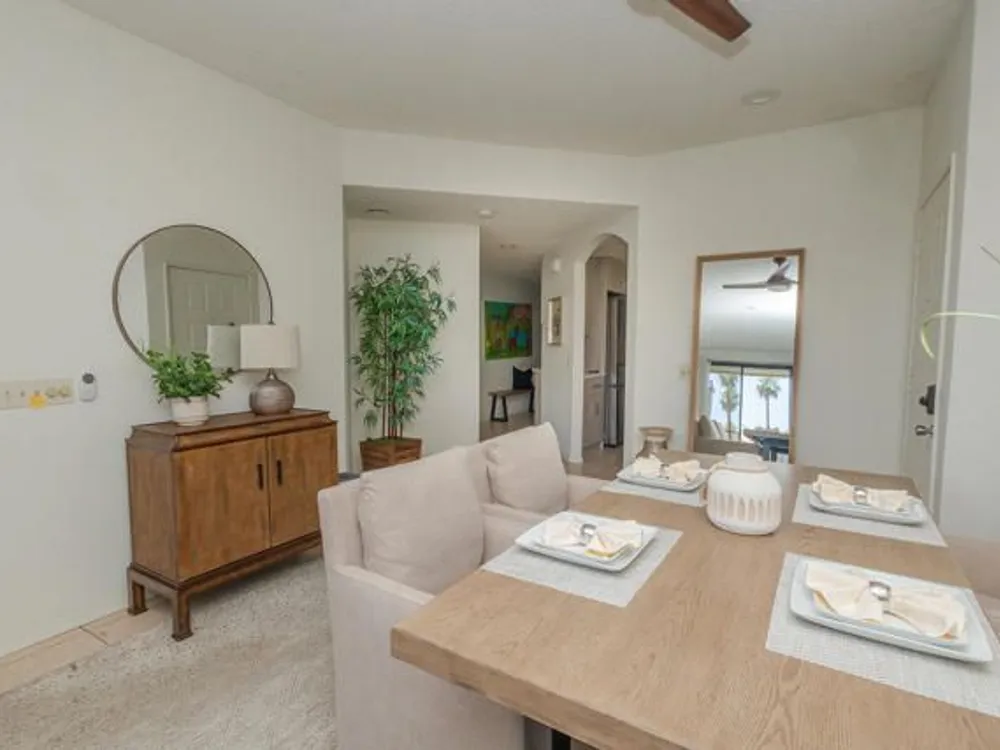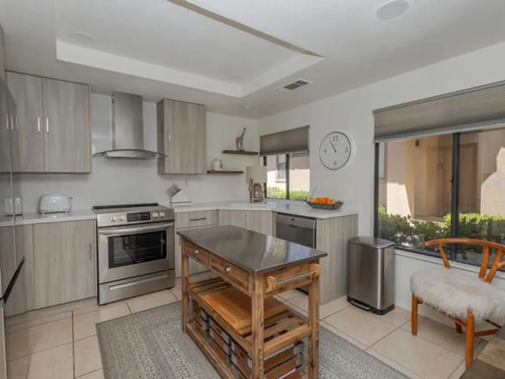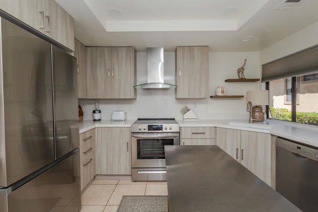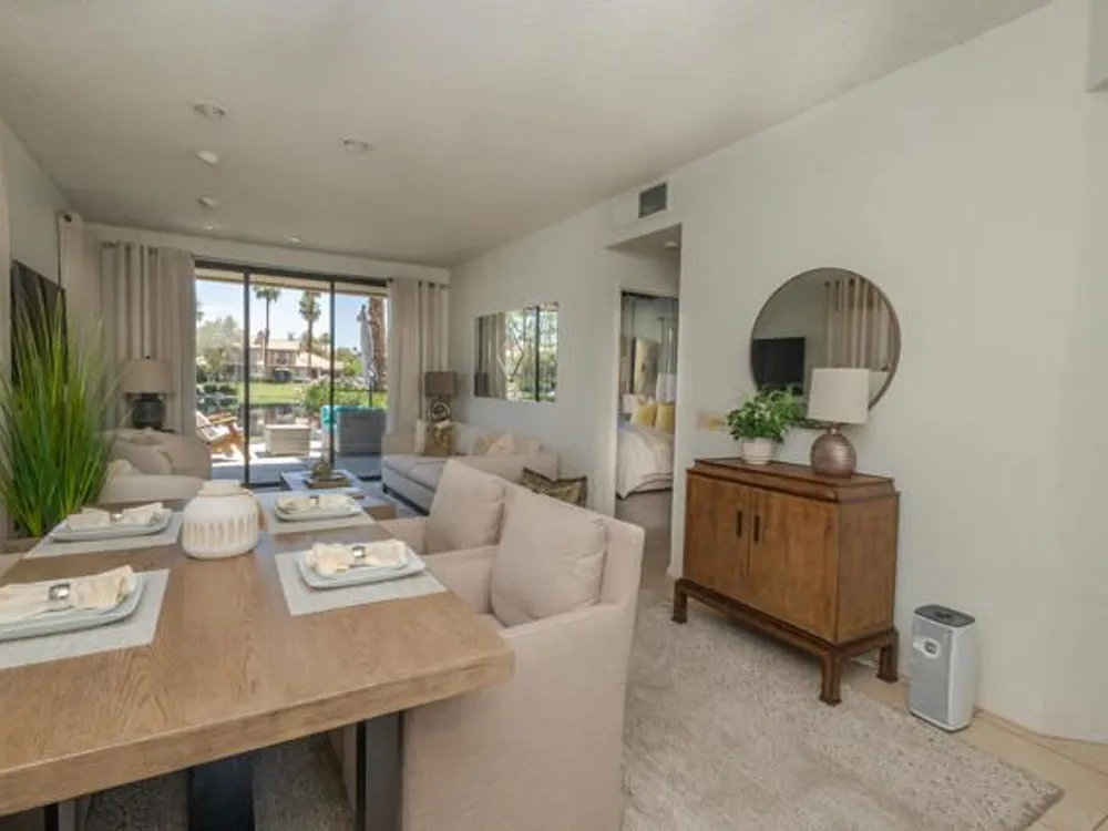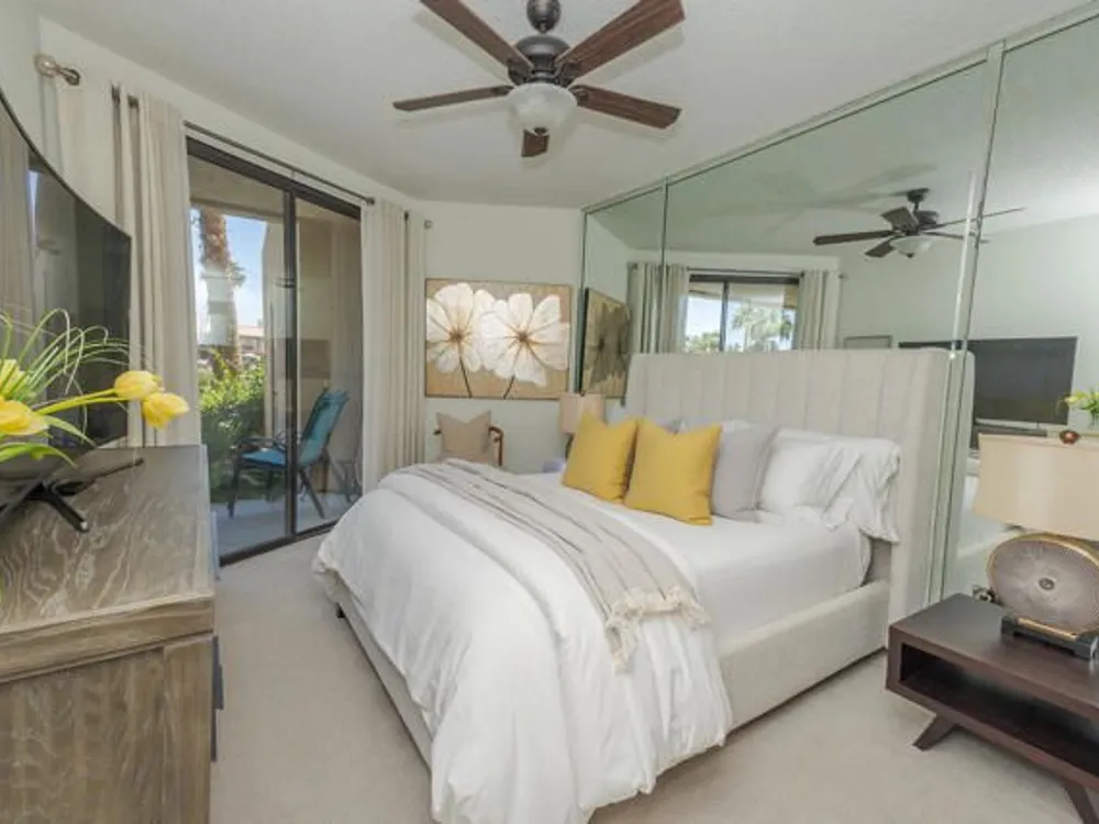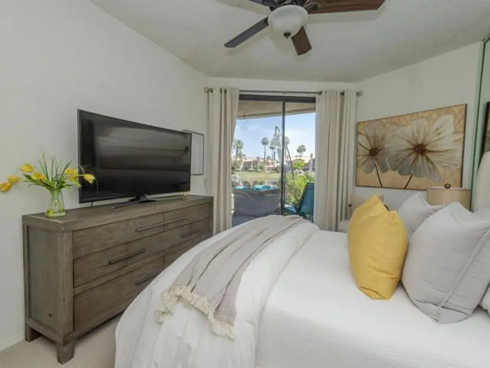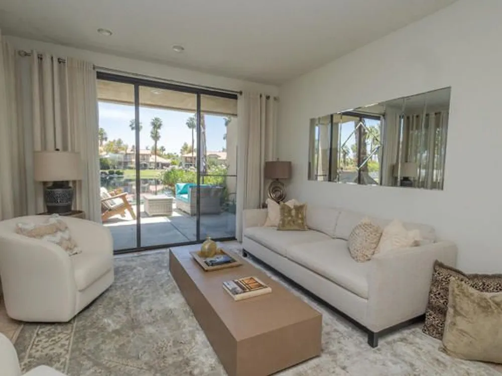 This rare premium location condo is the ''Champion floor plan,'' lower-level end unit and offers breathtaking lake views and mountains. Meticulously cared for with areas of remodeling is a gem two-bedroom condo. The stylish kitchen has new cabinets, soft close hinges with new quartz countertops, new recessed lighting, and upgraded appliances. A new sink and new faucet with a pull-down handle. The first primary bedroom, featuring a walk-in closet and ensuite bath, offers stunning views of the lake and patio area and is thoughtfully separated from the second primary bedroom (featuring a king size bed) for added privacy and a very nice updated en-suite. The extra storage is a wonderful feature for a condo. This home has not only been extremely well cared for - it has been loved and cherished by the owner, and you can feel the warmth and attention to the details once you come through the front door. This is one of finest Champion floor plan in PGA West and having gorgeous views of the lake from the living room, primary bedroom and outdoor patio is truly living the desert lifestyle. Attached garage large enough for car and golf cart. Home is also listed for Residential and Seasonal rental