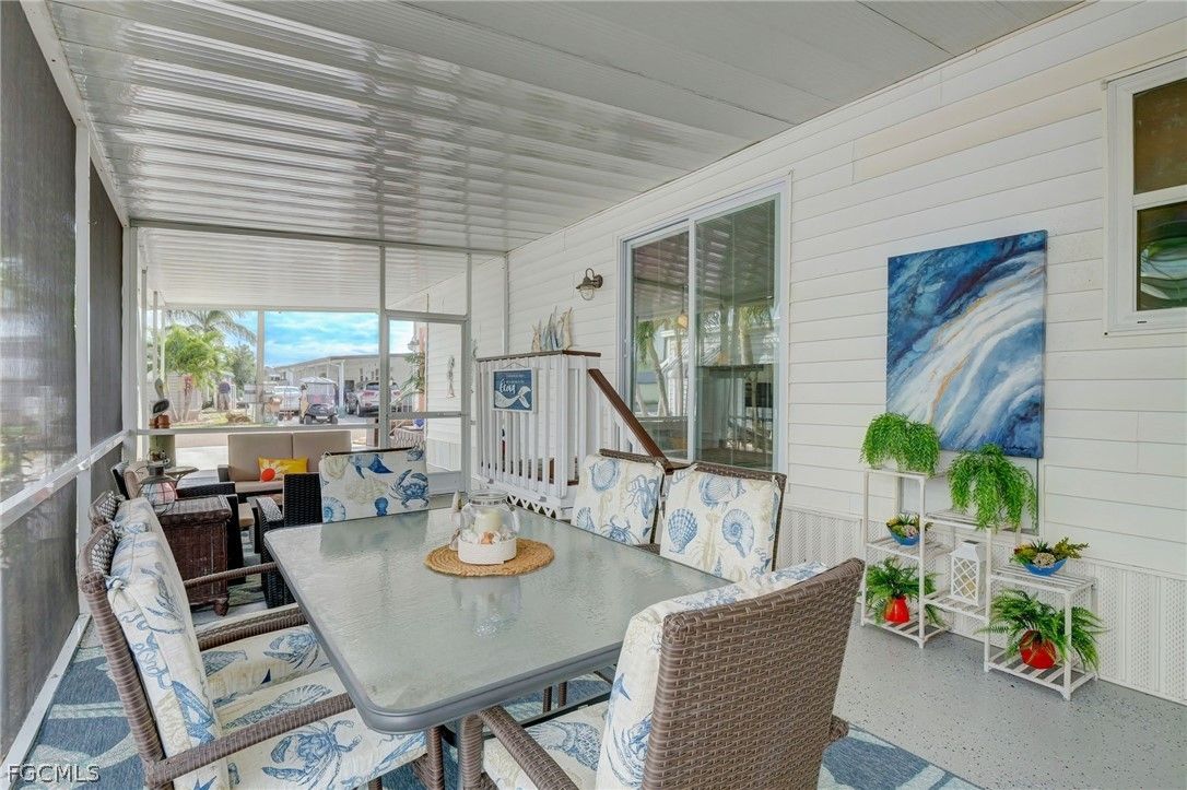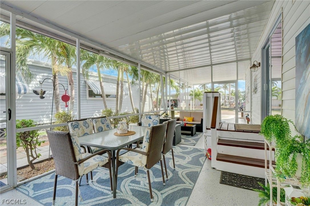 Thinking for Retirement? Come to Old Bridge Village, a 55 and Better Community that will let you live your life to the fullest. This HOME will help you do just that! A fully renovated home located across from the water. Newer Mini Split Systems for heating and cooling with the bonus of saving you on your utility bills. Finished with Newer High-End Appliances and Fixtures, as well. This is a cook’s dream! There is even a fireplace that can be seen from the living room and the kitchen. Elegant furnishings are included with the home. Living Room, Dining Room and Kitchen are open concept, perfect for warm and friendly conversations. As for the Owners Suite, you are welcomed into a large, comfortable inviting space with lots of storage. The Owners Bath is like a spa with a clean, warm feeling. The Guest Bedroom is large, bright and welcoming, your guests will be pleased. The Main Bath area is updated, clean and beautiful. Stepping outside, there is a rustic wooden landing welcoming you. A screened patio enclosure offers a comfortable seating area. The Laundry and Workshop are located in a room within this area. Invite your guests for a meal or just to relax for a while. An outdoor patio area has open seating and is located in the backyard, as well. Old Bridge Village provides an array of amenities, including an 81-slip marina with a boat ramp and a kayak launch, a 24/7 staffed entry gate, and a nine-acre waterfront park complete with BBQ grills, picnic tables and two TIKI Huts! Enjoy shoreline fishing along the Caloosahatchee or indulge in recreational activities like pickle ball and tennis. Annual entertainment options hosted by the Yacht club include events like the Commodores Ball, Boat to Lunch outings, and Shipwreck Parties. Social Alliance hosts potluck dinners, ice cream socials, cards, and holiday dinners and an array of Recognized Entertainers. When you crave urban amenities, downtown Ft. Myers is just three miles away, offering many dining, theater, and shopping experiences. Discover endless opportunities for leisure and laughter in this vibrant community. Your gateway to the ultimate Florida lifestyle awaits at Old Bridge Village. Lastly, Old Bridge Village has VERY DESIRABLE HOA FEES. Whether you are looking for a Full Time Florida Residence or maybe a Winter Getaway, you will never find a Better Buy than this Home! Please Call to See this Home TODAY!