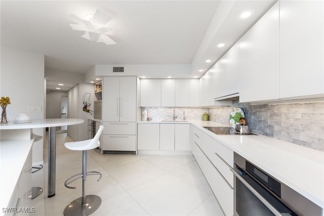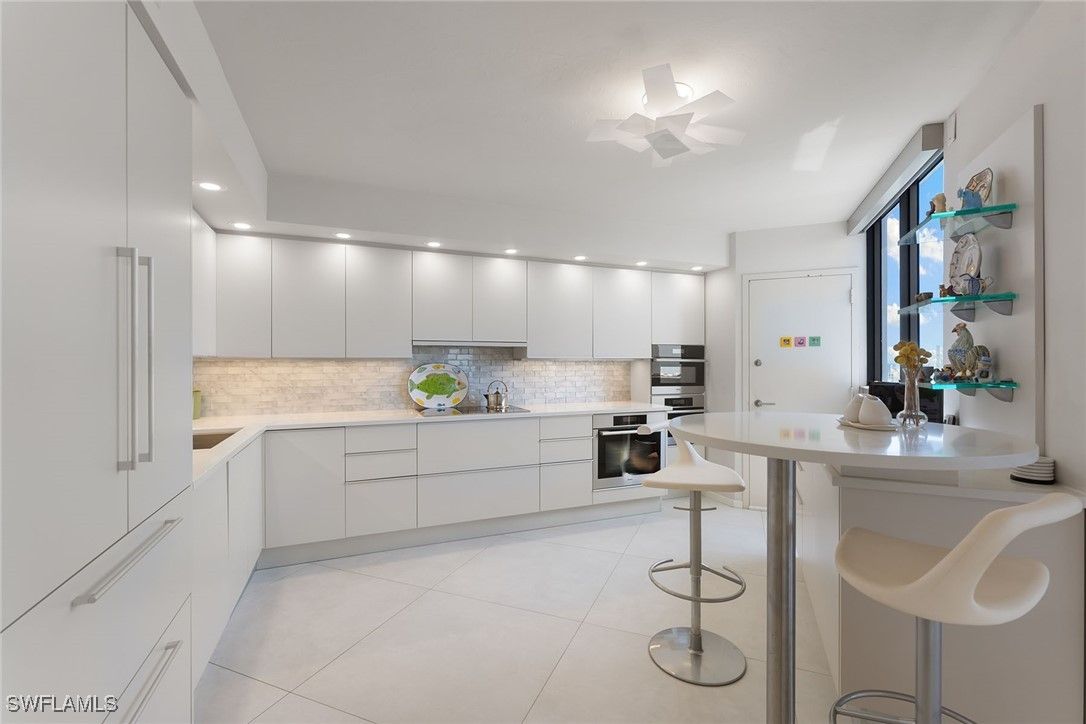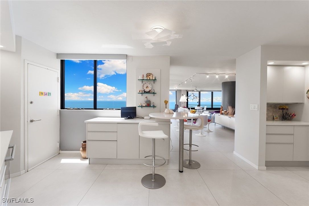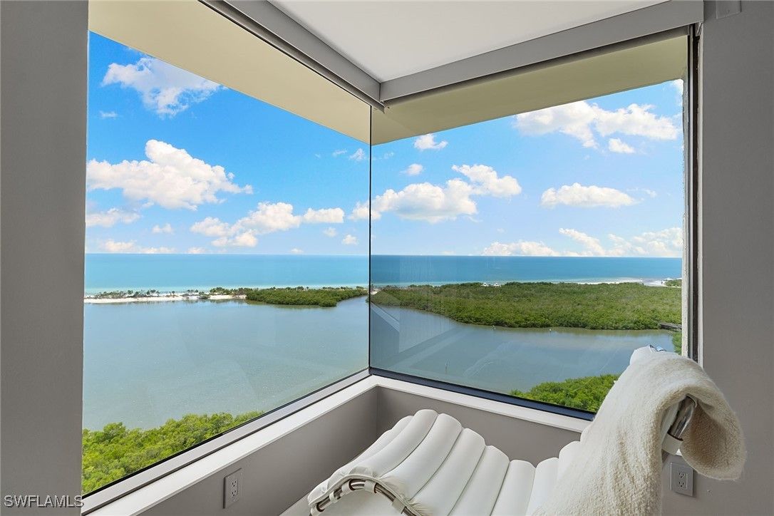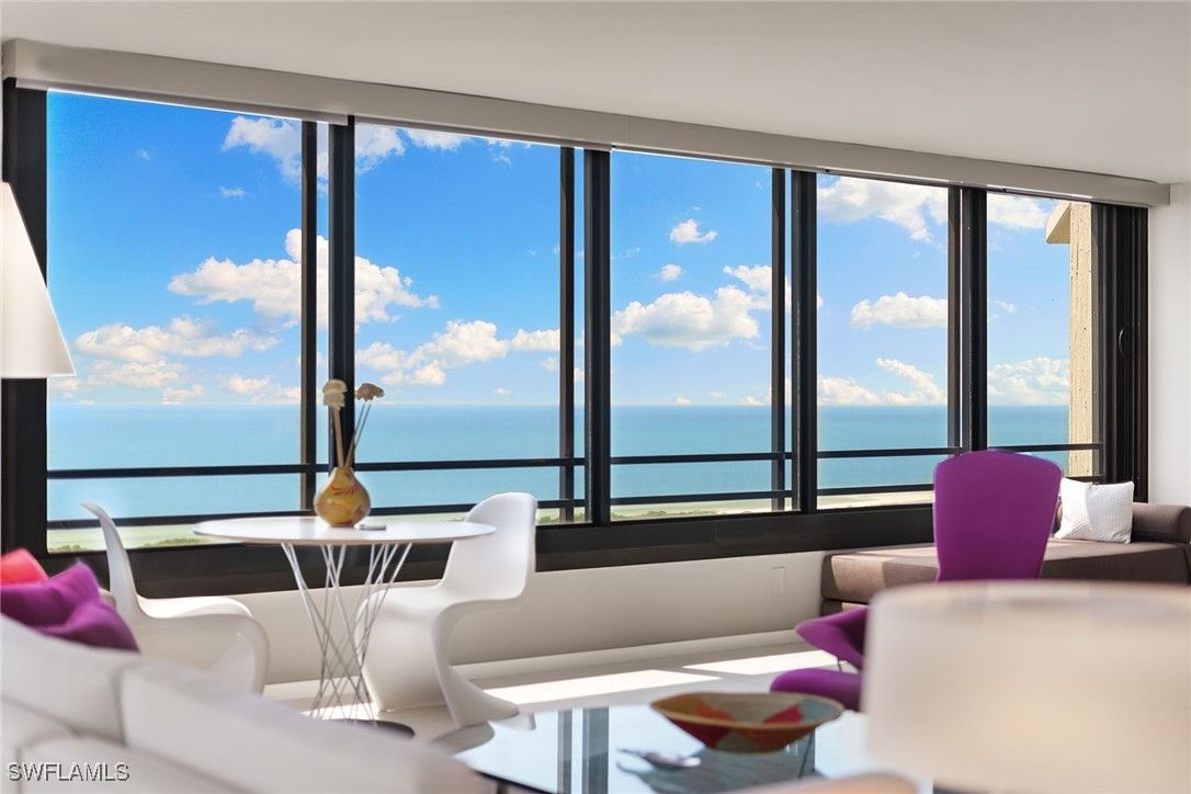 Commanding one of the enviable positions in Pelican Bay, this 20th-floor residence in The Heron offers sweeping views from the Gulf of Mexico to the city skyline of Naples and Park Shore. This condominium was designed by architect Robert Kleinschmidt and thoughtfully renovated in 2013, the home reflects a timeless modern aesthetic with elevated finishes throughout. A design-forward kitchen with Italian matte-white cabinetry, quartz countertops and premium appliances features a built-in high-top dining area overlooking Clam Pass. The primary suite captures sunrise and coastal views, with a spacious walk-in closet and fully renovated bath. The guest suite offers equal comfort with long-range views and its updated en-suite bath. The open-concept layout is enhanced by full-height glass windows that frame panoramic views and fill the living spaces with natural light. Thoughtful interior planning emphasizes the residence’s visual connection to the coastline while offering a seamless flow for everyday living and entertaining. The Heron is a boutique building with only 40 residences and includes on-site management, two guest suites, a fitness center with infrared sauna, tropical pool and spa. Ideally near Artis—Naples and Waterside Shops, this residence offers rare Gulf-front privacy with easy access to dining and cultural venues.