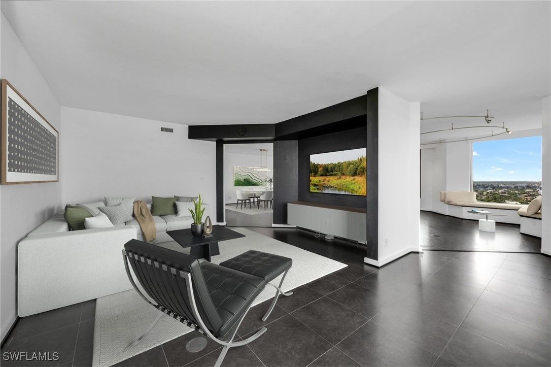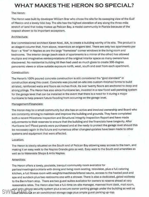 Nestled in the heart of Naples, this exceptional 21st floor end unit offering over 2400sqft, is a fusion of modern elegance and coastal charm, a fully renovated sanctuary where clean lines rule the day. A true gem offering serene living with modern luxury and is just waiting to be your idyllic retreat. Start your mornings with breathtaking, uninterrupted panoramic views of the Gulf and Clam Pass through expansive walls of sliding windows that open and two mitered glass corner windows, a design marvel that invites the serene beauty of sunsets year-round. This residence is a haven for culinary aficionados, boasting loads of storage space and stainless high-end appliances, including Sub Zero, which cater to your every culinary whim. The generous primary suite with Gulf front sitting area has LONG water views & lovely sleek bath offering two sinks, an oversized glass shower, ample storage, and a fully outfitted walk in closet. Guests are tucked away in their own suite with VIEWS of Pelican Bay plus full bath & even more closets. The Heron is an intimate, well-appointed building with just 2 units per floor and 40 units total: lives like having your own home in the sky! This gem has a fabulous great room style floorplan with forever views that take center stage. Immerse yourself in the Pelican Bay lifestyle replete with unparalleled community amenities: miles of beach, nature paths to explore, private beachfront restaurants for savored moments, and beach services that redefine relaxation. Engage in a variety of lifestyle events and wellness classes at the full-service fitness center, or indulge in the thrill of tennis or pickleball on pristine courts, with pro shops at your service. A community center, canoes, kayaks, and sailing bring adventure to your doorstep, while bespoke nutrition services in the wellness studio cater to your well-being. Ideally situated within walking distance to Waterside Shops & Artis Naples, convenience meets sophistication in this sky-high blank canvas where you can craft your dream home