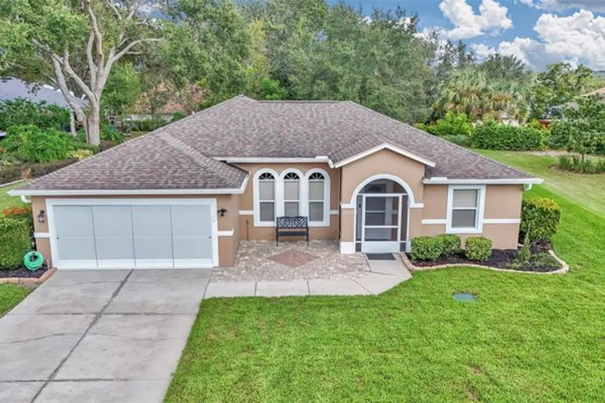 In a non-age-restricted, guard-gated community of The Grove within Harbor Hills in Lady Lake, this well-maintained three-bedroom, two-bath residence offers an exceptional blend of privacy, convenience and upgraded features. Minutes from Spanish Springs and Lake Sumter, it provides easy access to shopping, dining and recreational amenities while maintaining a quiet, residential setting. Offering 1,525 square feet of interior space, the home features an open-concept kitchen and dining area with high ceilings, granite countertops, soft-close cabinetry, updated Pergo flooring and stainless-steel Frigidaire appliances. The living area flows seamlessly into an enclosed Florida room with screen and window enclosures for year-round enjoyment. A screened entryway enhances the outdoor living experience, and a two-car attached garage with screen adds functional convenience. The primary suite is outfitted with updated flooring, refaced cabinetry, granite countertops and a walk-in closet. The guest bath also adorns refaced cabinets and granite counters for seamless transitioning throughout the home. A 2017 roof and water heater, 2018 updated electrical panel and 2023 air conditioning system provide peace of mind, while St. Augustine sod added in August 2025 elevates curb appeal. Quarterly homeowners' association fees of $231 include gated access and maintenance of common grounds. Additional community offerings such as a marina, golf course, pool, clubhouse, gym, pickleball (and more) are available through the Harbor Hills amenities program for an additional fee. Priced at $320,000, this residence presents a turnkey opportunity in a sought-after gated setting close to the vibrant conveniences of The Villages.