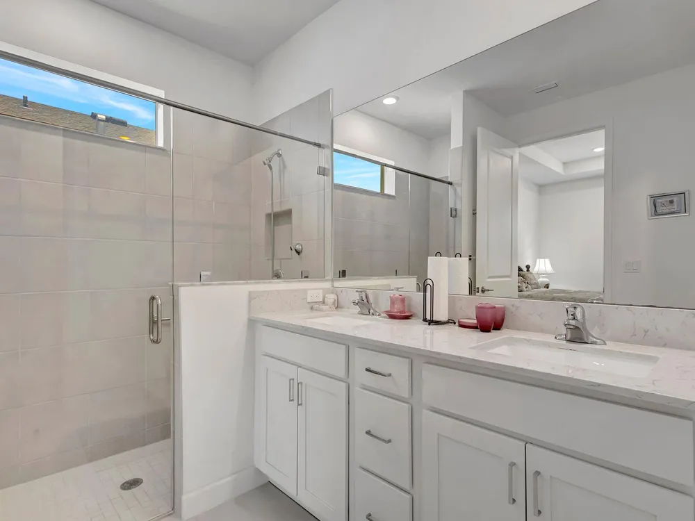 Immaculately maintained 2-bedroom, 2-bath home located in a sought-after resort style 55+ community. This move-in-ready property features tile flooring throughout, impact windows, and a screened-in lanai, perfect for outdoor relaxation. The kitchen is equipped with sleek quartz countertops, stainless steel appliances, and overlooks the open living and dining areas. The master suite includes a double-sink vanity and spacious shower. Enjoy access to a wide range of community amenities including a clubhouse with social activities, fitness center, pool, and theater room. Convenient, low-maintenance living at its finest! Don't miss this opportunity to own a beautiful home in a vibrant, amenity-rich community with a low HOA! Seller offering 2% towards closing costs! **restrictions apply
