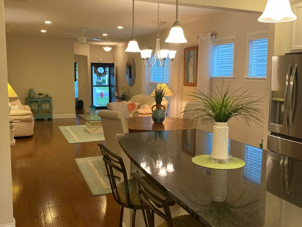 This Taft Street plan is now available in the highly sought after, over 55 community, of Del Webb in Cane Bay. Located on a quiet cul-de-sac street, this 2 bedroom plus office/3rd bedroom home combines comfort, style, and convenience. Enjoy the peaceful pond view with a fountain and forest space year round from your all season screened in porch with windows. An ideal spot to enjoy your morning coffee or an evening glass of wine. This open-concept home features stainless steel appliances, a raised dishwasher and a lowered microwave for accessible daily use. The primary suite offers a large walk-in closet, double vanities, walk in shower, and plenty of privacy. Additional highlights include a lanai off the kitchen, 2 car garage, natural light throughout, office/flex room that could bea 3rd bedroom, A large kitchen island, and full access to Del Webb's incredible amenities including an indoor and outdoor pool, fitness center, pickle ball. game nights, outdoor concerts, and various clubs. This is more than just a home - it's a lifestyle, and it's Mighty Fine!