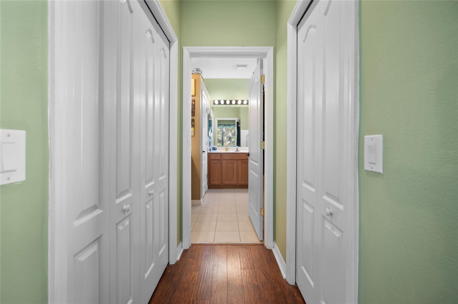 - Ceiling Fan(s), Eat-in Kitchen, Main Level Primary, Solid Surface Counters, Thermostat, Walk-In Closet(s), Window Treatments
