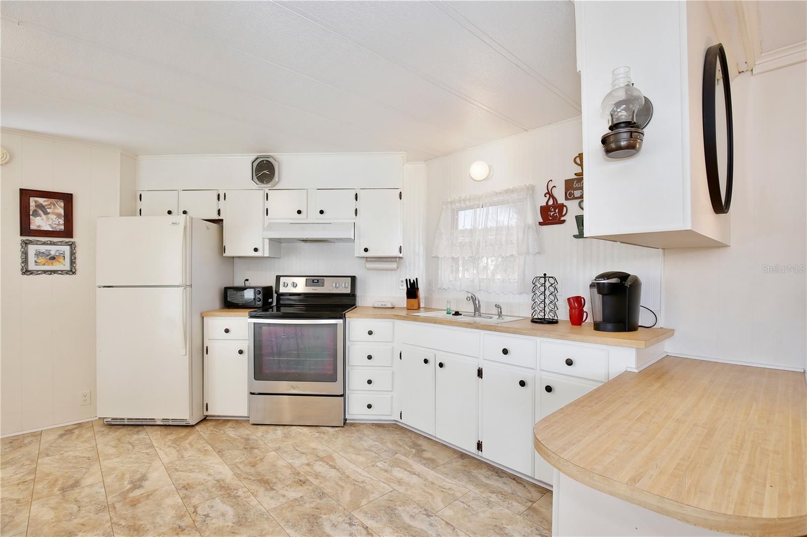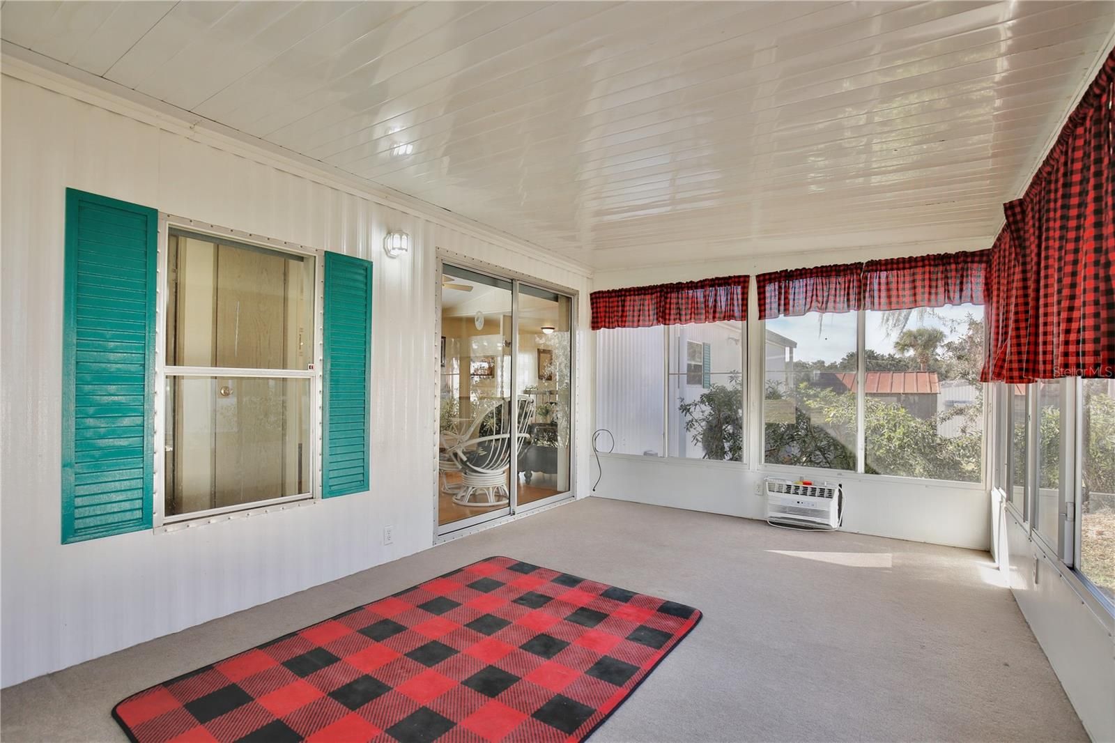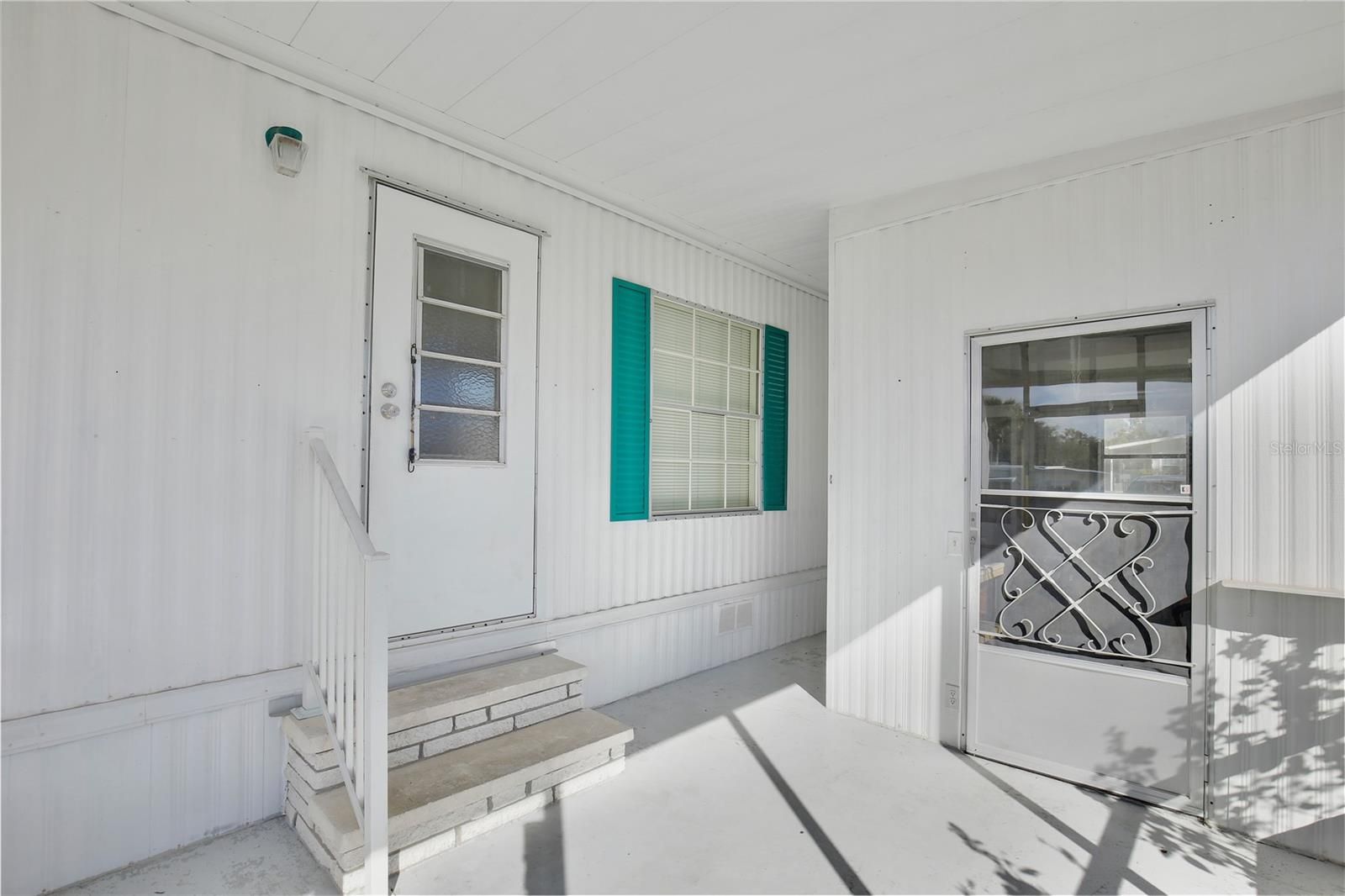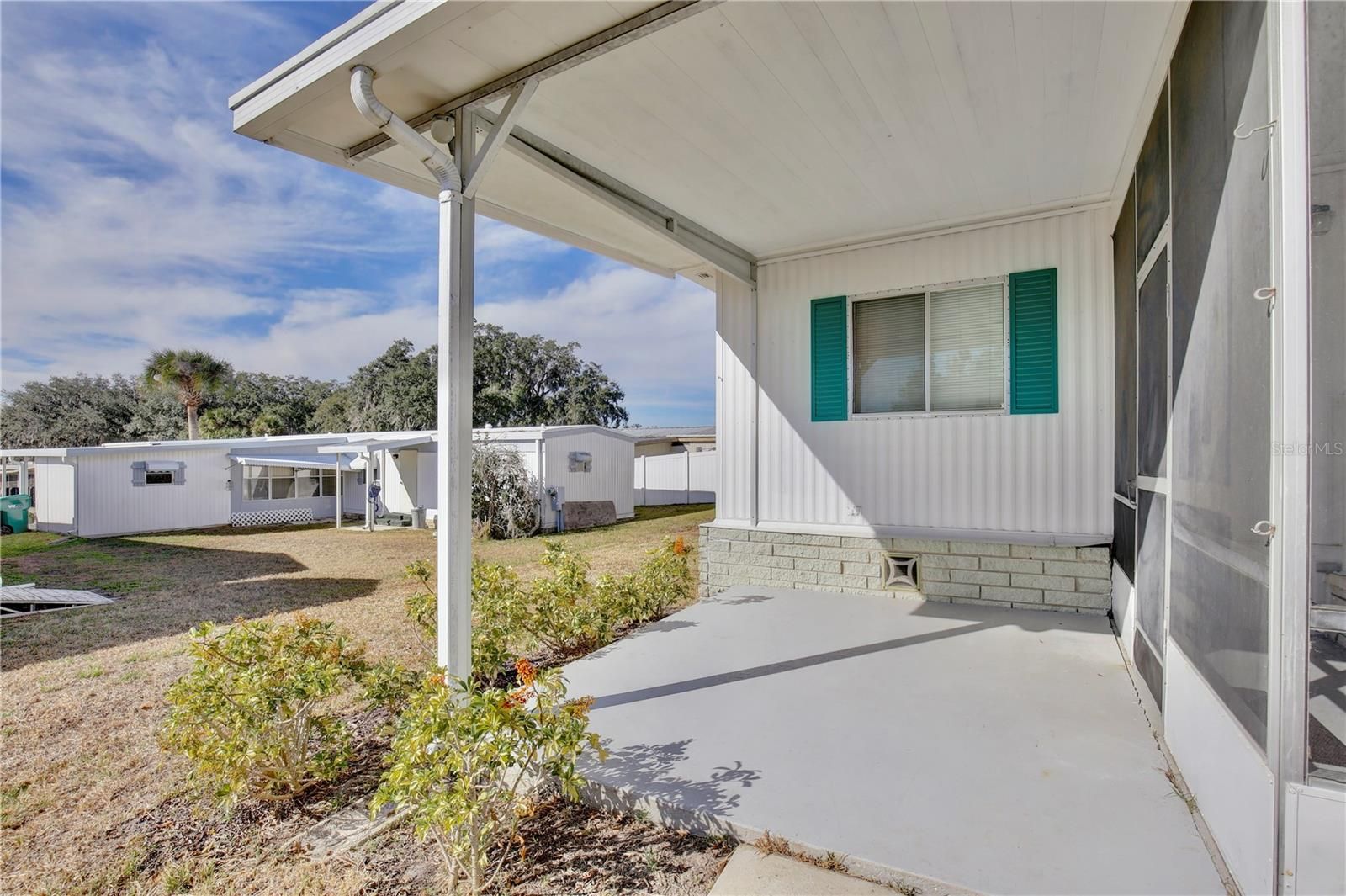 BUYER FAILED TO PERFORM - BACK ON THE MARKET - HVAC 2025, Water Heater 2026 - CPVC plumbing. Nestled within a serene community and part of only 4 streets with NO HOA, this beautiful manufactured home presents the perfect blend of comfort and convenience for those seeking an active and social lifestyle in the Sunshine State. Embrace easy living in this two bedroom, two bathroom residence which boasts a thoughtful layout designed with relaxation and entertainment in mind. As you step inside, you'll be greeted by the living room where vaulted ceilings and wood style flooring create an inviting atmosphere. Natural light pours through sliding glass doors that lead to an enchanting sunroom, providing a tranquil space to unwind and tend to house plants. The neutral color palette throughout the home offers a blank canvas for personal touches and decor. The heart of the home, an eat-in kitchen, features butcher block style countertops, complemented by an abundance of cabinetry and bar top seating that make both cooking and hosting a pleasure. Each bedroom provides access to a bathroom, with the primary suite featuring built-in cabinets for added storage and a private bathroom with a tub/shower combo. The second bedroom is spacious and conveniently shares access with the hallway bath, complete with ample counter space and another tub/shower combo. Outside, multiple covered patios, a screen-enclosed area, and the sunroom offer a variety of options for savoring the beautiful Florida weather. The shaded carport, outdoor laundry room equipped with a sink and cabinet storage, and additional outdoor shed ensure practicality meets leisure. Situated just off County Road 44, your new home keeps you close to a plethora of amenities, including shops, dining, golf courses, and antique malls, nail salons, campgrounds, Brownwood Paddock Square in The Villages for free nightly entertainment and more. Don't miss out on the opportunity to join a community where life's pleasures are always within reach. Call today to schedule a showing and embark on the next chapter of your vibrant retirement journey!