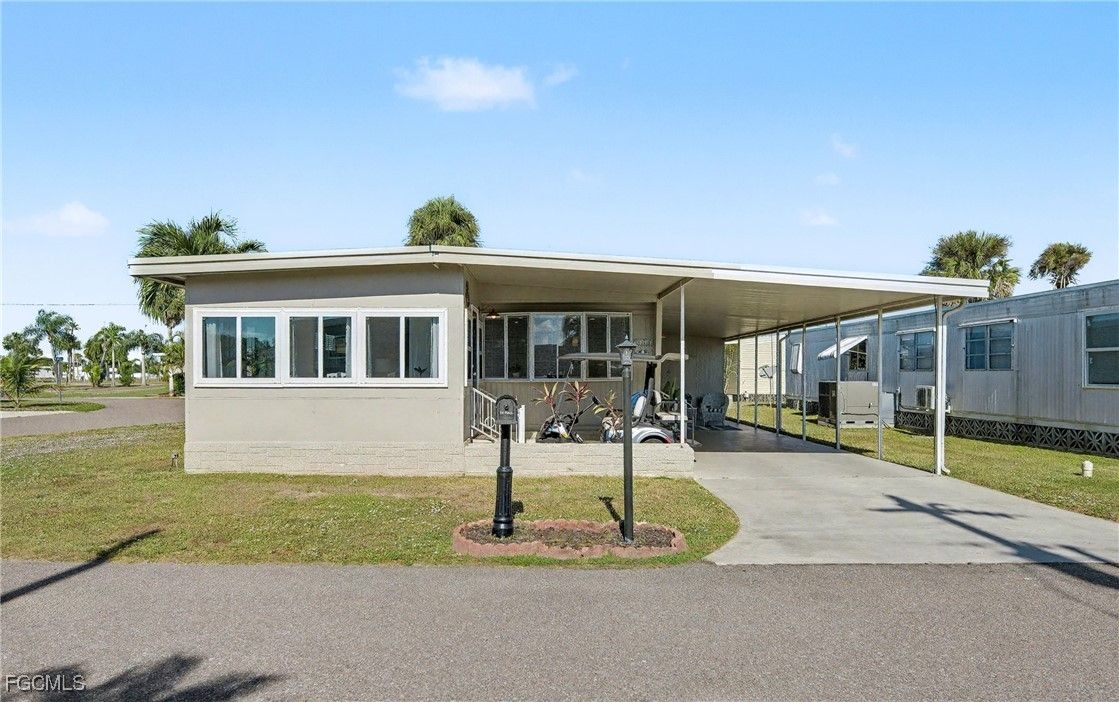 Beautifully remodeled, fully furnished manufactured home in a 55+ waterfront gulf access community in North Fort Myers, FL. This turnkey retreat features a bright, open-concept living and dining area, a chef’s kitchen with quartz countertops, stainless steel appliances, and stylish Florida decor. The two-bedroom, two-bath layout includes a refreshed master suite and en-suite bath, luxury vinyl plank flooring throughout, modern fixtures, and smart home-ready touches. Enjoy mornings on a private screened lanai with peaceful canal or water views and easy access to boating, fishing, and social amenities. Set within a guard-gated, golf-cart-friendly community, residents enjoy a clubhouse, pool, fitness center, pickleball/tennis courts, and a lively social calendar, boat storage and direct access to the Caloosahatchee River. Exterior highlights include fresh paint, landscaped grounds, and convenient parking with a covered carport and storage shed. This low-maintenance home is perfectly suited for snowbirds or full-time residents seeking waterfront access, resort-style amenities, and a turnkey Florida lifestyle. Schedule a private tour to see all that this home and community have to offer.