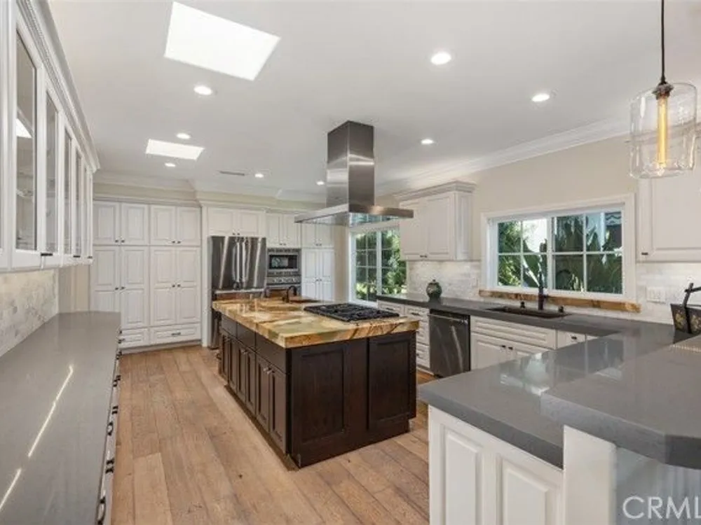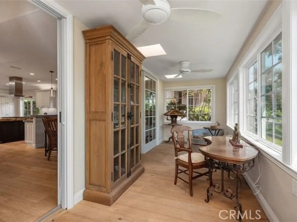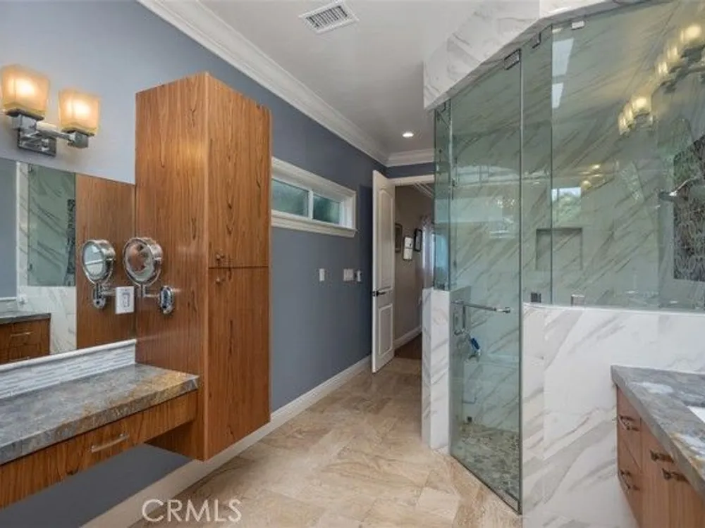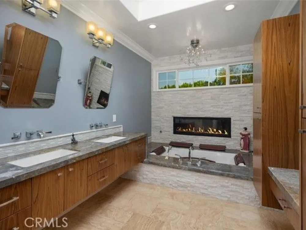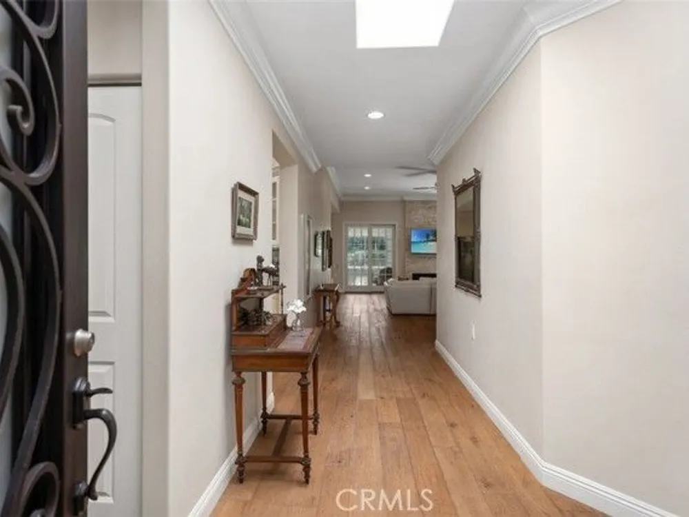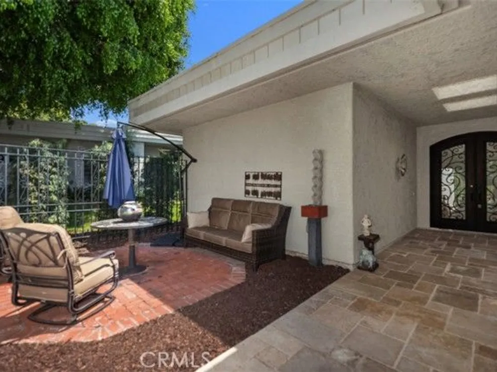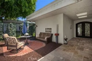 Exquisite Grand Finale CASA PALMA, a rare fully customized “110” Masterpiece remodeled in 2015 and hidden within the exclusive guard-gated Laguna Woods Village. The Versailles pattern tumbled travertine courtyard and stunning iron scroll double doors welcome you home. Every element reflects luxury and craftsmanship. Inside, Garrison French Oak oil-finished engineered wood flooring and eleven foot ceilings with designer crown molding and baseboards. Skylights and upgraded lighting fill the home with warmth and sophistication. The expansive living room showcases a dramatic stacked stone fireplace and a custom library wall with rolling ladder. A glass-enclosed patio room creates a seamless indoor and outdoor retreat. One of the few gas equipped homes in the community. The chef’s kitchen is designed for serious cooking and entertaining, with a redesigned center island, slab quartz counters, two copper sinks, premium appliances, abundant cabinetry, skylight, and a rare commercial-grade gas cooktop. The serene primary bedroom suite features a spacious custom walk-in closet and a spa worthy ensuite bathroom with an aromatherapy steam shower, soaking spa tub, heated floor, and a romantic gas fireplace wall. The guest bedroom is also thoughtfully upgraded and is served by a well appointed guest bathroom with a walk-in shower and designer finishes. A dedicated laundry room includes quartz counters, laundry sink, and generous storage cabinets. The oversized two car garage provides excellent storage. Multiple outdoor spaces including a private front courtyard, tranquil rear patio, and enclosed patio room offer the perfect settings for relaxation or entertaining. This residence stands apart for its thoughtful upgrades and timeless design. Set within a vibrant resort-style community offering golf, pools, clubhouses, fitness centers, and over two hundred fifty social clubs, this is more than a home, it is a lifestyle. Opportunities to own a move in ready one of a kind property of this caliber in Laguna Woods are exceptionally rare.