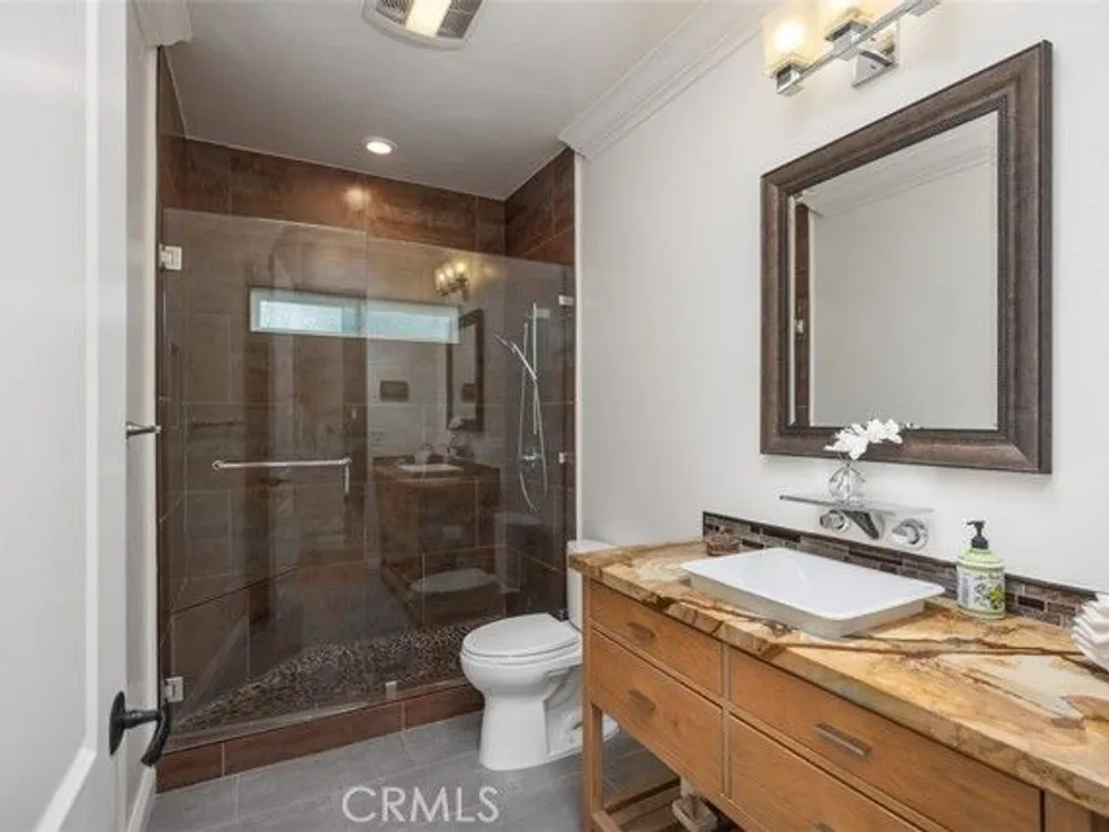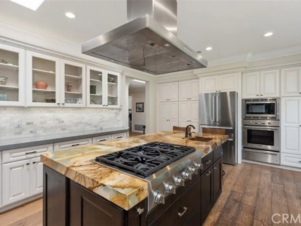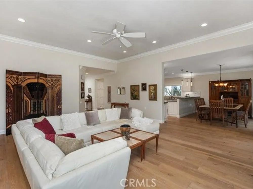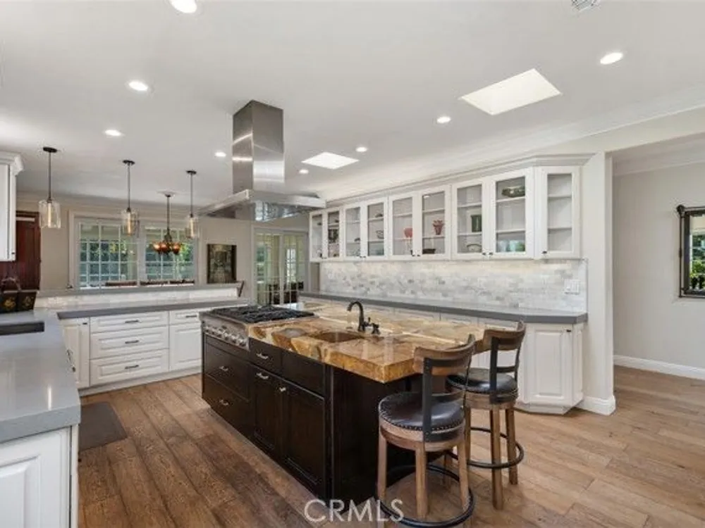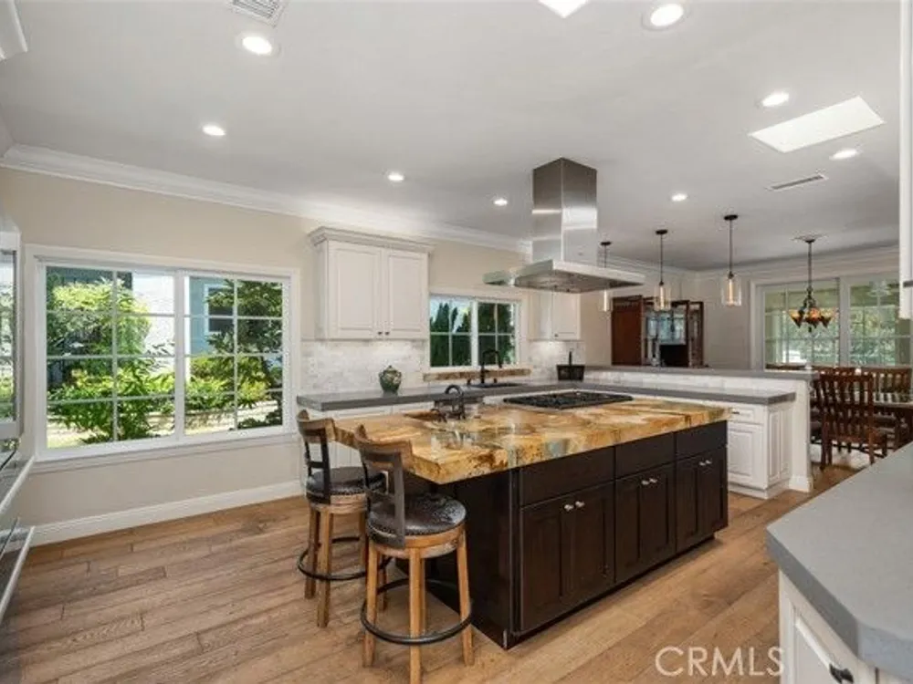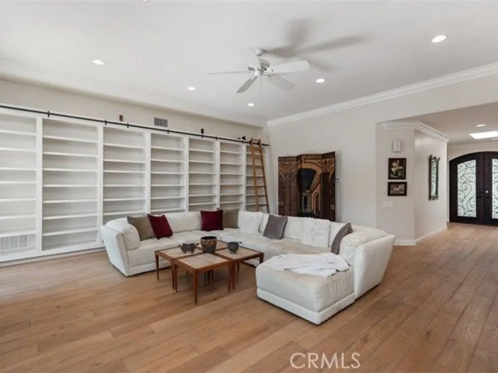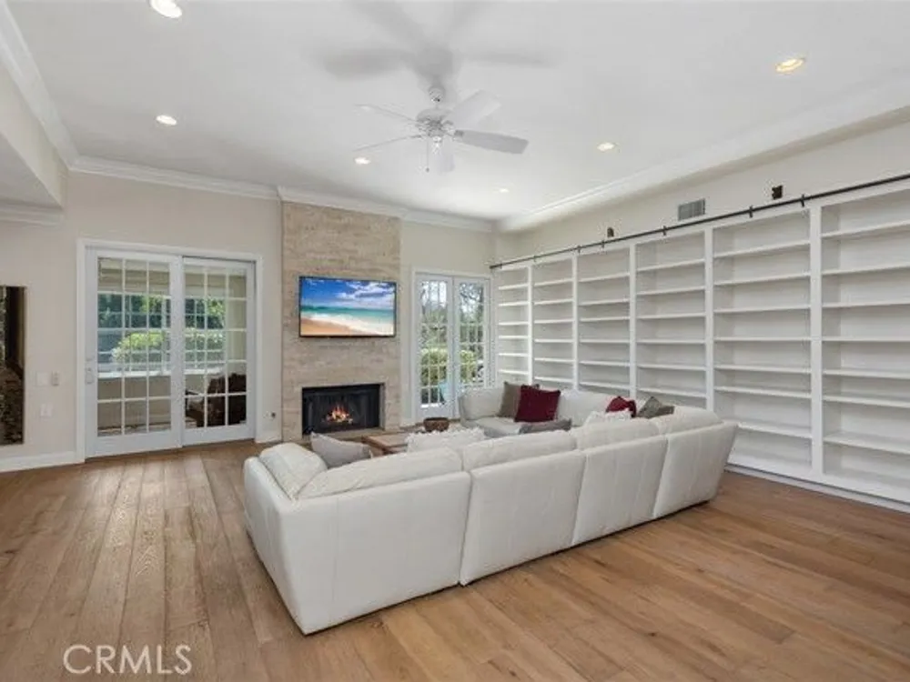 Exquisite Grand Finale CASA PALMA, a rare fully customized “110” Masterpiece remodeled in 2015 and hidden within the exclusive guard-gated Laguna Woods Village. The Versailles pattern tumbled travertine courtyard and stunning iron scroll double doors welcome you home. Every element reflects luxury and craftsmanship. Inside, Garrison French Oak oil-finished engineered wood flooring and eleven foot ceilings with designer crown molding and baseboards. Skylights and upgraded lighting fill the home with warmth and sophistication. The expansive living room showcases a dramatic stacked stone fireplace and a custom library wall with rolling ladder. A glass-enclosed patio room creates a seamless indoor and outdoor retreat. One of the few gas equipped homes in the community. The chef’s kitchen is designed for serious cooking and entertaining, with a redesigned center island, slab quartz counters, two copper sinks, premium appliances, abundant cabinetry, skylight, and a rare commercial-grade gas cooktop. The serene primary bedroom suite features a spacious custom walk-in closet and a spa worthy ensuite bathroom with an aromatherapy steam shower, soaking spa tub, heated floor, and a romantic gas fireplace wall. The guest bedroom is also thoughtfully upgraded and is served by a well appointed guest bathroom with a walk-in shower and designer finishes. A dedicated laundry room includes quartz counters, laundry sink, and generous storage cabinets. The oversized two car garage provides excellent storage. Multiple outdoor spaces including a private front courtyard, tranquil rear patio, and enclosed patio room offer the perfect settings for relaxation or entertaining. This residence stands apart for its thoughtful upgrades and timeless design. Set within a vibrant resort-style community offering golf, pools, clubhouses, fitness centers, and over two hundred fifty social clubs, this is more than a home, it is a lifestyle. Opportunities to own a move in ready one of a kind property of this caliber in Laguna Woods are exceptionally rare.