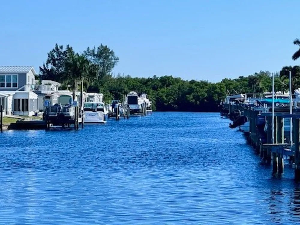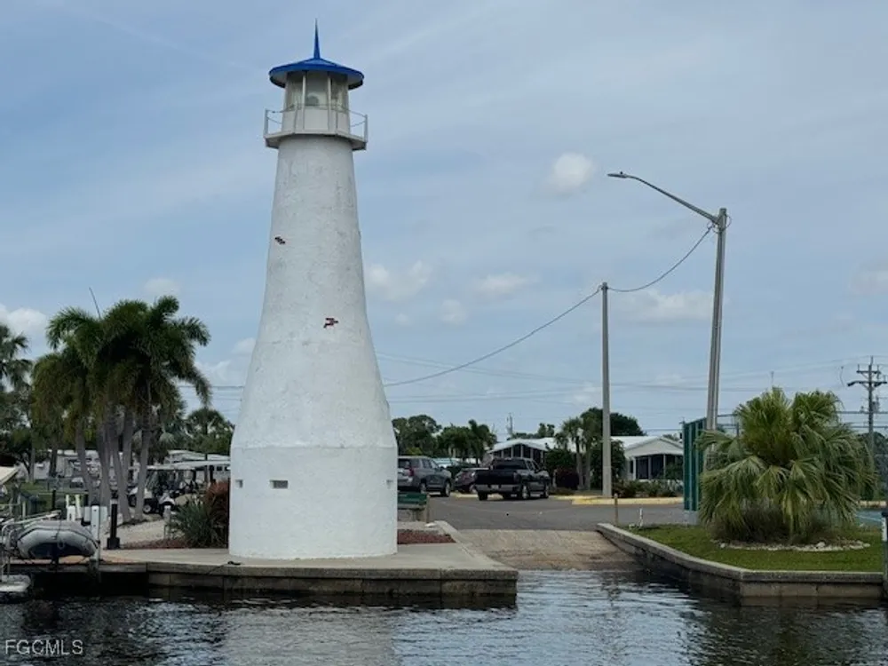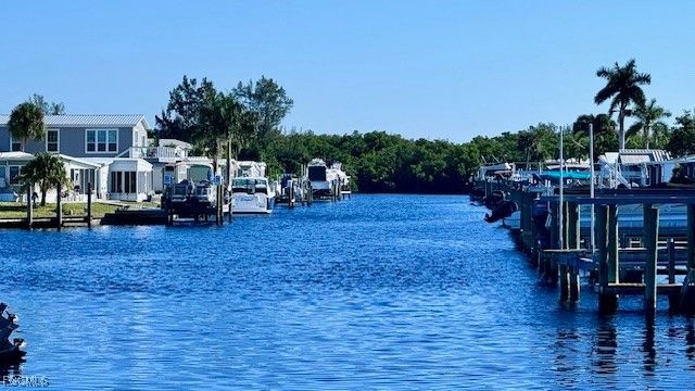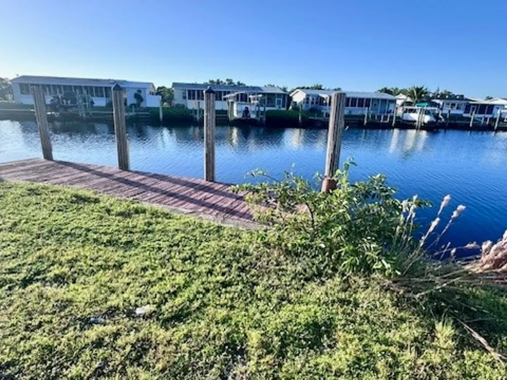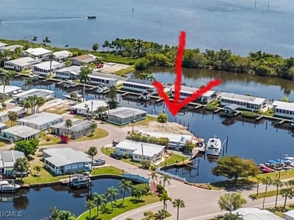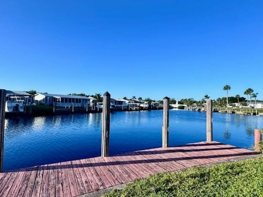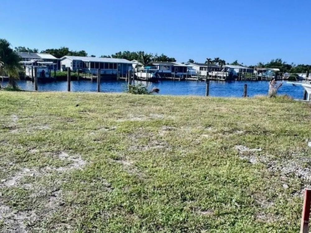 Have you ever Dreamed of Living on an ISLAND? This is an affordable solution. Lot with 90 feet of waterfront is waiting for your dream home. At waterfront is a wooden dock and pilings to pull a nice size boat right in. Located in sought after Old Bridge Village, a friendly, premier 55+ resident owned community with lots of amenities, activities all year, clubs and entertainment. There is a fitness center, recreation center, bocce ball, pickleball, shuffleboard, tennis, basketball, putting green, horse shoe pits, new large pool, hot tub, community clubhouse, fishing pier, fish cleaning station, kayak and boat launch and an 81 slip marina. Drive your golf cart around the community, to and from your activities or to Palm Point, an 8.5 acre greenspace on the riverfront where you can fish, have a picnic, watch the boats or just enjoy the sunset. This community is a hidden gem with just minutes by boat or car to downtown Ft. Myers and right between 2 airports with approximately 30 minutes to both Southwest Florida International Airport and Punta Gorda Airport.
