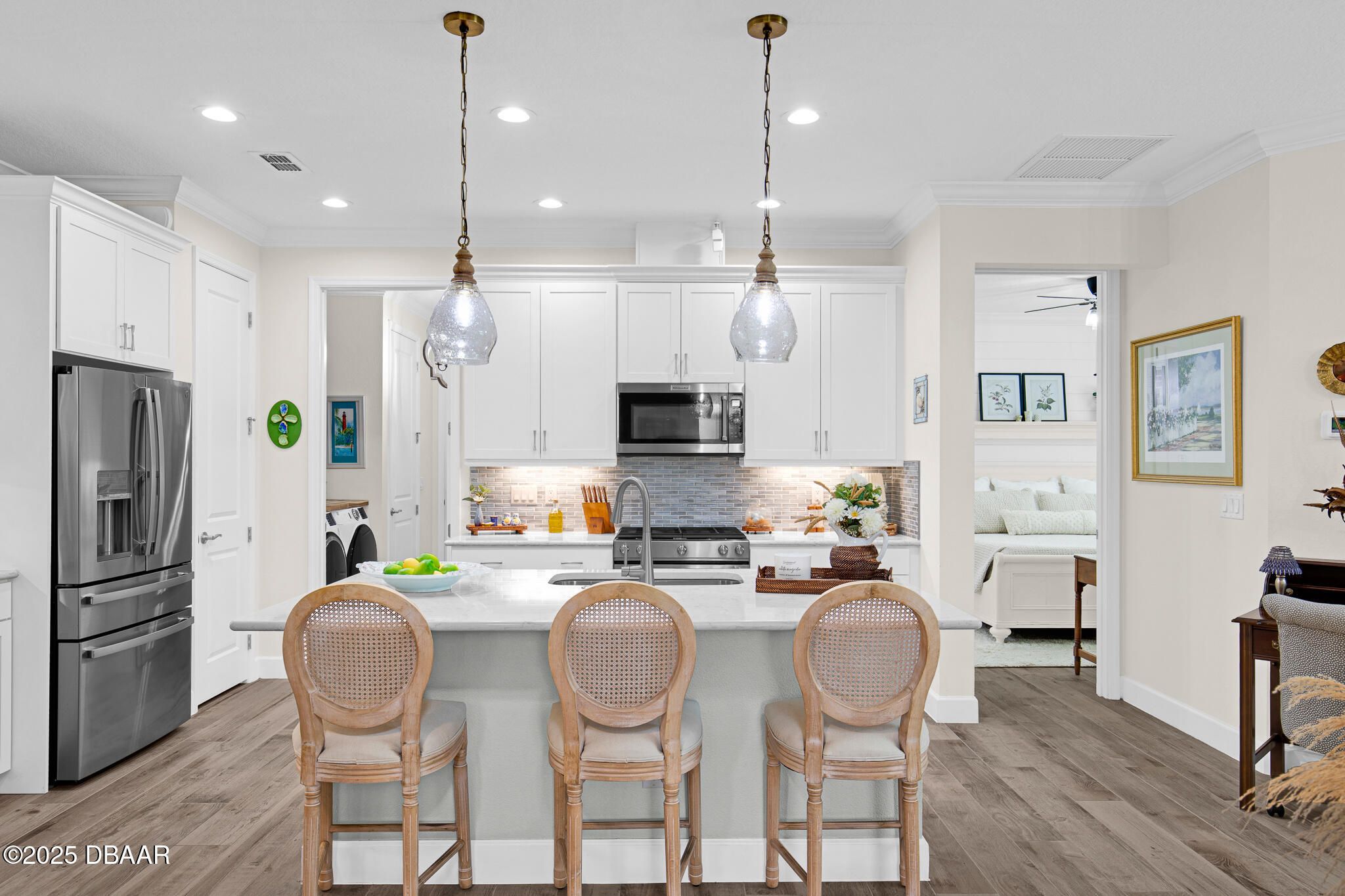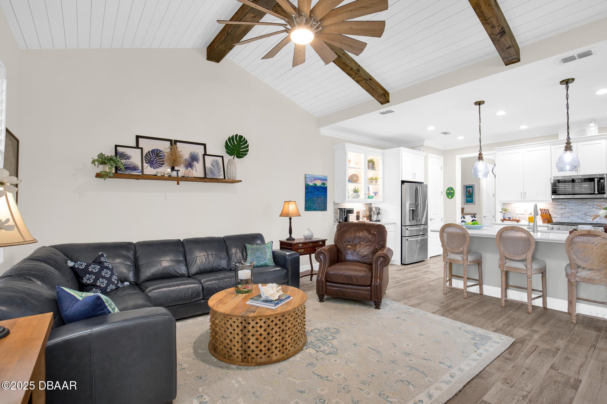 Spectacular Camellia Cottage with UPGRADES GALORE! Stunning shiplap/wood beamed vaulted ceilings in Great Room and 48'' plank tile flooring throughout. Custom shiplap fireplace wall features hearth and mantle. Crown molding adorns every wall with 5 1/4'' baseboards with 8' tall doors. There are shiplap accent walls in the dining room, Master Bedroom and Master Bath. The Guest Bedroom has beadboard with chair rail treatment around the room. Kitchen has a gas range, white soft-close cabinets with 42'' uppers and glass doors with under cabinet and in-cabinet lighting as well as pull-out shelving. Laundry room has 42'' upper cabinets. Guest bathroom has tiled shower. Plantation Shutters throughout and custom closet shelving in Master Bedroom. Garage has utility sink, attic ladder, Ultra Quiet belt drive door opener, retracting screen door, Polyaspartic floor covering, gas connection, surge protector, generator connection. Great amenities: Beach Club, Pool, Fitness Center & Restaurant!