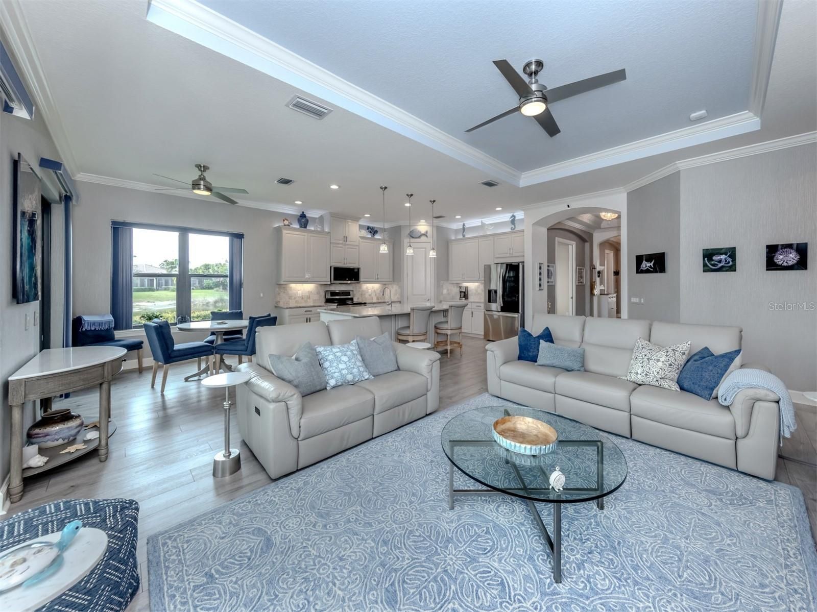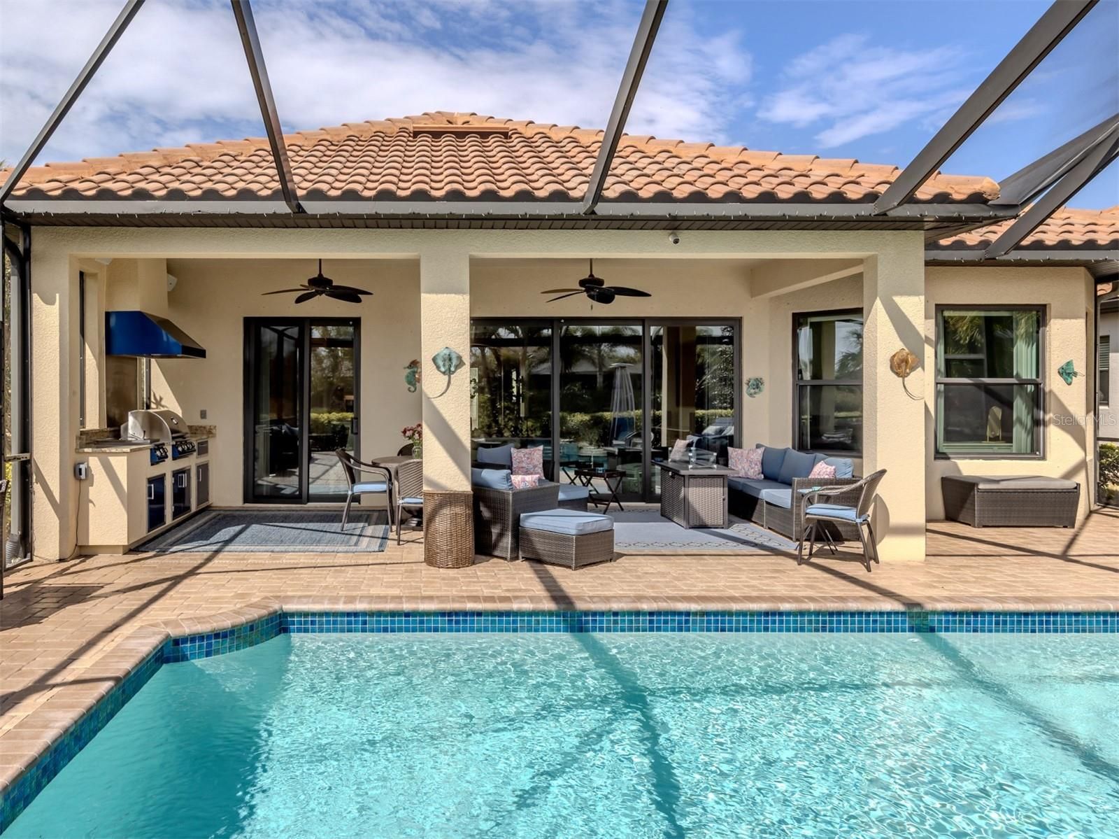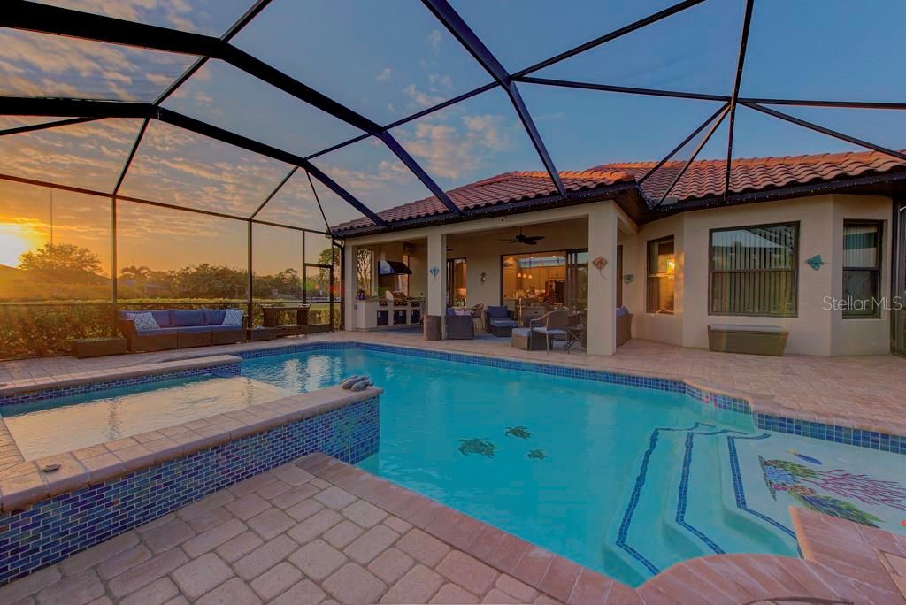Discover this stunning coastal home in the wonderful Taylor Morrison community of Bellacina. You will enjoy the feeling of living on an island as this home is surrounded by lakes and a wildlife refuge pond with waterfowl, turtles and fish. And it is the backdrop to glorious sunsets from almost every room. The location is perfect; it is steps to the pathway to the terrific amenities. The home is sunny and bright with natural light and colorful designs, luxury vinyl flooring throughout, impact windows, quartz countertops, large kitchen island and beautiful wall treatments. This home has 3bd/3 and ½ baths easily accommodating family and guests. The 25 x 15 ft. salt pool and beautiful spa is custom designed and ready for laps, water games and just a lazy swim. The lanai area is spacious with a covered entertainment area, lounges, and a full outdoor kitchen all overlooking the lake. Bellacina by Casey key is a gated community nestled on the west coast of Florida close to renowned beaches like Siesta Key, Casey Key, Nokomis and Venice. This desirable property is just a 12-minute drive to the ever-popular downtown area of Venice with restaurants, shopping and sightseeing, 30 minutes to downtown Sarasota known for the Ringling complex, Van Wezel Performing Arts, SRQ Symphony and famous Selby Gardens, multiple dinner theaters and a host of other cultural events. Just over a bridge is St. Armands Circle with exquisite shopping, great food and access to Lido Beach and Long Boat Key. Bellacina has attractions of its own. The clubhouse offers social events, social clubs, and houses the fitness center. There is a luxury resort pool with cabanas, umbrellas, water classes, an adjacent spa and an outdoor grill. For the sporting residents and guests there are Har Tru lighted tennis and pickleball courts, bocce and corn hole courts, a playground, and walking paths throughout the beautiful community. Attention-Bellacina has a private entrance to the Legacy Trail! Bellacina will be a home for unforgettable memories, a place to make lasting friends and a convenient way to have a sun and experience filled life on the gorgeous west coast of Florida. Schedule a private showing today.