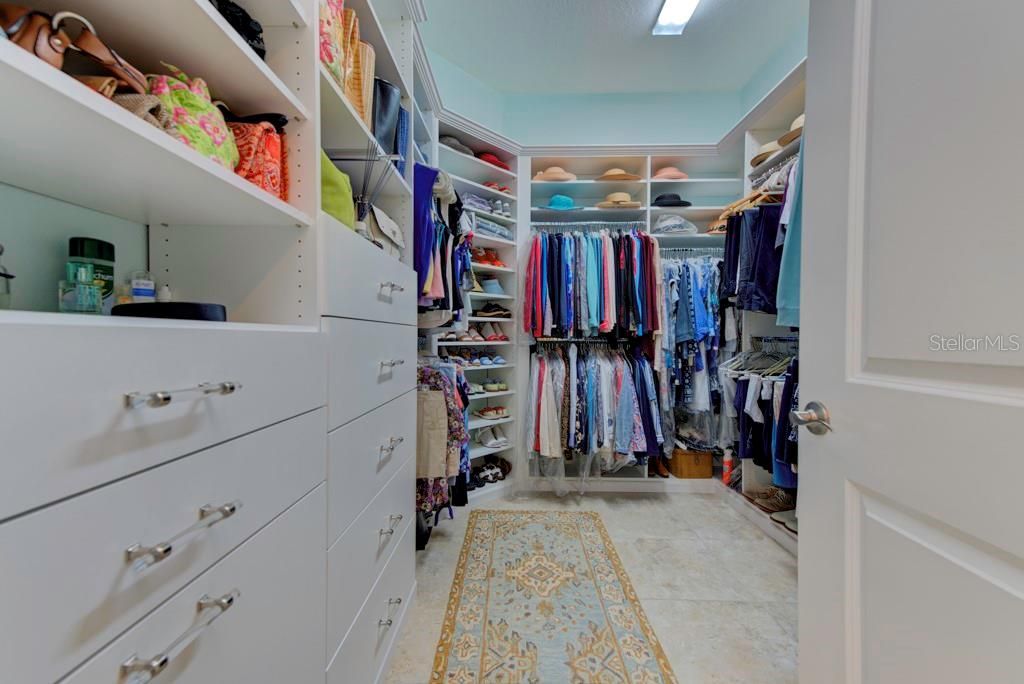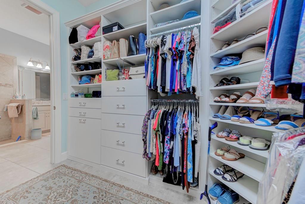 - Ceiling Fan(s), Central Vacuum, Crown Molding, Eat-in Kitchen, High Ceilings, Open Floorplan, Main Level Primary, Smart Home, Solid Surface Counters, Solid-Wood Cabinets, Stone Counters, Thermostat, Tray Ceiling(s), Walk-In Closet(s), Window Treatments