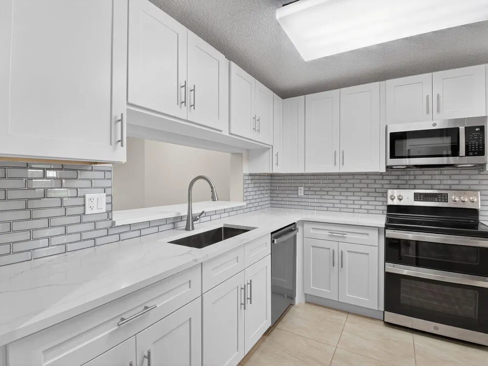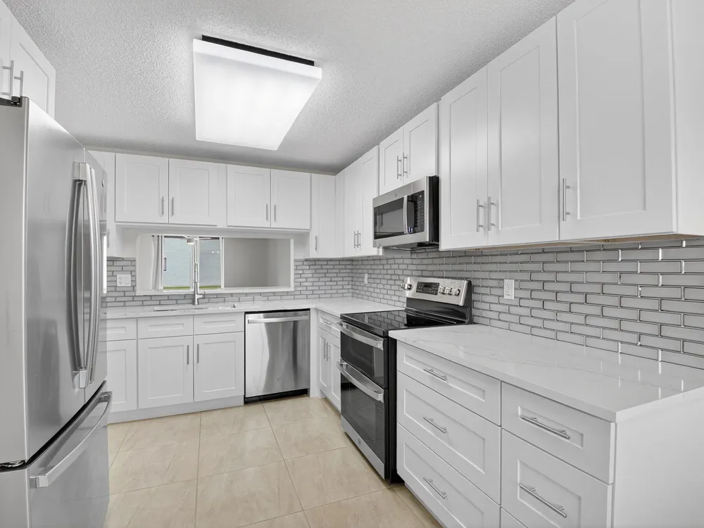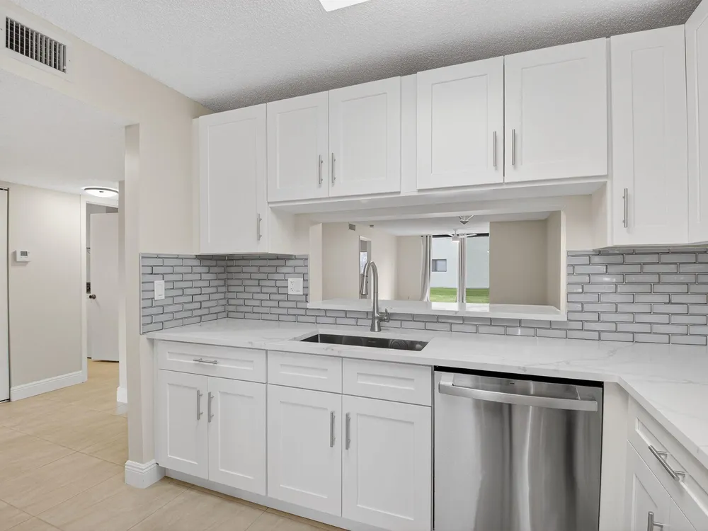 Fully Renovated Ground Floor Condo in Watersedge at Lakes of Delray.Move right into this beautifully updated 1,350 sq. ft. ground floor unit, located in the highly desirable 55+ community in Delray. This spacious 2-bed, 2-bath features a bright, open floor plan with a brand-new kitchen boasting white shaker cabinets, quartz countertops, and stainless steel appliances.The primary suite includes a walk-in closet and a fully renovated en-suite bath. Both bathrooms have been tastefully updated. Enjoy peace of mind with a new roof and elevator recently installed in the building.Community amenities include a pool, clubhouse, tennis courts, gym, pickleball, card games, and more. Conveniently located near shopping, dining, and just minutes from the beach, South Florida living at it's best.