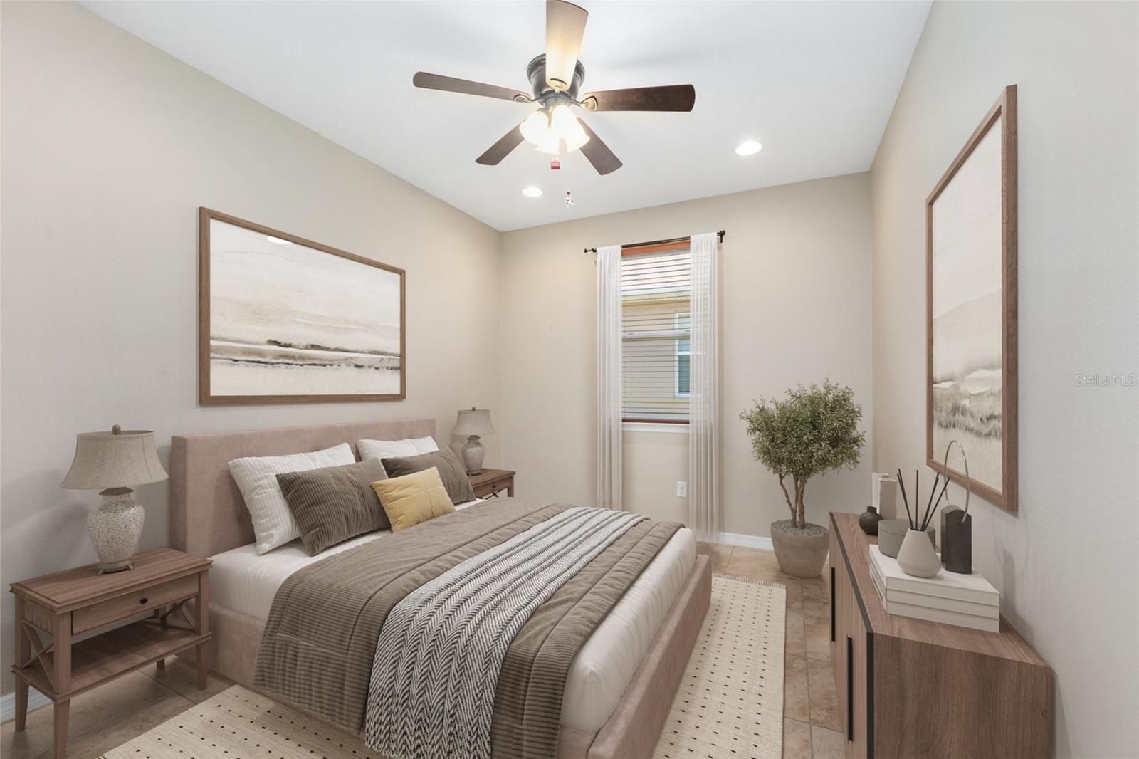 This beautifully cared-for 2-bedroom, 2-bath home offers 1,454 square feet of well-planned living space and shows pride of ownership at every turn. Light, bright, and impeccably maintained, it also features a flexible den that can easily serve as a home office, hobby space, or quiet retreat. Step through the glass-inset front door, complete with a custom remote-controlled blind, and you’re welcomed by updated tile flooring, freshly painted interiors, and a clean, modern feel throughout.? The open layout creates a natural flow for both everyday living and entertaining, keeping everyone connected from kitchen to living and dining spaces. The dining area overlooks the backyard and features sliding glass doors with another remote custom blind, offering both convenience and privacy. The spacious primary suite is tucked away for comfort and includes its own sliding glass doors leading to a private screened lanai - the perfect place to enjoy a peaceful morning coffee or unwind at sunset. With the touch of a button, the custom blind provides effortless shade and privacy. A split-bedroom design positions the guest suite and second bath toward the front of the home, giving visitors their own comfortable and private space.? Recent upgrades add even more value and peace of mind, including a brand-new AC and heat pump system, a newly fenced yard, and fresh sod that enhances the curb appeal and outdoor enjoyment.? Located in the highly sought-after Ocala Preserve, residents enjoy access to resort-style amenities including a state-of-the-art fitness center, multiple pools, spa, pickleball and tennis courts, bocce ball, horseshoes, walking trails, and a championship golf course. A full calendar of clubs and activities - from book clubs and creative arts to card groups and the Veterans club - makes it easy to stay active and connected. This is more than a home; it’s a lifestyle waiting to be enjoyed. Schedule your private showing and experience all that Ocala Preserve has to offer.