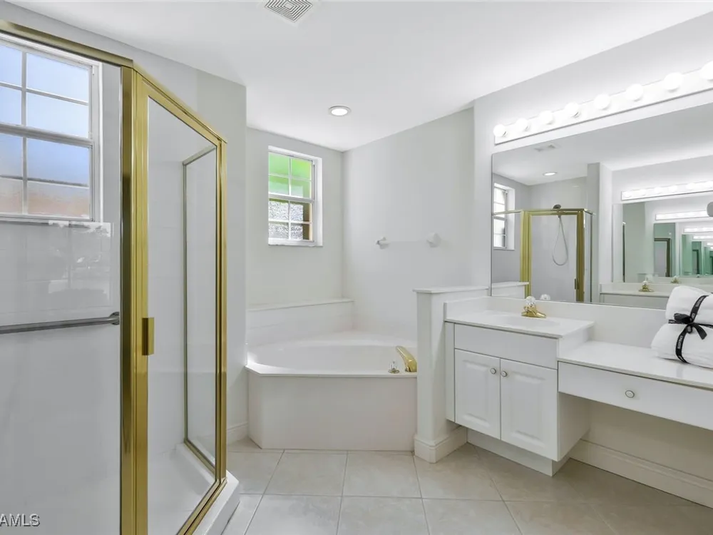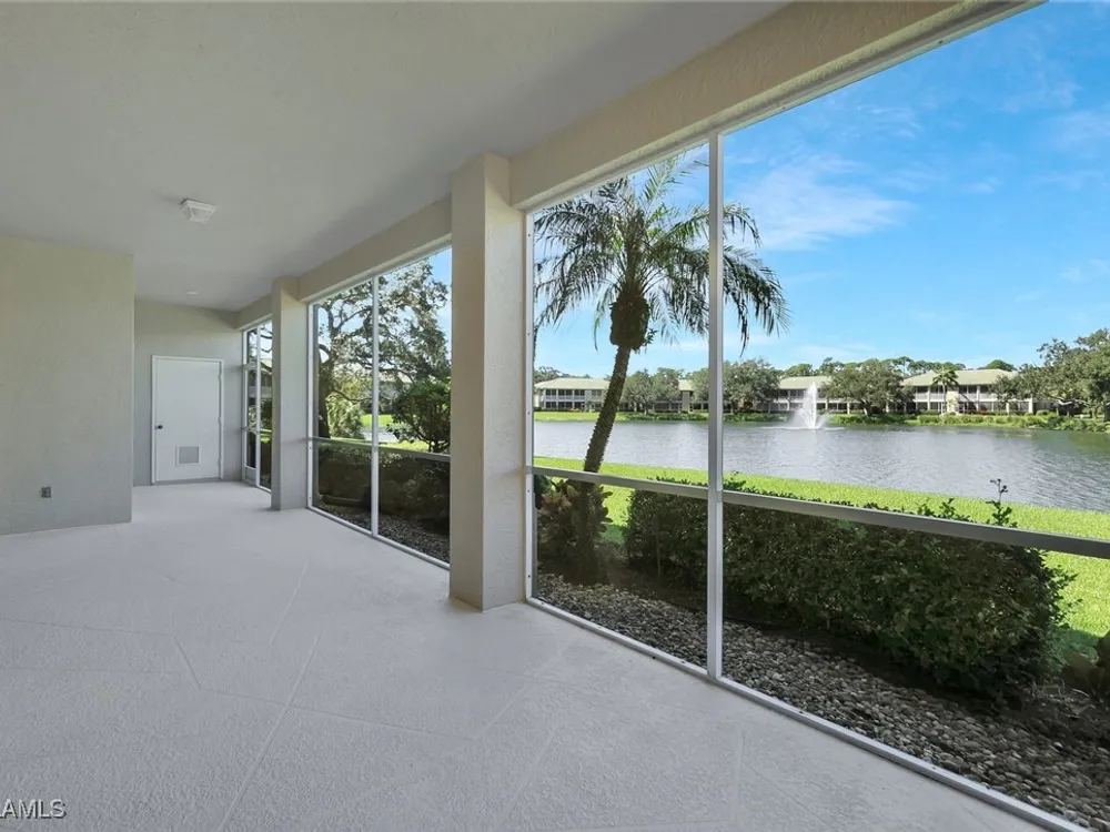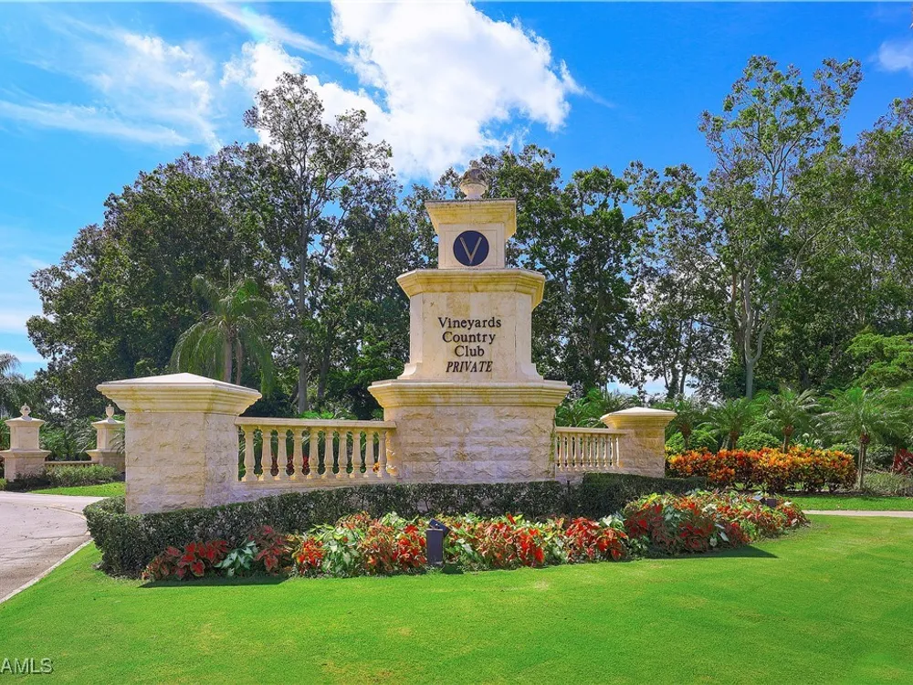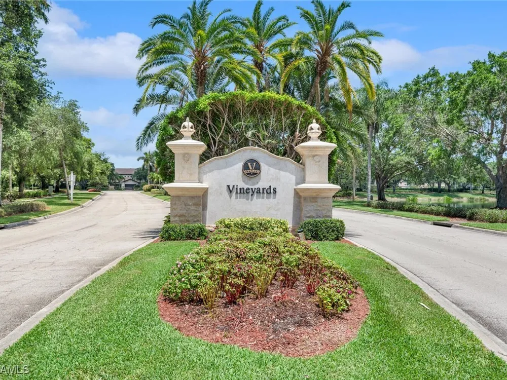 This Vineyards home has stunning LAKE views and an array of recent upgrades, making it move-in ready. Featuring brand NEW flooring, this home also boasts a NEW water heater, NEW air conditioner, NEW fixtures, NEW bathroom faucet and NEW fans. The spacious, neutral interiors create an inviting atmosphere and serve as the perfect canvas for your unique decorating style. Enjoy the convenience of a first-floor residence—no stairs to climb—and a generous TWO CAR garage providing ample storage and parking. The large DEN can be used as a 3rd bedroom. The kitchen and foyer are beautifully tiled on the diagonal, complemented by an elegant decorative inlay in the foyer. The kitchen is enhanced with upgraded easy pullout drawers, adding both style and functionality. Additional upgrades include a NEWER roof and gutters installed in 2020, offering low maintenance living and peace of mind for years to come. Accessibility is effortless thanks to the first-floor location, and the home’s open layout makes entertaining and daily living a breeze. This well-maintained residence is truly a blank canvas, ready for your personal touch. Located in one of Naples’ most sought-after communities, The Vineyard’s offers optional membership to the award-winning Vineyards Country Club. Take advantage of this opportunity to enjoy a vibrant community lifestyle with all the modern luxuries and conveniences you deserve.