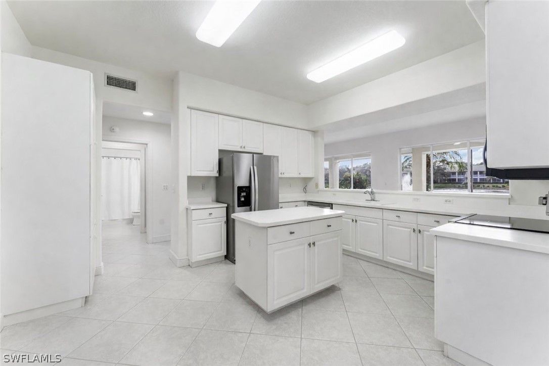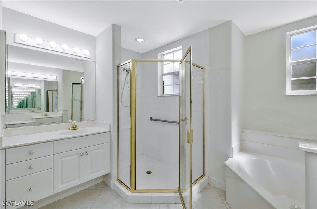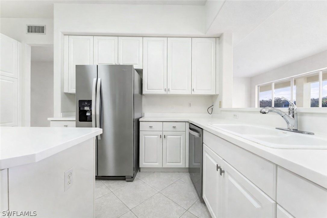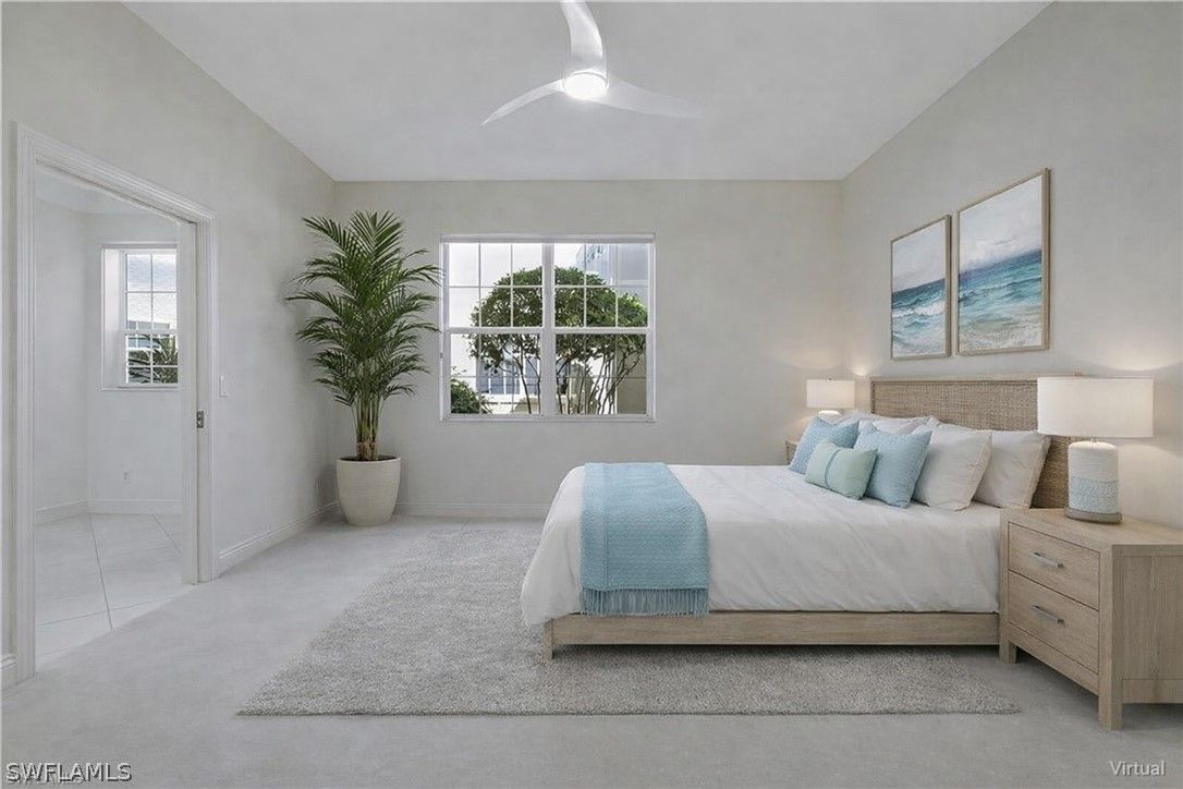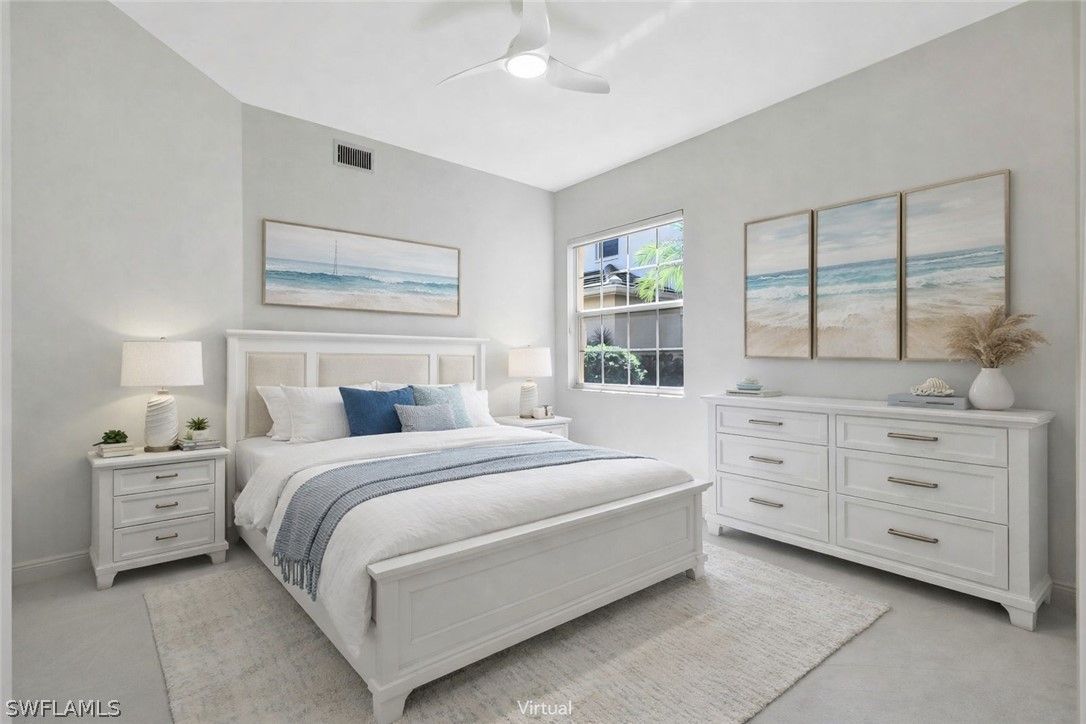 This Vineyards home has stunning LAKE views and an array of recent upgrades, making it move-in ready. Featuring brand NEW flooring, this home also boasts a NEW water heater, NEW air conditioner, NEW fixtures, NEW bathroom faucet, NEW fans and NEW Stainless-Steel kitchen. The spacious, neutral interiors create an inviting atmosphere and serve as the perfect canvas for your unique decorating style. Enjoy the convenience of a first-floor residence—no stairs to climb—and a generous TWO CAR garage providing ample storage and parking. The large DEN with doors can be a THIRD BEDROOM. The kitchen and foyer are beautifully tiled on the diagonal, complemented by an elegant decorative inlay in the foyer. The kitchen is enhanced with upgraded easy pullout drawers, adding both style and functionality. Additional upgrades include a NEWER roof and gutters installed in 2020, offering low maintenance living and peace of mind for years to come. Accessibility is effortless thanks to the first-floor location, and the home’s open layout makes entertaining and daily living a breeze. This well-maintained residence is truly a blank canvas, ready for your personal touch. Located in one of Naples’ most sought-after communities, The Vineyard’s offers optional membership to the award-winning Vineyards Country Club. Take advantage of this opportunity to enjoy a vibrant community lifestyle with all the modern luxuries and conveniences you deserve.