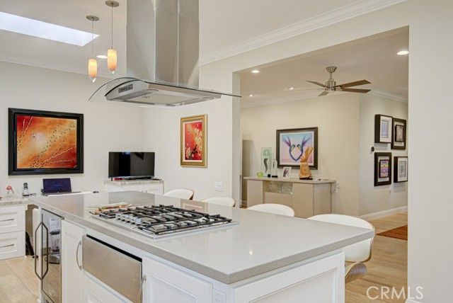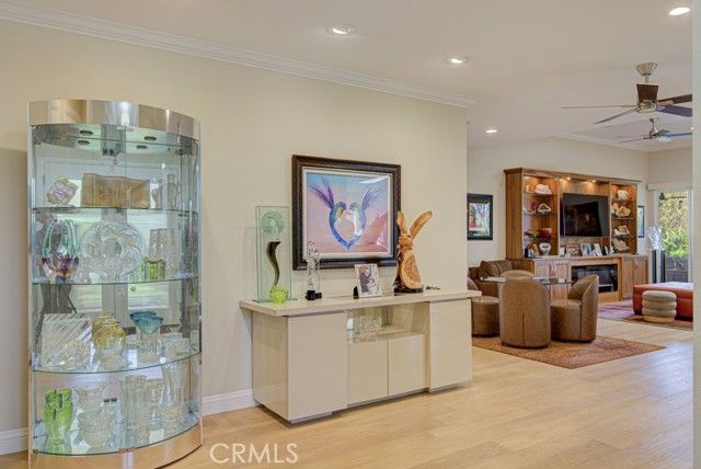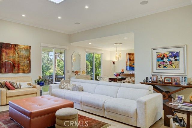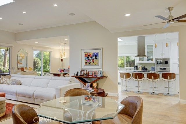 Welcome to 5582-B Via Dicha – a remodeled luxury CASA MONACO residence in the prestigious Grand Finale “110” neighborhood of the Laguna Woods senior community. Nearly 2600 sq ft of living space - largest floorplan in Laguna Woods! Immaculately landscaped w/excellent curb appeal. Lovely private location on a quiet single-loaded street far from busy roads & noisy highways. Impressive double door entry opens to a grand foyer. Spacious living room has dramatic 11’ ceiling & easily accommodates large furnishings. Adjacent dining room readily fits an oversized dining table. Most of the original wall separating kitchen & living room was removed creating a more open living space. Kitchen is chef’s dream w/ample cabinet storage & counter space. Large central island seats up to six. Kitchen features: wine fridge, warming drawer, trash compactor, multiple pots & pans drawers, soft-close cabinet doors & drawers, pull-out drawers & lazy susans. High-end stainless-steel appliances include Bosch oven, gas cooktop & microwave plus Samsung fridge. Large primary bedroom suite is set apart from common rooms allowing for enhanced privacy & has walk-in closet w/custom shelving & luxurious bathroom w/dual sinks & vanity area. Walk-in shower has dual shower heads, seat & convenient accessory shelf. Separate oversized jetted bathtub has extra wide ledge for easy entry/exit. Guest bedrooms have ceiling fans & walk-in closets w/custom shelving. Either guest bedroom could serve as a home office, workout room or arts & crafts studio. Guest bathroom has dual sinks & walk-in shower. Enormous covered rear patio (400 sq. ft.) is accessible from living room, dining room & one guest bedroom & offers tranquil view of immaculately landscaped greenery w/hills, trees & Saddleback Mountains in the distance. Ideal for year-round outdoor entertaining, dining & relaxing. This home has excellent flow & is ideal for large-scale entertaining. Add’l features: smooth ceilings, crown molding, recessed lighting, fans, skylights, dual-pane windows, central HVAC & ceiling speaker system in the living room. Beautiful wood laminate flooring throughout except for the bathrooms with ceramic tile. Separate laundry room w/ample storage cabinets & utility sink. Extended driveway accommodates up to four additional vehicles plus ample street parking for guests. Do not miss this special one-of-a-kind opportunity to own one of the finest homes in Laguna Woods!