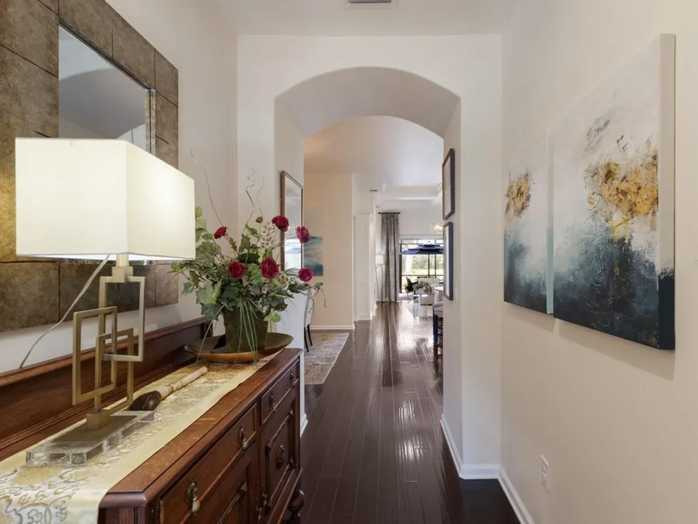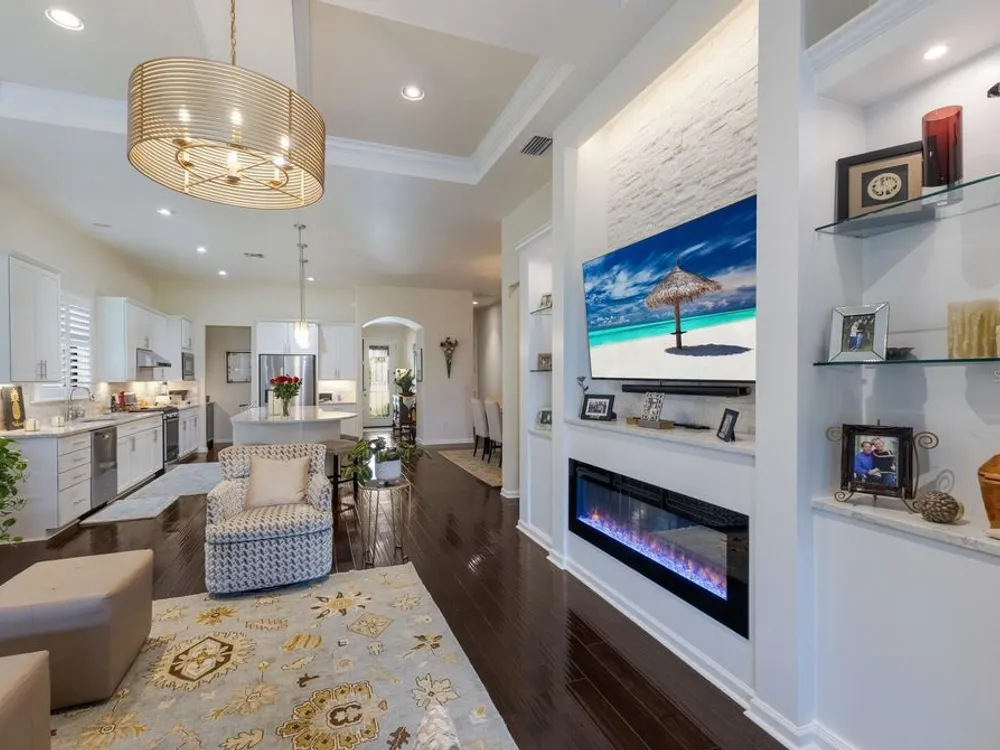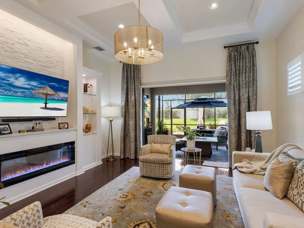 THIS HOME IS A WOW! SHOWS LIKE A MODEL AND IS IN IMMACULATE MOVE IN CONDITION! BEAUTIFUL FRONT HOME ELEVATION WITH LUSH PROFESSIONAL LANDSCAPING. A BRICK PAVER WALKWAY, OVERHEAD ARCHWAY AND LEADED GLASS FRONT DOOR MAKE FOR A VERY IMPRESSIVE ENTRANCE TO THIS LOVELY HOME. SPECIAL FEATURES INCLUDE LUXURY ENGINEERED HARDWOOD FLOORS, TRAY CEILING ACCENTS IN THE DEN, DINING ROOM, AND PRIMARY BEDROOM. FABULOUS CHEF KITCHEN HAS STONE COUNTERTOPS WITH TILE BACKSPLASH, WHITE WOOD CABINETS, STAINLESS APPLIANCES, LARGE CUSTOM KITCHEN ISLAND WITH BREAKFAST BAR. SEPARATE DINING ROOM. LARGE PRIMARY BEDROOM WITH HUGE WALK IN CLOSET WITH A BUILT IN DRESSER, THE PRIMARY BATHROOM SPORTS A LARGE WALK IN SHOWER. FABULOUS GREAT ROOM HAS A SPECTACULAR BUILT IN FEATURE WITH A CONTEMPORARY ELECTRIC FIREPLACE, SPECIAL LIGHTING ABOVE ACCENTS WHITE STONE TILE, AND BUILT-IN SHELVING. THERE IS ALSO AN OFFICE NICHE WITH A BUILT IN DESK. THE LANAI HAS BEEN EXTENDED, HAS SUN SHADES AND BRICK PAVER FLOORING. OFF THE LANAI ENJOY A LARGE BRICK PAVER PATIO! EXTRA LARGE GARAGE FOR 2 CARS PLUS A LARGE STORAGE AREA, ROOM FOR A GOLF CART AND YOUR OTHER TOYS. HAMMOCK PRESERVE IS A BEAUTIFUL GATED COMMUNITY WITH A RESORT LIFESTYLE. AMENITIES INCLUDE A LARGE CLUBHOUSE, WITH FITNESS CENTER, RESORT POOL, TENNIS AND PICKLEBALL COURTS, DOG PARK TOO! ATTACHED TO THIS LISTING IS AN IMPRESSIVE LIST OF BUYER UPGRADES ON THIS SPECIAL HOME.