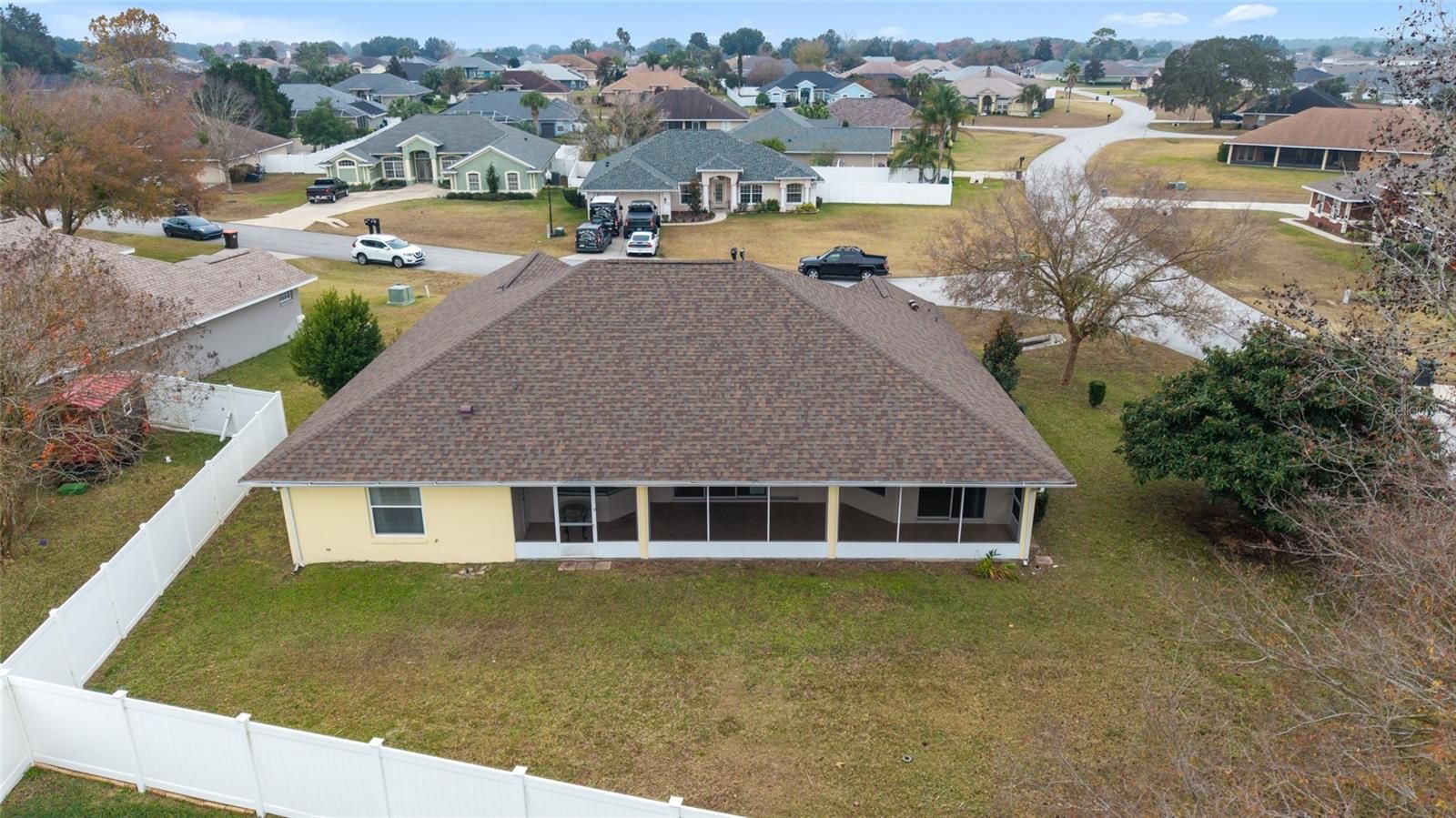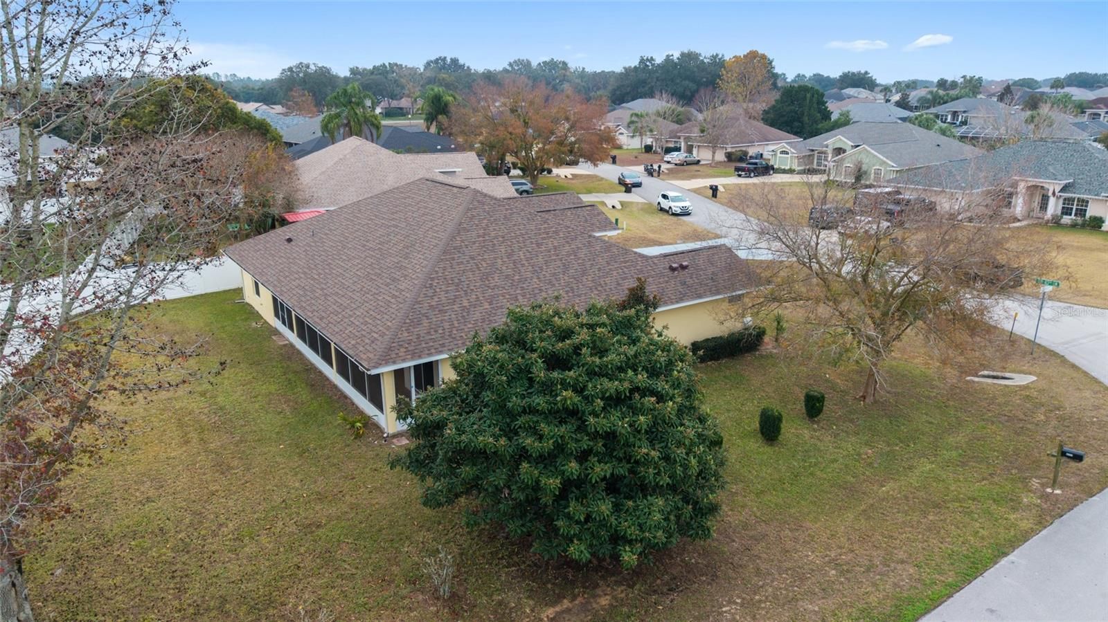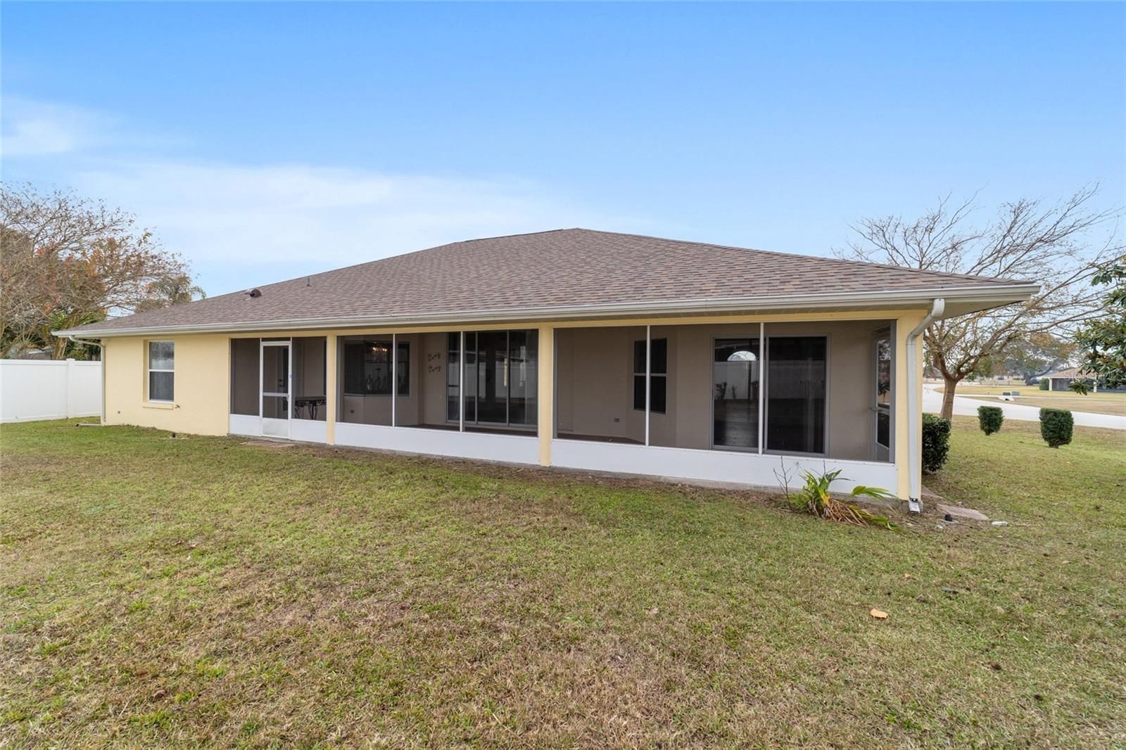 Welcome to this thoughtfully updated home located within the peaceful and well-kept neighborhood of Bent Tree. NEW ROOF (January 2025) and NEW HVAC (2024) provide peace of mind for years to come. Situated on an oversized corner lot, the home is framed by mature trees and neat landscaping, all supported by an in-ground sprinkler system. Inside, this expansive single story home features an open and functional floor plan, including a versatile OFFICE or DEN that easily adapts to your lifestyle. Ceramic wood-look tile runs throughout the main living areas, providing both durability and easy maintenance, while the new QUARTZ countertops add a clean, modern touch to the kitchen. The primary suite is generously sized and includes double closets along with direct access to the lanai through sliding doors. The en-suite bath feels like a private retreat, complete with a WALK-IN SHOWER and a relaxing SOAKING TUB. A desirable split-bedroom layout places two additional bedrooms and a second full bath on the opposite side of the home, offering comfort and privacy. In the main living area, stacking sliding glass doors open seamlessly to a tiled lanai and screened enclosure- perfect for morning coffee or unwinding while enjoying the spacious backyard. The outdoor space is enhanced by mature landscaping, including a loquat tree and a magnolia, creating a tranquil setting. Conveniently located near I-75 and just minutes from shopping, dining, and medical facilities, this home offers both comfort and accessibility. Schedule your private showing today!