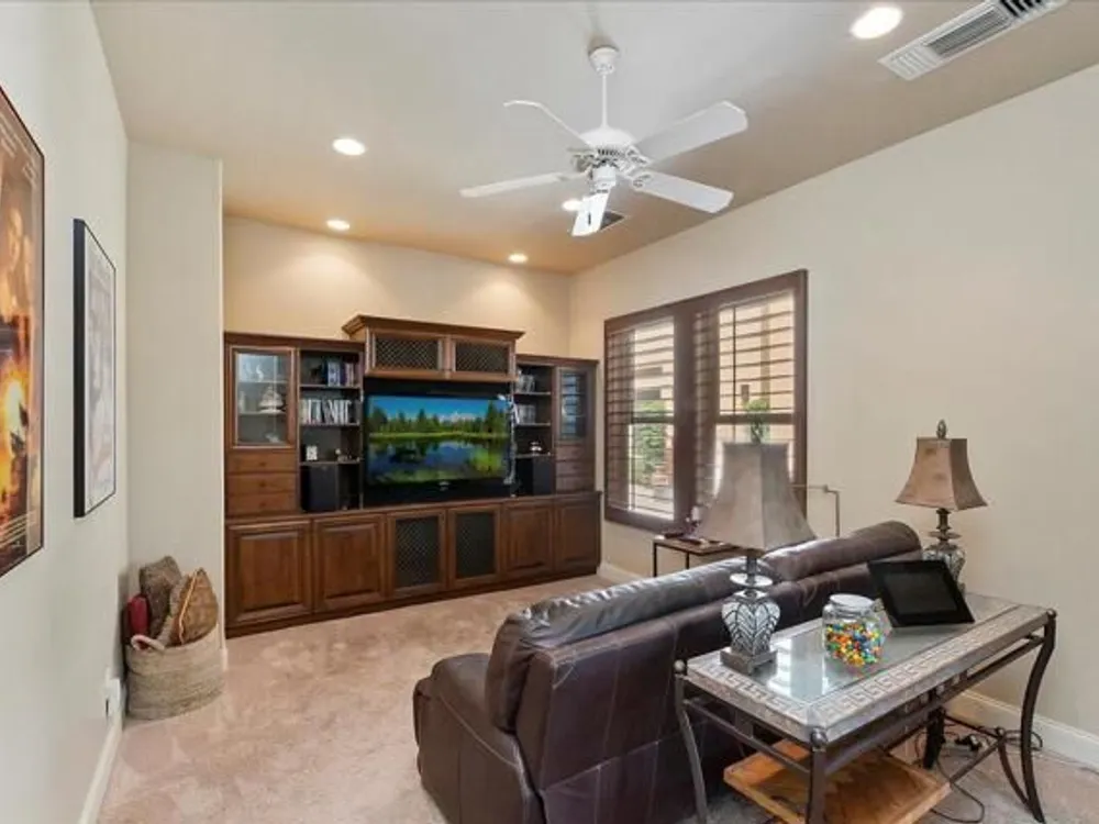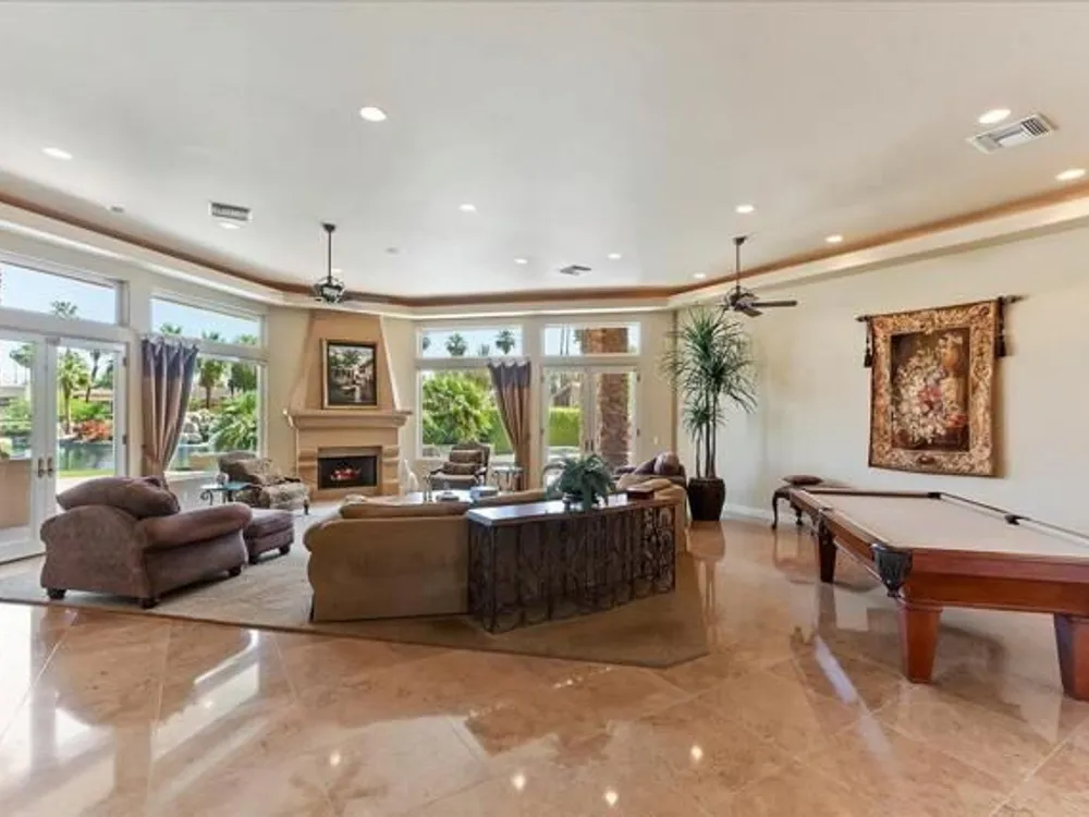 Discover timeless elegance and unmatched comfort in this fully furnished 4,500 sq ft custom estate, ideally located in the heart of PGA West's exclusive Stadium development. Situated on a generous 15,682 sq ft corner lot with panoramic lake views, this property combines sophistication and serenity in one breathtaking package. From the moment you arrive, the curb appeal is undeniable--stone front exterior, circular paver driveway, and an expansive front patio set the stage. Enter through a designer metal-and-glass front door into a world of refined finishes, including travertine flooring, custom Alderwood cabinetry throughout, and plantation shutters. The open-concept layout flows beautifully, anchored by a chef's kitchen featuring bullnose granite countertops, Viking appliances, a wine cooler, walk-in pantry, and a large island ideal for casual dining or entertaining. The step-down wet bar enhances the entertaining experience, while the living room fireplace and surround sound media room make every moment feel intentional. The formal dining room invites celebration, and the attached private-entry casita with its own living room is perfect for guests or in-laws. The primary suite offers its own fireplace, luxurious en-suite bath, and direct outdoor access. Speaking of outdoors--you'll enjoy a backyard oasis with a custom outdoor kitchen, fireplace, raised spa, and sparkling pool, all framed by mature landscaping and lakefront tranquility. Garage parking for three cars, plus a golf card. This is more than just a home--it's a statement of lifestyle, comfort, and class in one of La Quinta's most coveted neighborhoods.
