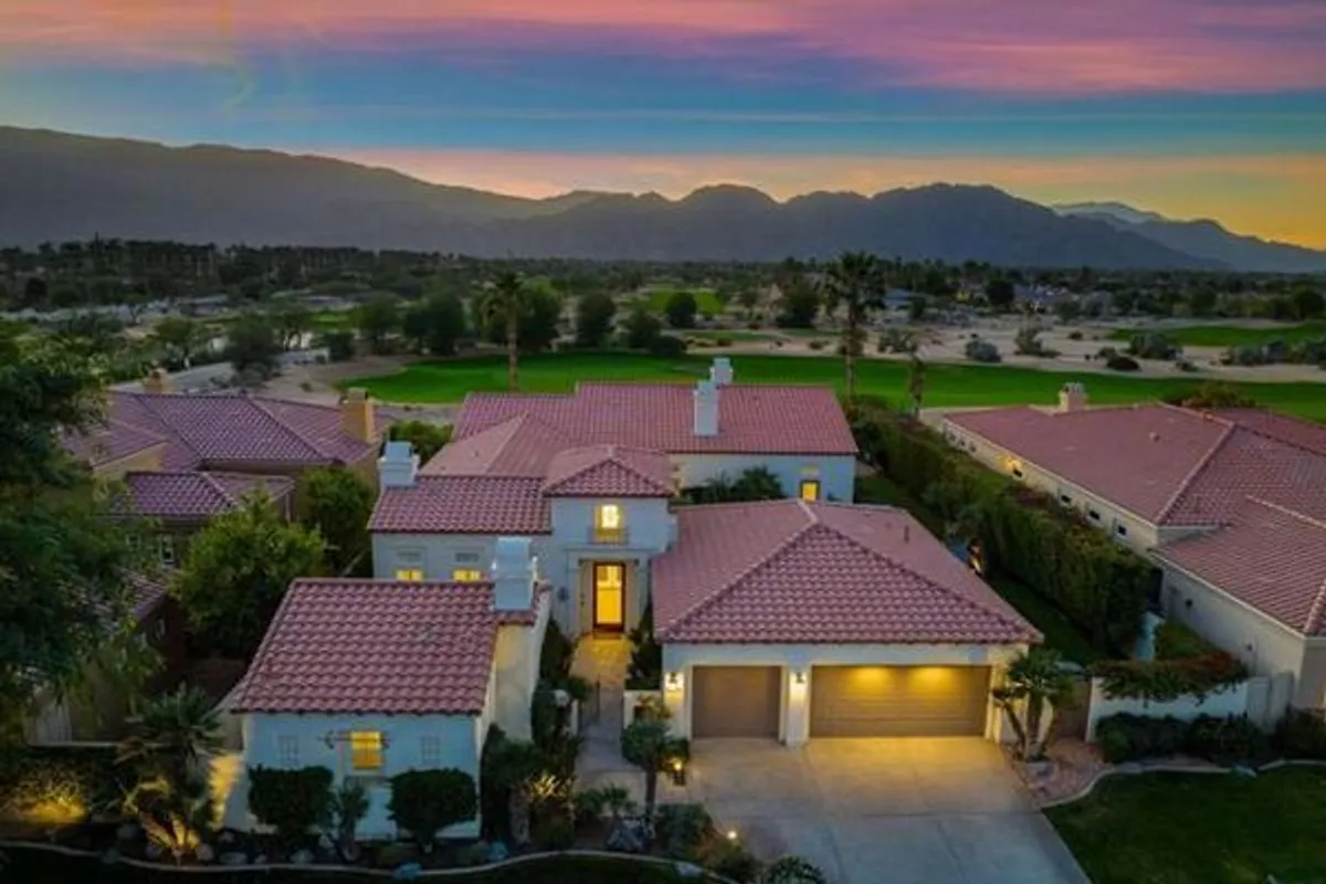 Situated along the 6th Green of PGA West's prestigious Greg Norman Golf Course, this beautifully remodeled single-family home blends luxury, comfort, and resort-style living. Offering four bedrooms and four full bathrooms, the residence includes a detached casita that provides a private retreat for guests. A gated courtyard entry with lush gardens sets a serene tone, while the light-filled interior centers around a private courtyard with a fire pit, waterfall, and spa--ideal for relaxed desert living. The remodeled kitchen features quartz countertops, a designer tile backsplash, stainless steel appliances, a coffee bar, and a charming breakfast nook. An expanded floor plan adds a guest bedroom with custom queen bunk beds and an additional full bath, perfect for hosting family and friends. The primary suite is a tranquil escape with a fireplace, stunning mountain views, and direct courtyard access. Three fireplaces throughout the home add warmth and ambiance on cool desert evenings. Sliding glass doors open to a west-facing patio with breathtaking mountain views. The entertainer's backyard showcases a sparkling pool, built-in BBQ, misting system, automatic awnings, and multiple seating areas designed for both relaxation and gatherings.