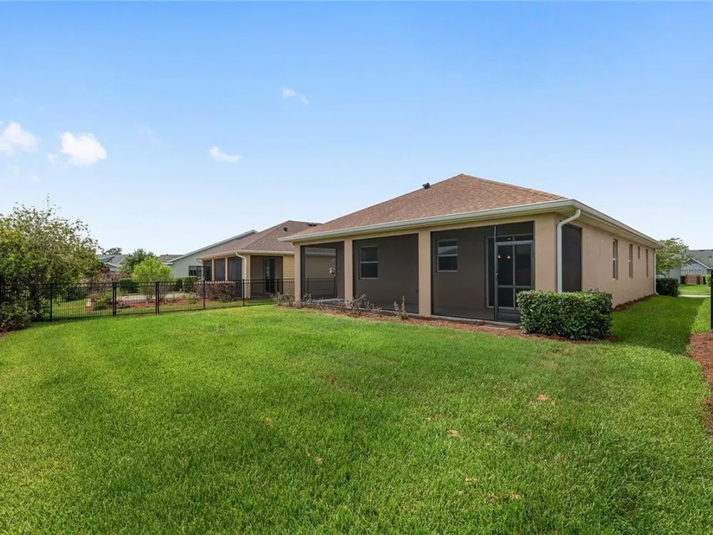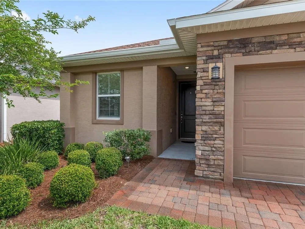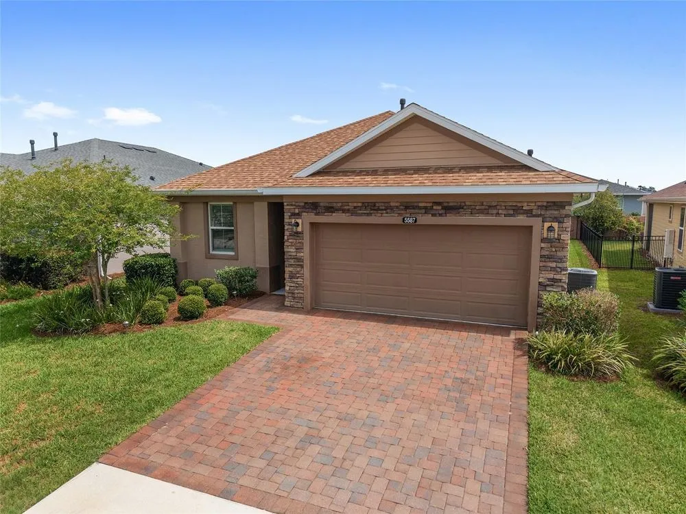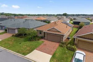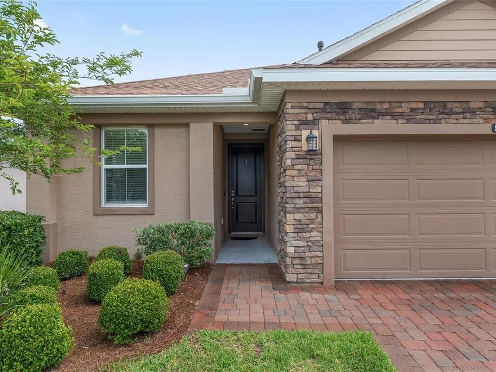 Welcome to this stunning 2-bedroom, 2-bathroom plus flex room home located in the gated, resort-style community of Ocala Preserve. Built in 2020 by Shea Homes, this beautifully maintained Rome model offers modern design, energy efficiency, and access to exceptional amenities. Curb appeal is immediate with a stone-accented front elevation and a sealed paver driveway and walkway. Inside, the open floor plan features plank-style ceramic tile flooring throughout the main living areas, providing a clean and elegant foundation for any décor. The thoughtfully designed kitchen showcases granite countertops, real wood cabinetry, a premium backsplash, stainless steel appliances, a pantry, and a breakfast bar island ideal for both everyday living and entertaining. The split-bedroom layout enhances privacy, and the primary suite includes a walk-in closet, linen closet, granite vanities, a glass-enclosed shower, and a private water closet. A spacious flex room serves perfectly as a home office, den, or guest space. The indoor laundry room offers additional cabinets, a utility sink, and comes complete with washer and dryer. Throughout the home, you’ll find ceiling fans, premium fixtures, and designer details that enhance everyday comfort. What truly sets this home apart is the fully paid-off solar panel system, delivering significant savings on monthly electric bills and long-term value. The system is already installed and operational, meaning the next homeowner can enjoy immediate energy efficiency and reduced utility costs—with no lease payments or extra fees. Step outside to the oversized screened-in lanai that runs the length of the home—a perfect spot to enjoy Florida’s weather in comfort and privacy. This is maintenance-free living at its finest. The HOA covers lawn care, landscape maintenance, irrigation, high-speed fiber-optic internet, and 24/7 gated security. The community offers a resort-like experience with access to miles of walking and biking trails, a golf course, dog parks, clubhouse, and The Salted Brick restaurant. Enjoy scenic walking trails, the Lakeside Veranda and Boardwalk, a resort-style spa and fitness center, tennis, pickleball, and bocce courts. Unwind in the resort-style pool or lap pool, and take advantage of the on-site restaurant and bar. Located minutes from the prestigious World Equestrian Center, this home provides the ultimate combination of comfort, convenience, and luxury. —schedule a tour today and experience it for yourself!