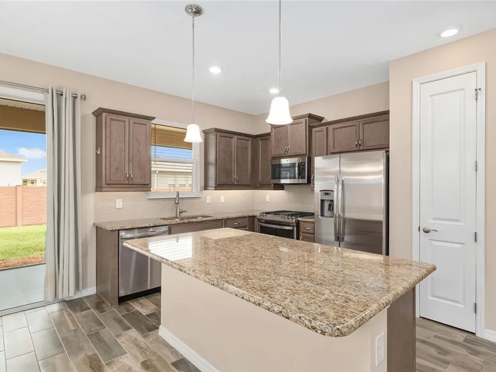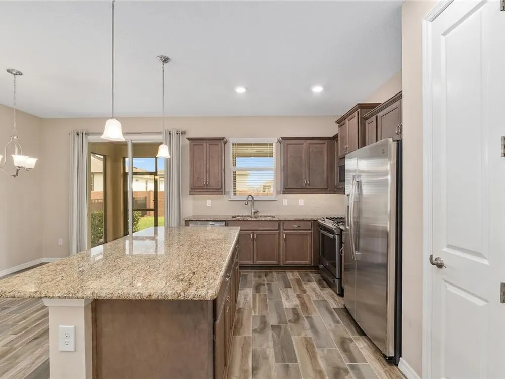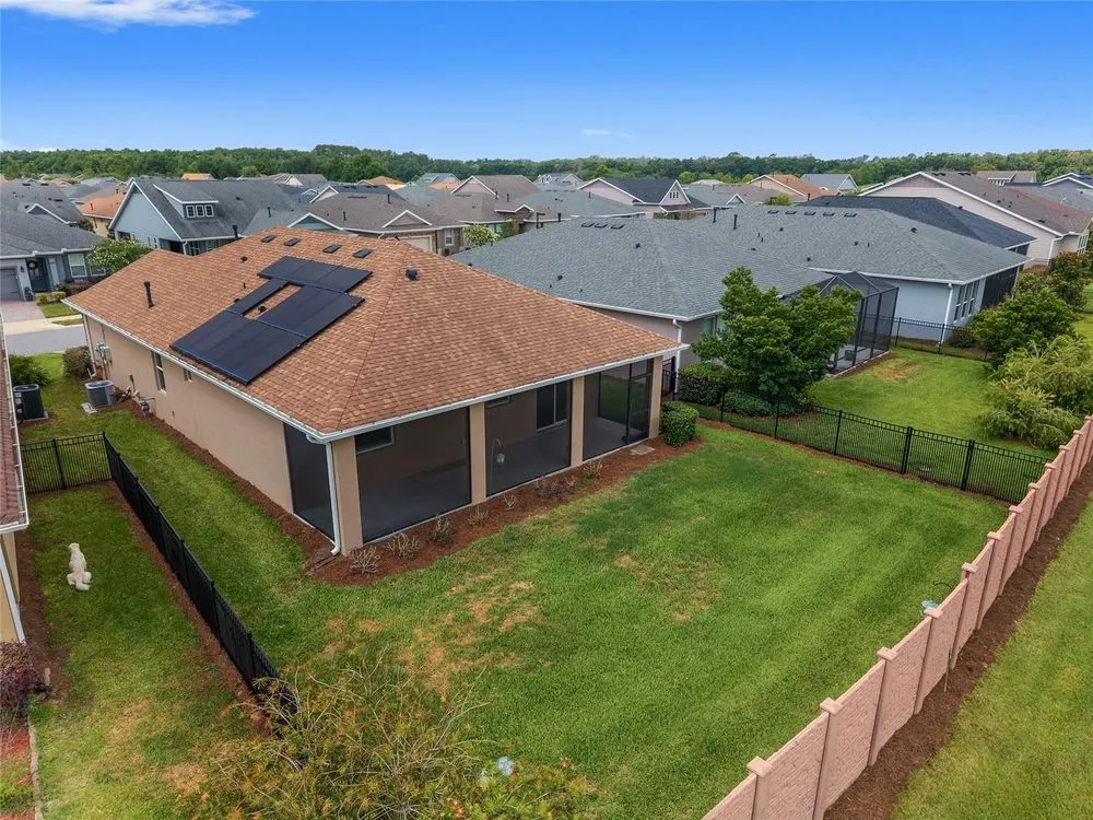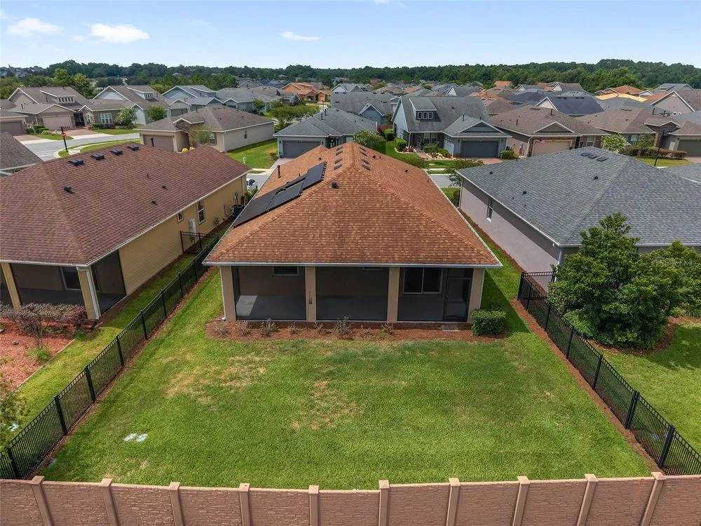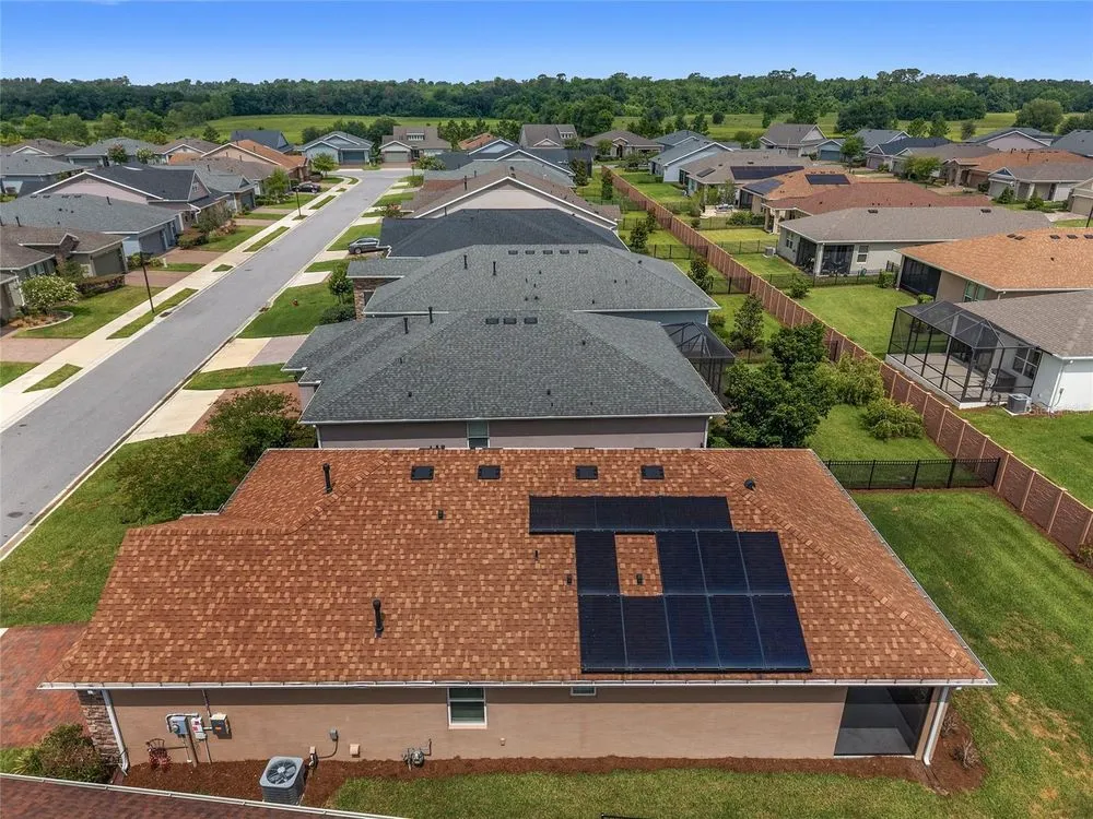Welcome to this stunning 2-bedroom, 2-bathroom plus flex room home located in the gated, resort-style community of Ocala Preserve. Built in 2020 by Shea Homes, this beautifully maintained Rome model offers modern design, energy efficiency, and access to exceptional amenities. Curb appeal is immediate with a stone-accented front elevation and a sealed paver driveway and walkway. Inside, the open floor plan features plank-style ceramic tile flooring throughout the main living areas, providing a clean and elegant foundation for any décor. The thoughtfully designed kitchen showcases granite countertops, real wood cabinetry, a premium backsplash, stainless steel appliances, a pantry, and a breakfast bar island ideal for both everyday living and entertaining. The split-bedroom layout enhances privacy, and the primary suite includes a walk-in closet, linen closet, granite vanities, a glass-enclosed shower, and a private water closet. A spacious flex room serves perfectly as a home office, den, or guest space. The indoor laundry room offers additional cabinets, a utility sink, and comes complete with washer and dryer. Throughout the home, you’ll find ceiling fans, premium fixtures, and designer details that enhance everyday comfort. What truly sets this home apart is the fully paid-off solar panel system, delivering significant savings on monthly electric bills and long-term value. The system is already installed and operational, meaning the next homeowner can enjoy immediate energy efficiency and reduced utility costs—with no lease payments or extra fees. Step outside to the oversized screened-in lanai that runs the length of the home—a perfect spot to enjoy Florida’s weather in comfort and privacy. This is maintenance-free living at its finest. The HOA covers lawn care, landscape maintenance, irrigation, high-speed fiber-optic internet, and 24/7 gated security. The community offers a resort-like experience with access to miles of walking and biking trails, a golf course, dog parks, clubhouse, and The Salted Brick restaurant. Enjoy scenic walking trails, the Lakeside Veranda and Boardwalk, a resort-style spa and fitness center, tennis, pickleball, and bocce courts. Unwind in the resort-style pool or lap pool, and take advantage of the on-site restaurant and bar. Located minutes from the prestigious World Equestrian Center, this home provides the ultimate combination of comfort, convenience, and luxury. —schedule a tour today and experience it for yourself!