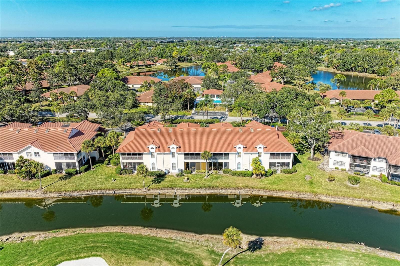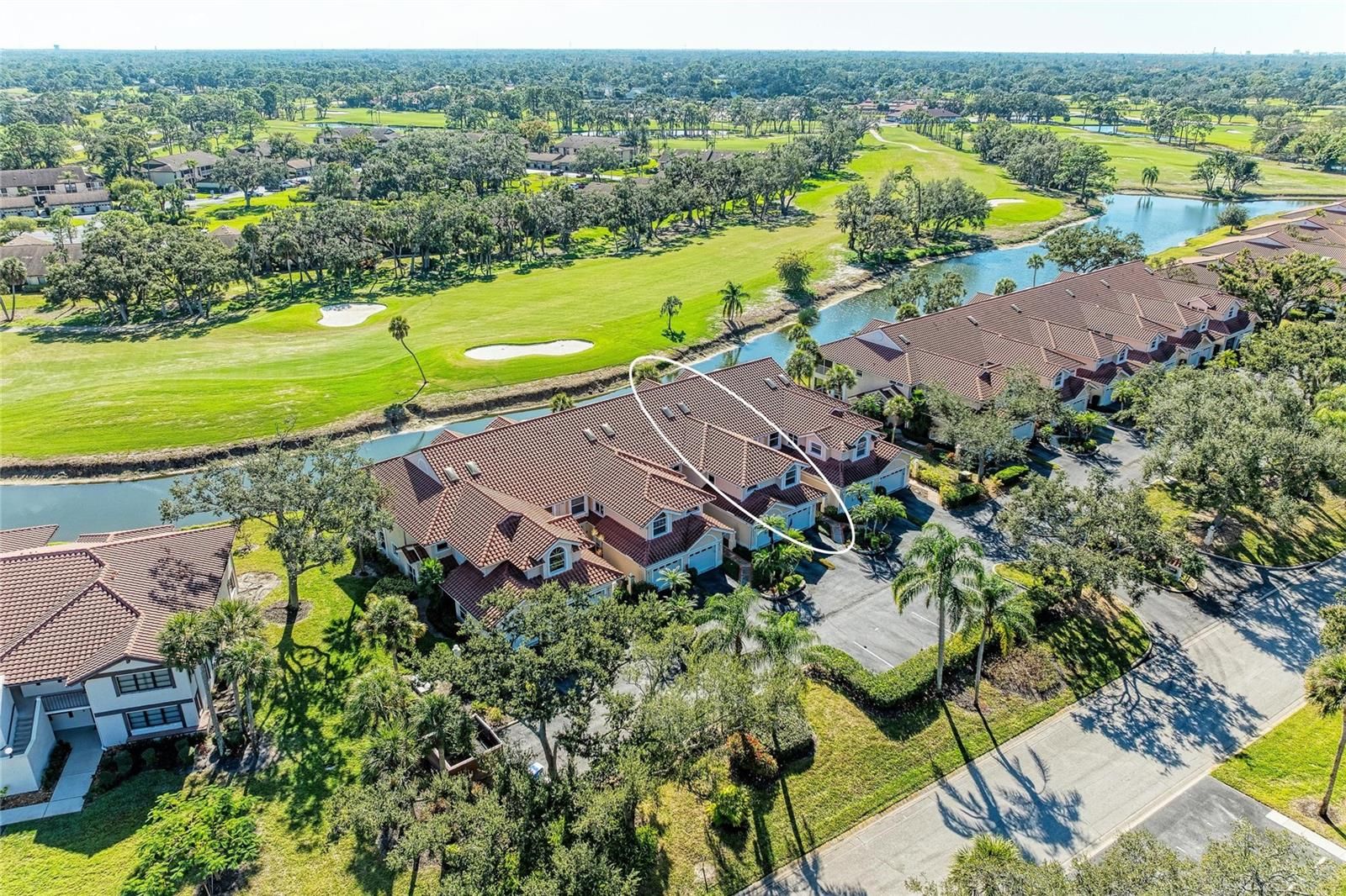 This showstopper CARRIAGE HOME is truly one of a kind, featuring stunning contemporary renovations and breathtaking views of the golf course and lake There is plenty of room with 3 updated Bedrooms and 3 updated bathrooms and large open living space. The condo boasts cathedral ceilings and skylights that fill the space with natural light. Elegant Porcelain tile floors flow throughout for easy cleaning. 3 bathrooms showcase custom tiles and designs. The gourmet kitchen includes gorgeous Quartz countertops, contemporary cabinets, and an island bar perfect for entertaining. 2 Ensuite Bedrooms with their own private bathrooms and walk-in closets offer private rooms for family or friends. A one-car garage with tons of Storage and custom built in attic storage adds convenience. The location is ideal, just minutes from shopping, restaurants, and some of the world's most beautiful beaches. Amenities include 2 community pools. A great way to meet your neighbors and friends and to join the parties. This Unique condo is a must-see! Golf and other Amenities are optional. Lots to choose from. Live your best life !!!