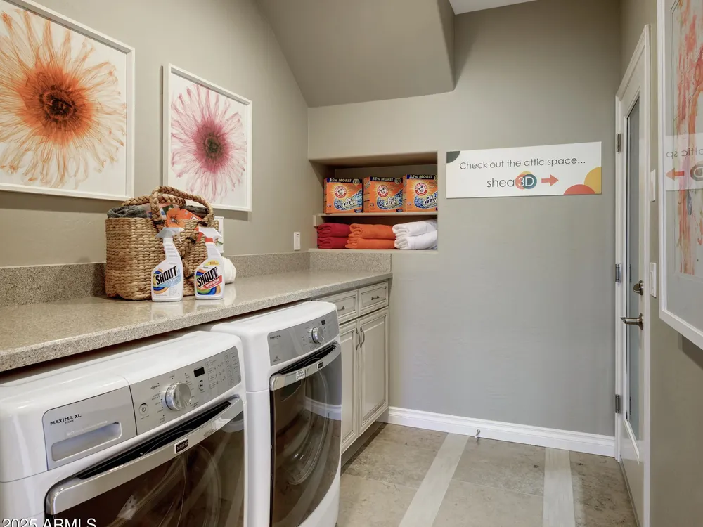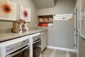 This Refresh floorplan creates the perfect indoor and outdoor space. The expansive kitchen with its large center island is a chef's dream, providing ample space for culinary creations and gatherings. The thoughtful addition of a ''smart space'' housing laundry facilities and cabinetry further enhances the convenience and functionality of daily living. Both bathrooms have been upgraded with tile surrounds and beautiful light fixtures. Additional features include shutters, a carpet-free environment and gorgeous views of the golf course. Start living the Good Life at Encanterra today!