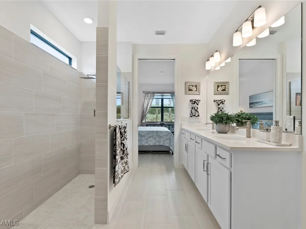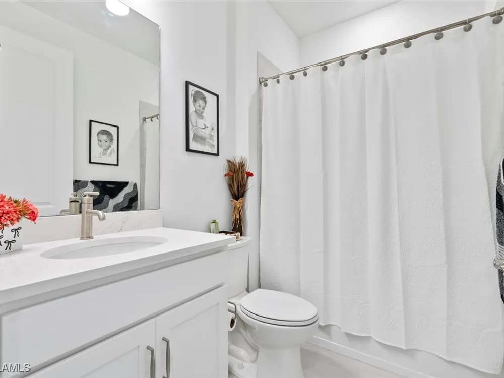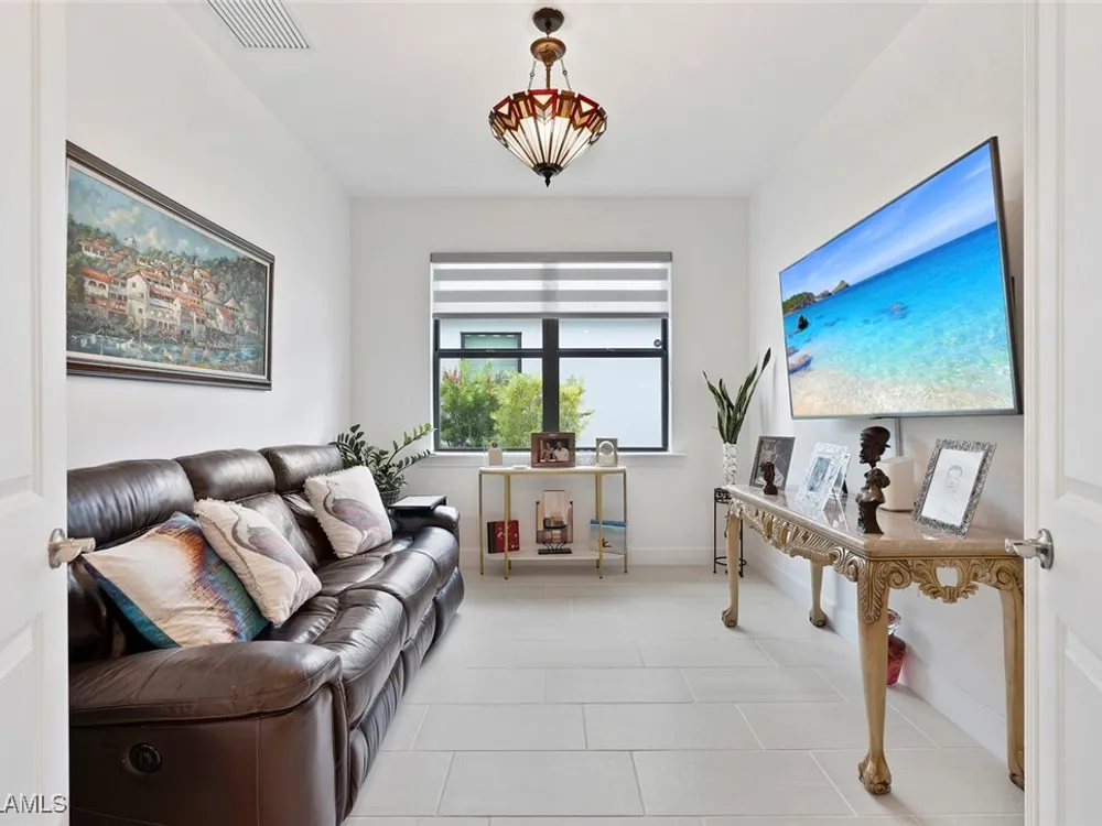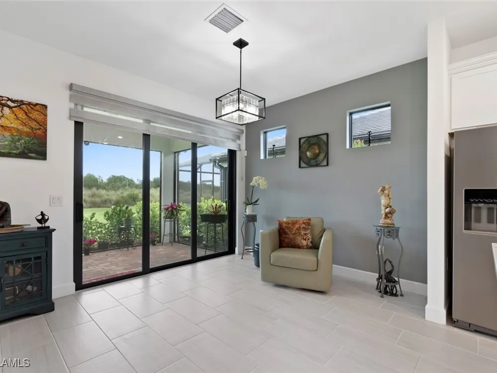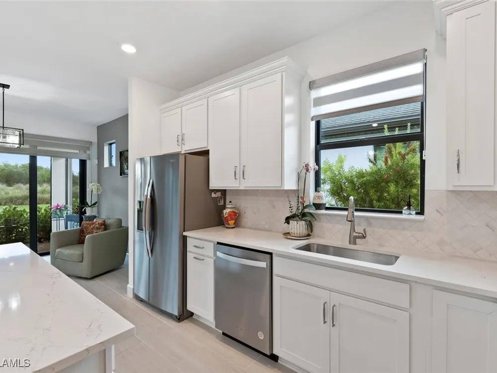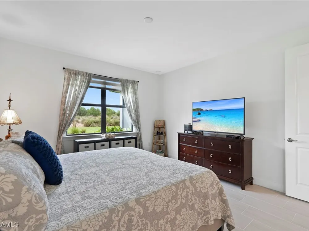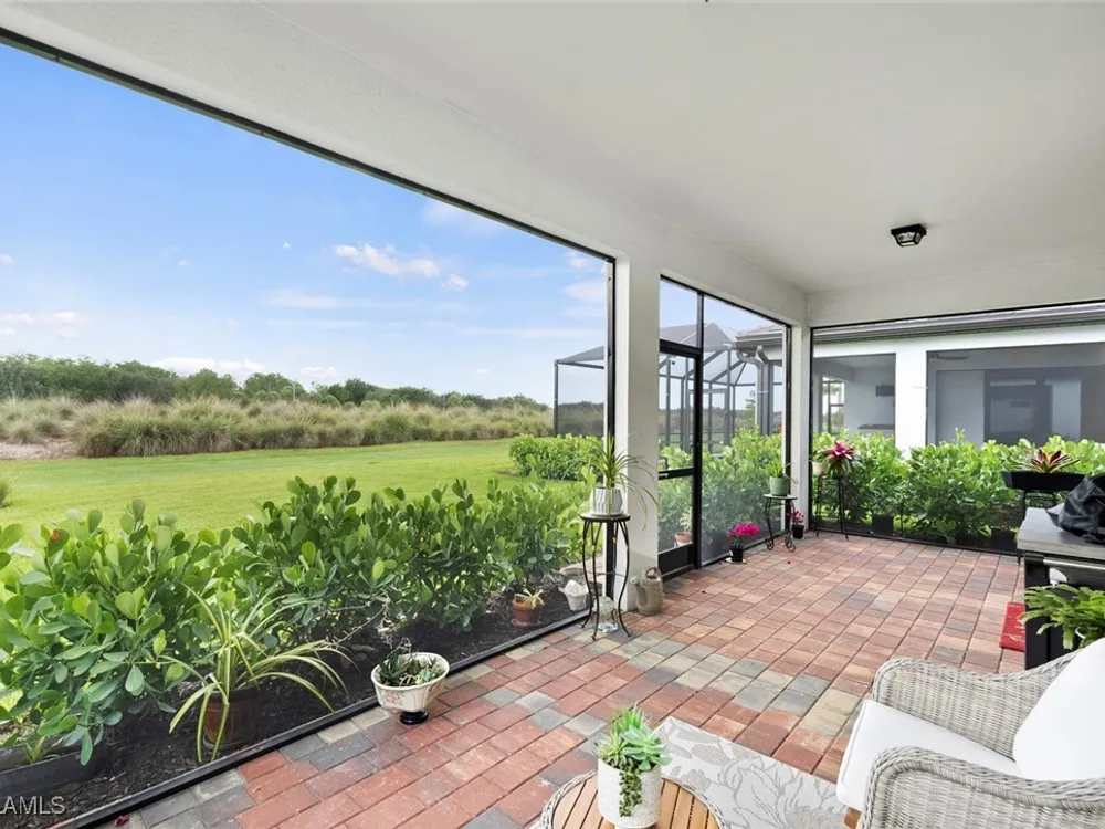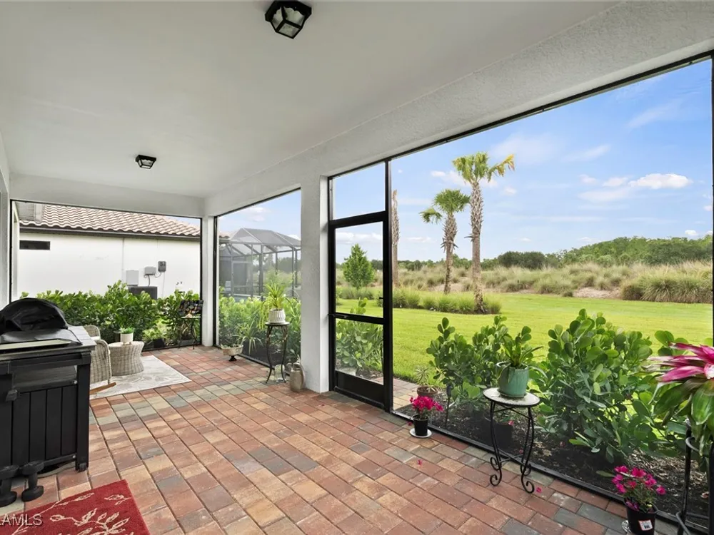 BETTER THAN NEW! This barely lived-in home has upgrades you won’t find in new construction. Enjoy a serene private view from the comfort of your EXTENDED LANAI. This house is located in the highly sought-after 55+ Del Webb Naples community, featuring the popular PROSPERITY floor plan with 2 bedrooms, 2 full baths and den. Upgrades include accent walls and CUSTOM WINDOW TREATMENTS on all the windows. The PRIMARY SUITE features a bathroom equipped with double sinks, and a large shower enclosure. A versatile DEN provides ample space for visitors, a home office, or personal hobbies. The laundry room offers AMPLE STORAGE with cabinets, extra shelving, a stationary tub, and a washer/dryer. Ceiling fans and CUSTOM LIGHTING enhance the home’s inviting atmosphere. The GARAGE includes epoxy finished floor. You will have a NEW CONSTRUCTION WARRANTY included. Golf enthusiasts will be thrilled to know there are AVAILABLE GOLF MEMBERSHIPS at the Panther Run Golf Club, offering an exceptional golfing experience. Experience the Del Webb Active Adult lifestyle with access to a range of amenities, including the Rusty Putter Restaurant, a RESORT-STYLE pool, lap pool, fitness center, PICKLEBALL, bocce and tennis courts, a GOLF SIMULATOR, and billiards. Explore Del Webb Naples and Ave Maria effortlessly in your golf cart, whether you're heading to Publix, church, or out for a delightful dinner. Embrace the lifestyle you deserve in this extraordinary home, where comfort, luxury, and convenience seamlessly come together.