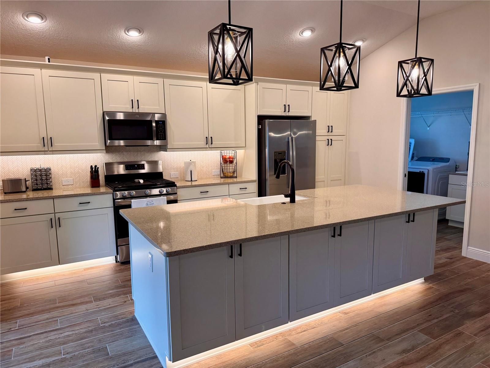 Welcome to 5596 Matanzas Loop, where thoughtful design, spacious living, and modern style create a home that immediately feels comfortable and inviting. This beautifully designed INDIGO model offers THREE BEDROOMS and THREE BATHS with an open layout that feels bright, expansive, and perfect for both everyday living and entertaining.The heart of the home is the impressive gourmet kitchen featuring an oversized island, GORGEOUS QUARTZ countertops, abundant cabinetry that extends almost to the ceiling, stainless appliances, stylish PENDANT lighting, and ACCENT lighting that adds a touch of elegance. The large island creates the perfect gathering space while the open design allows the kitchen to flow effortlessly into the dining and living areas, making the home feel both connected and welcoming.Just beyond the main living area, sliding doors open to a spacious screened lanai designed for relaxing and enjoying Florida’s beautiful weather year-round. With plenty of room for both dining and lounging, this outdoor living space quickly becomes a favorite spot for morning coffee, evening gatherings, or simply enjoying the peaceful surroundings.The primary suite offers a private retreat with a spa-inspired bathroom featuring DUAL SINKS, a beautifully tiled WALK_IN SHOWER, and generous space that makes everyday living feel comfortable and refined. Two additional bedrooms and baths provide flexibility for guests, hobbies, or a home office.One of the standout features of this home is the oversized indoor laundry room with extensive cabinetry and counter space, providing both convenience and storage rarely found in homes of this size.From the stylish finishes to the open design and inviting outdoor living space, this Indigo model offers the perfect balance of comfort, functionality, and modern Florida living.Homes with this combination of space, design, and modern features are exactly what today’s buyers are searching for in The Villages. If you’ve been waiting for a home that feels open, comfortable, and move-in ready from the moment you walk in, this one is worth experiencing.