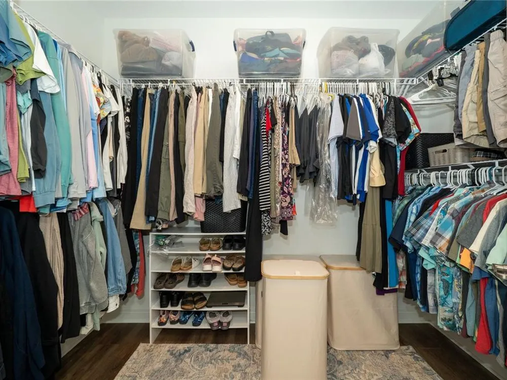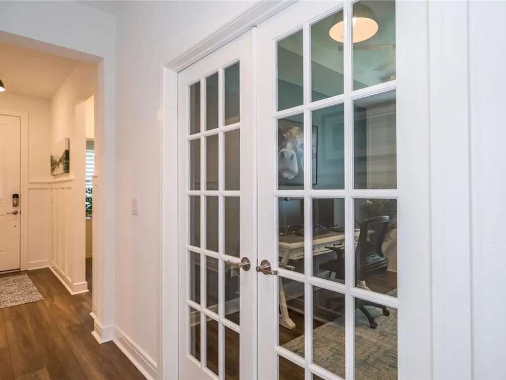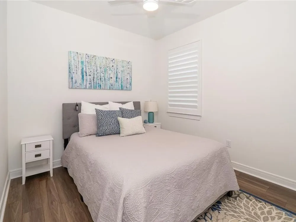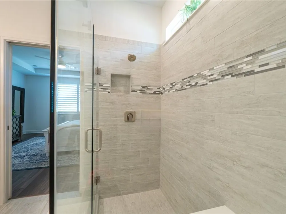 - Ceiling Fan(s), In-Wall Pest Control, Open Floorplan, Main Level Primary, Solid-Wood Cabinets, Split Bedrooms, Stone Counters, Tray Ceiling(s), Walk-In Closet(s), Window Treatments