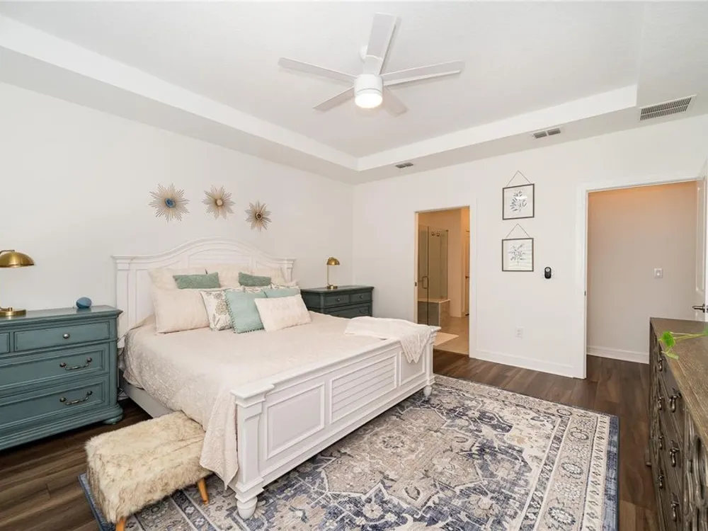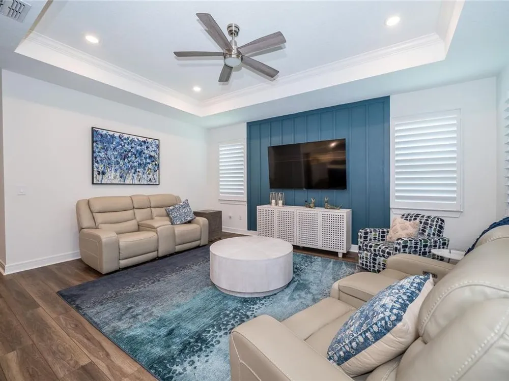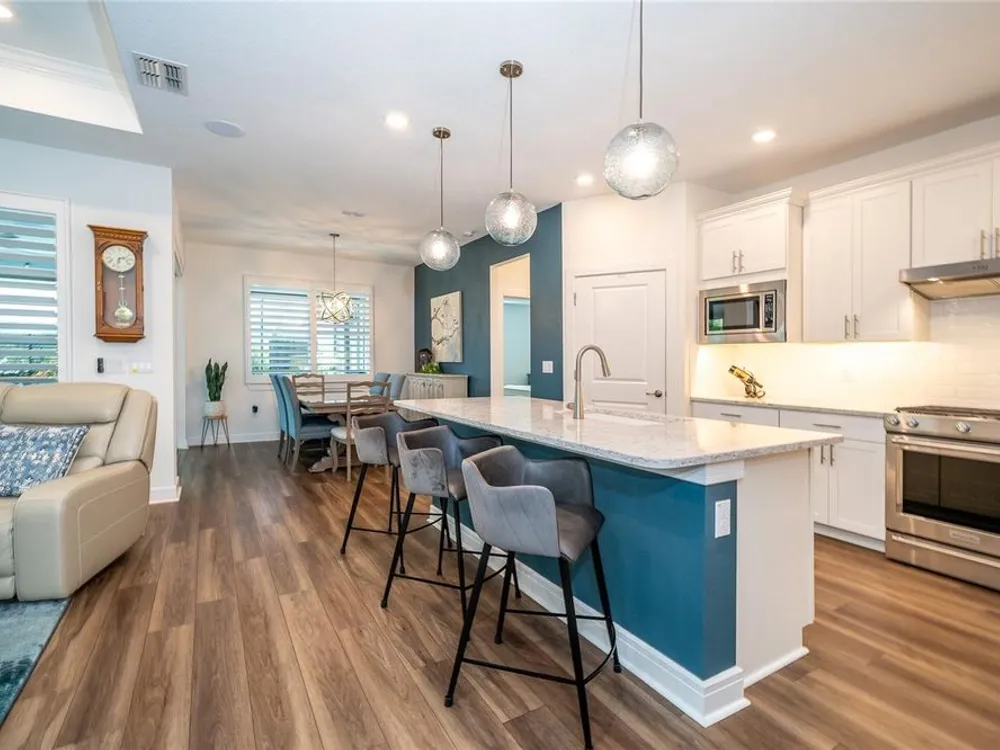 Back on the market! This EXTRAORDINARY HOME is the one that checks all the boxes that you've been waiting for! You cannot beat the Beautiful Gated Del Webb Bexley (Active over 55) Community in the Lovely Tampa Bay area where AMAZING AMENITIES and LAWN CARE are INCLUDED! As you pull into the Brick Paver driveway, you’ll immediately be struck by the Colorful, Expertly Designed Landscaping with a Charming Rock Border—Truly A STANDOUT in the Entire Neighborhood. The Inviting FRONT PORCH and Distinctive Glass Front Storm Door set the tone for the UNIQUE STYLE and THOUGHTFUL UPGRADES you’ll find throughout this home. This ever-popular expanded Mystique floorplan offers 2,098 square feet of beautifully designed living space with 3 Full Bedrooms, 3 Full Bathrooms, and a Versatile Flex Room behind elegant FRENCH DOORS—Perfect for a Home Office, Den, or Craft space. Inside, you'll find TRAY CEILINGS, 5 ¼ baseboards, Stunning WOODWORKING ACCENTS and LUXURY VINYL flooring throughout all Living areas and Bedrooms, paired with Upgraded Tile in the Baths and Laundry Room. PLANTATION SHUTTERS add timeless elegance to every window, while QUARTZ COUNTERTOPS shine in the Kitchen and all Bathrooms. The  kitchen is a showstopper, complete with 42 inch Wood Cabinets, SUBWAY TILE Backsplash, Pull out shelving, Under-Cabinet Lighting, Breakfast Bar, Granite Sink, UPGRADED APPLIANCES, a Walk-in Pantry with Wood Shelving and MINI FRIDGE and Cooling System, and a Water Heater under the sink for Instant Hot Water. A WHOLE-HOME WATER FILTER, Water Softener, Home Generator, HVAC UV light, and an Electronic Soft-Starter enhance COMFORT, EFFICIENCY, and PEACE OF MIND. Step outside to your ultra-private, extended screened lanai—an entertainer’s dream with both (Alexa-enabled) EXTERIOR LIGHTING and Circulating/Cooling Fans, and plenty of space for RELAXING or HOSTING FRIENDS. There's even Sprinkler Piping for Lanai and front yard plant beds to keep your landscaping looking its best year-round. Additional highlights include a Well-Equipped Laundry Room with Upper and Lower Cabinets and a Sink, Quartz Counter, plus a Garage featuring an Insulated Door, Storage Shelving, Ceiling Racks, and a Manual Back-Up Generator Power Transfer Switch. And yes—the entire home is protected with WHOLE-HOUSE SURGE PROTECTION. If you enjoy staying Active INCREDIBLE AMENITIES include a Resort-Style Pool with lap lanes, Resistance Pool, Hot Tub, and Cabanas, Expansive 19,000 sq. ft. clubhouse, Multipurpose Room and Arts and Crafts Room, Beer and Wine Bar, Cafe/Bistro/, Outdoor Fireplace, Lounge, 2 Tennis Courts, 6 Pickle ball Courts, 4 Bocce Ball Courts, Fitness Center, Movement Studio, Community Garden, Dog Park, and many Resident Clubs and Interest Groups! Conveniently located just minutes away from shopping, restaurants, top-tier medical facilities and FL-54 & FL-589 Del Webb Bexley is less than 30 minutes to TAMPA INTERNATIONAL AIRPORT and DOWNTOWN TAMPA. Experience the best of Florida living where your dream home awaits at Del Webb Bexley—where each day is a delightful escape. Don’t miss your chance to own this beautifully upgraded home in one of the most sought-after 55+ communities in the Tampa Bay area. Schedule your private tour today!