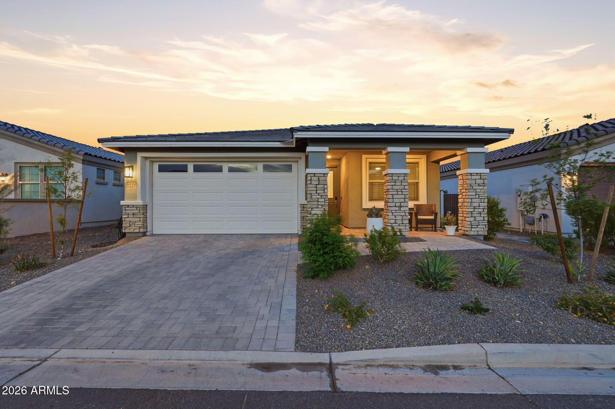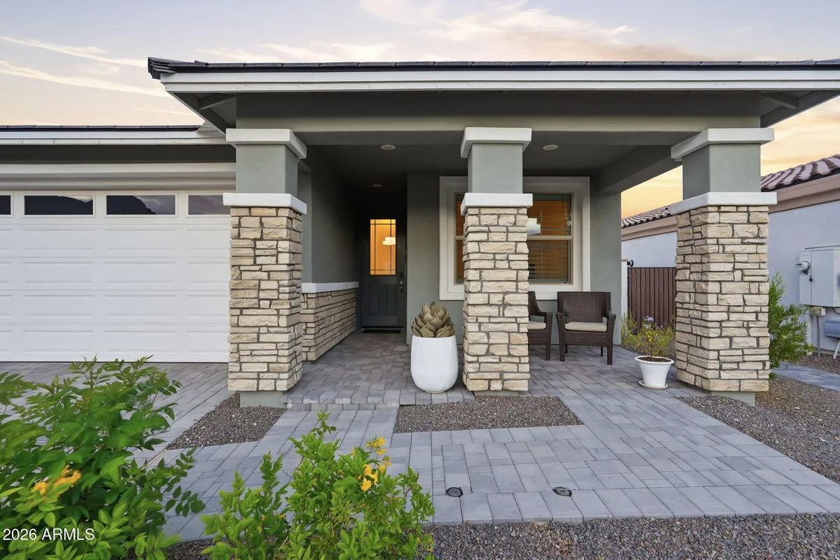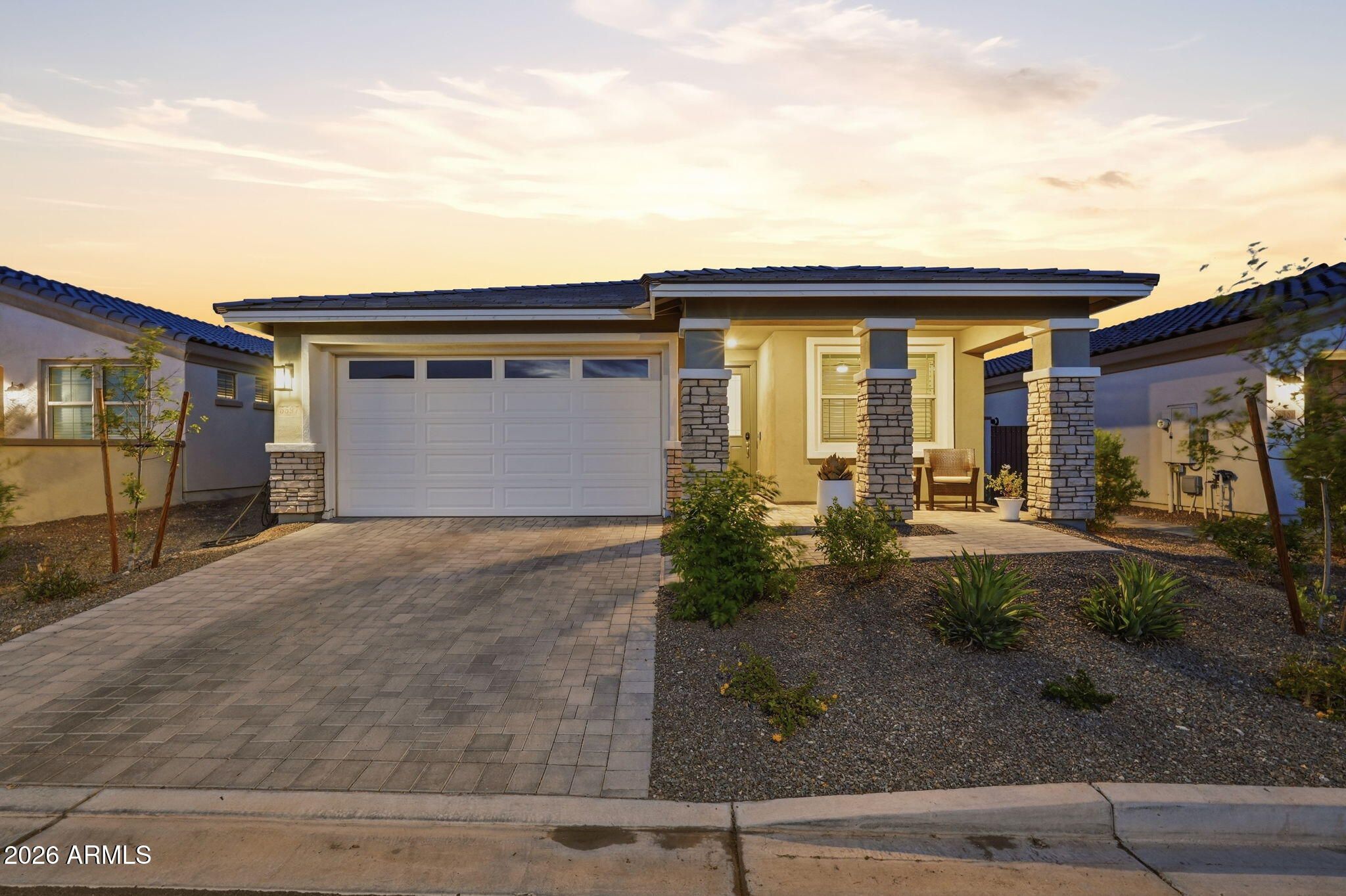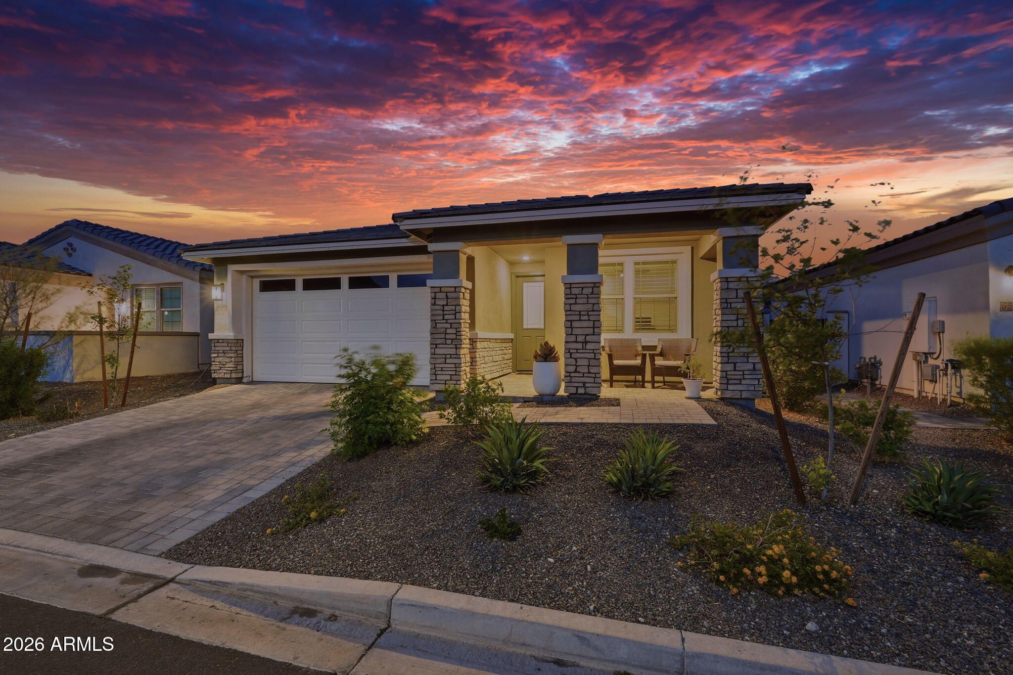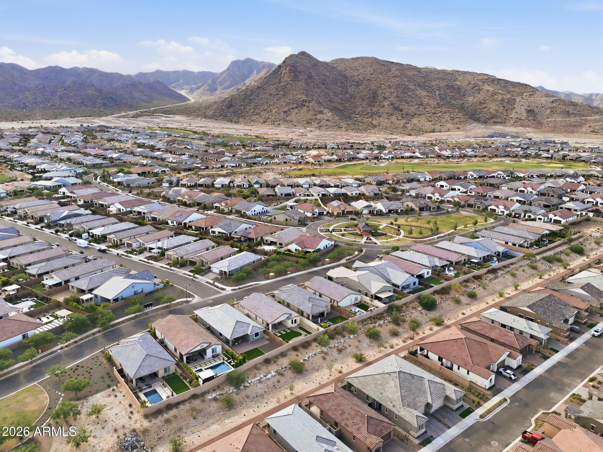 Welcome to this stunning upgraded Sawgrass floorplan by William Ryan Homes, nestled in the highly sought-after 55+ Victory at Verrado community! White Tank Mountain views! This 2-bedroom plus den residence features an open great room layout accented by elegant plantation shutters. The gourmet kitchen is a chef's dream, boasting shaker cabinetry, a gas cooktop, wall ovens, a butler's pantry & a large island. The private master retreat offers a dual-sink vanity & an oversized tiled shower with bench seating. Guests will appreciate the spacious 2nd bedroom with a walk-in closet & en-suite bath. Outside, sliding doors lead to a covered patio & a landscaped backyard with no rear neighbors!!! Complete with a large laundry room and a 2-car garage, this home is the ultimate desert sanctuary