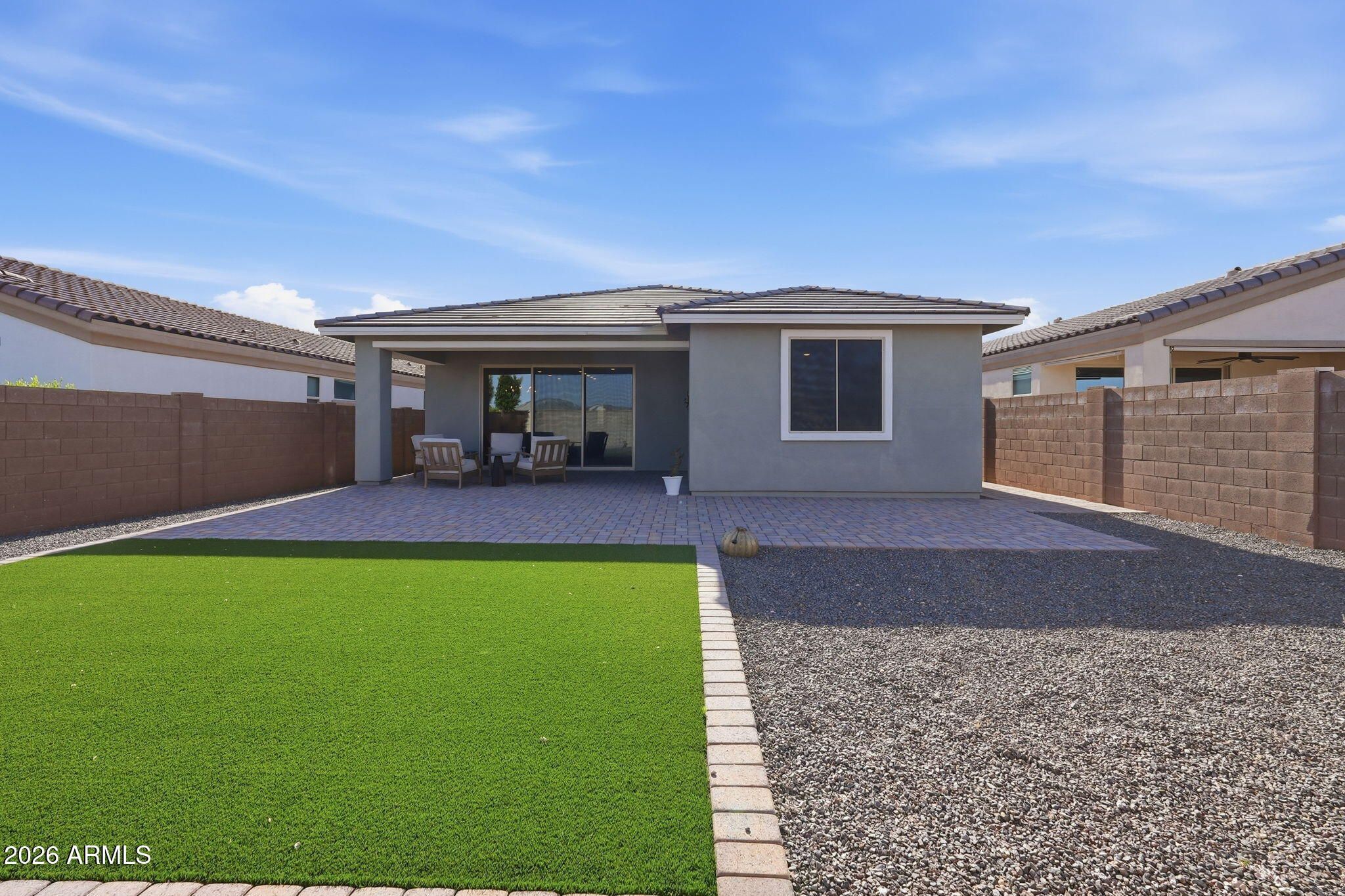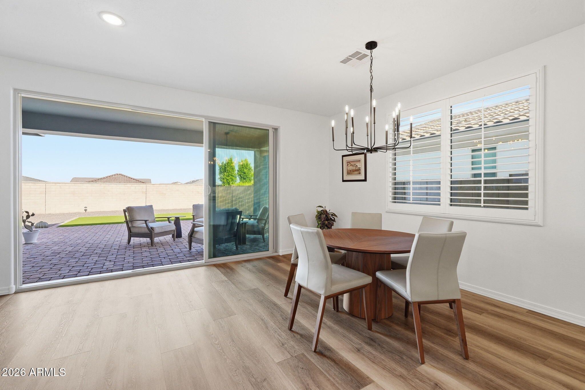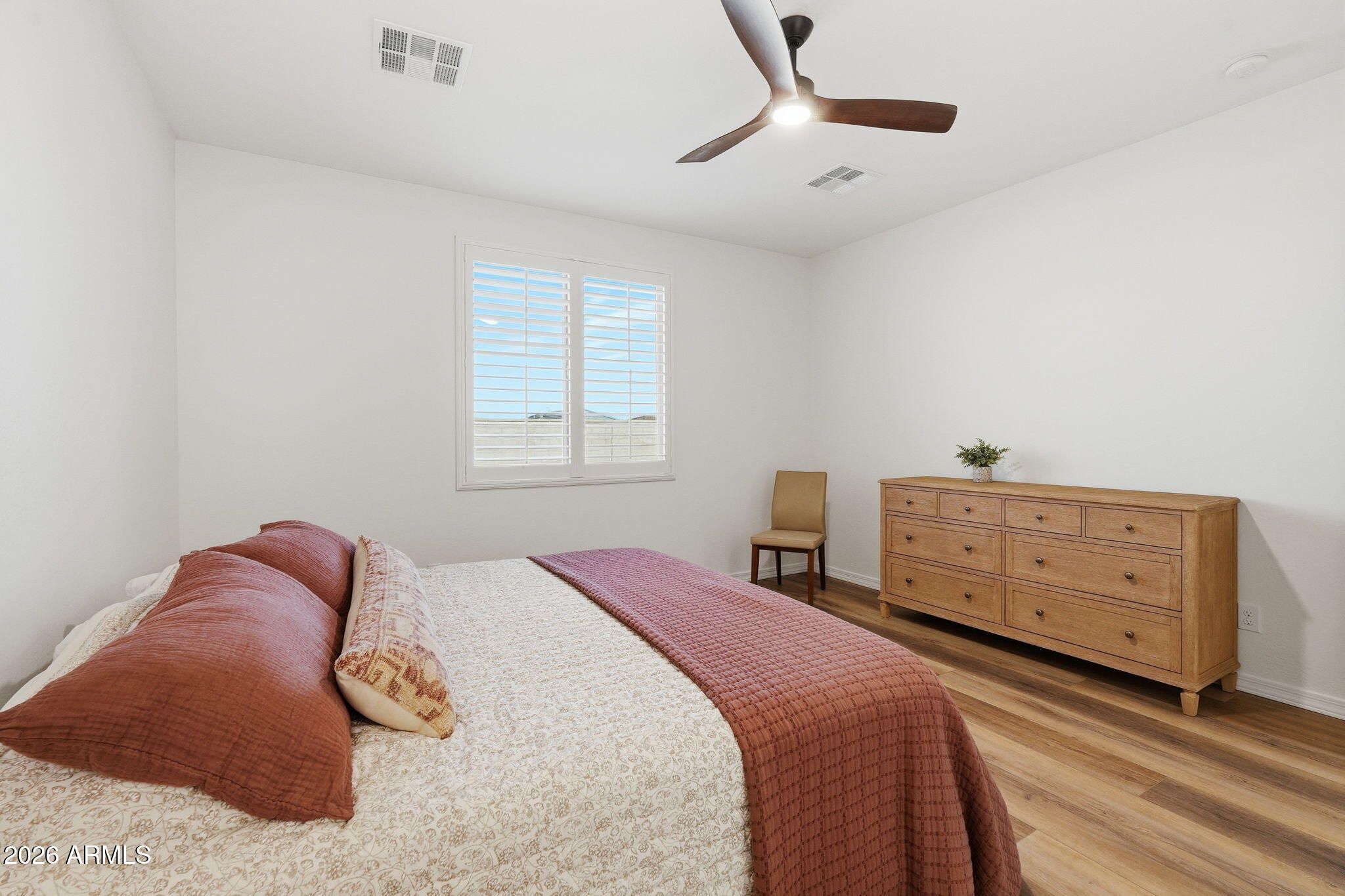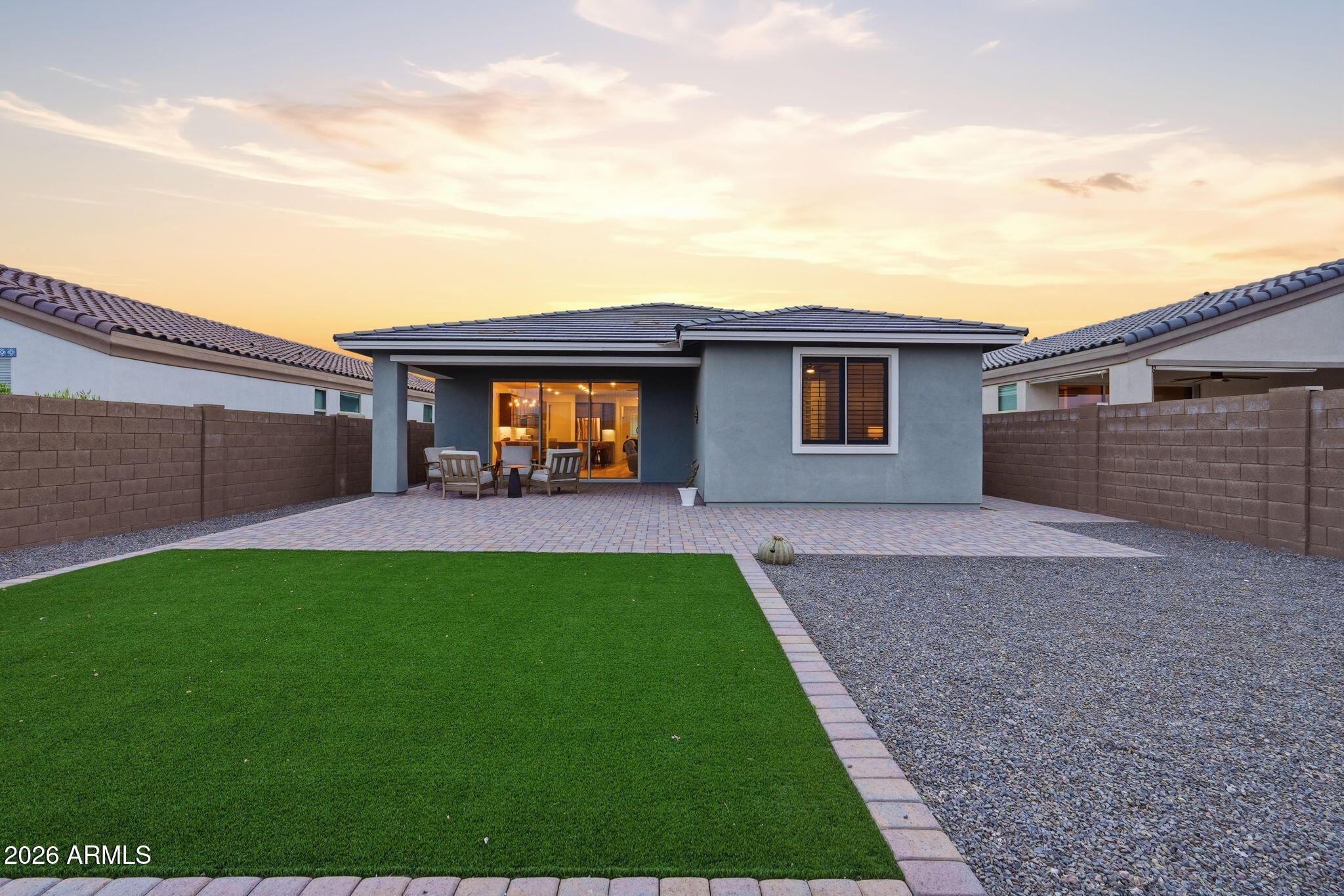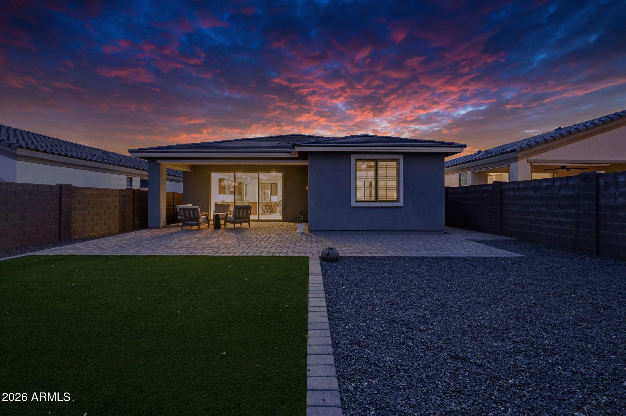 Welcome to this stunning upgraded Sawgrass floorplan by William Ryan Homes, nestled in the highly sought-after 55+ Victory at Verrado community! White Tank Mountain views! This 2-bedroom plus den residence features an open great room layout accented by elegant plantation shutters. The gourmet kitchen is a chef's dream, boasting shaker cabinetry, a gas cooktop, wall ovens, a butler's pantry & a large island. The private master retreat offers a dual-sink vanity & an oversized tiled shower with bench seating. Guests will appreciate the spacious 2nd bedroom with a walk-in closet & en-suite bath. Outside, sliding doors lead to a covered patio & a landscaped backyard with no rear neighbors!!! Complete with a large laundry room and a 2-car garage, this home is the ultimate desert sanctuary