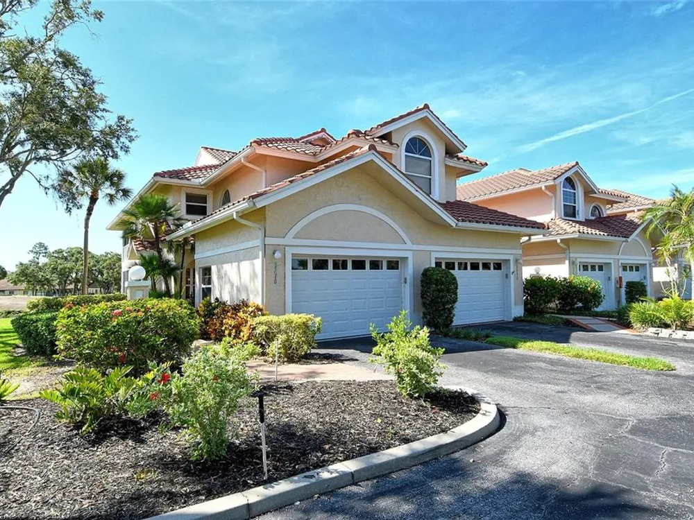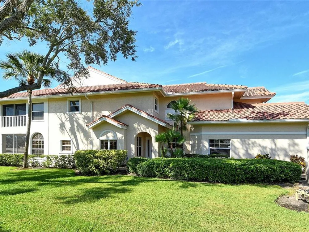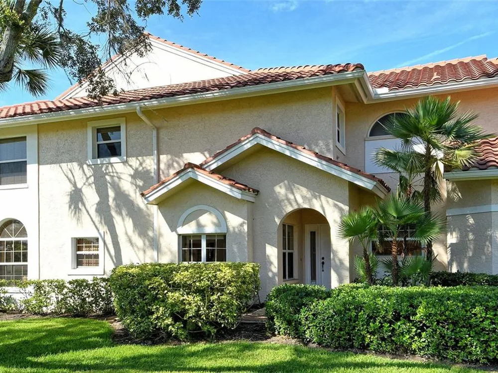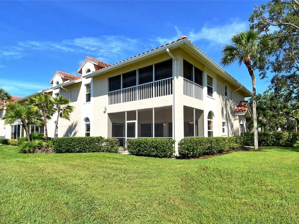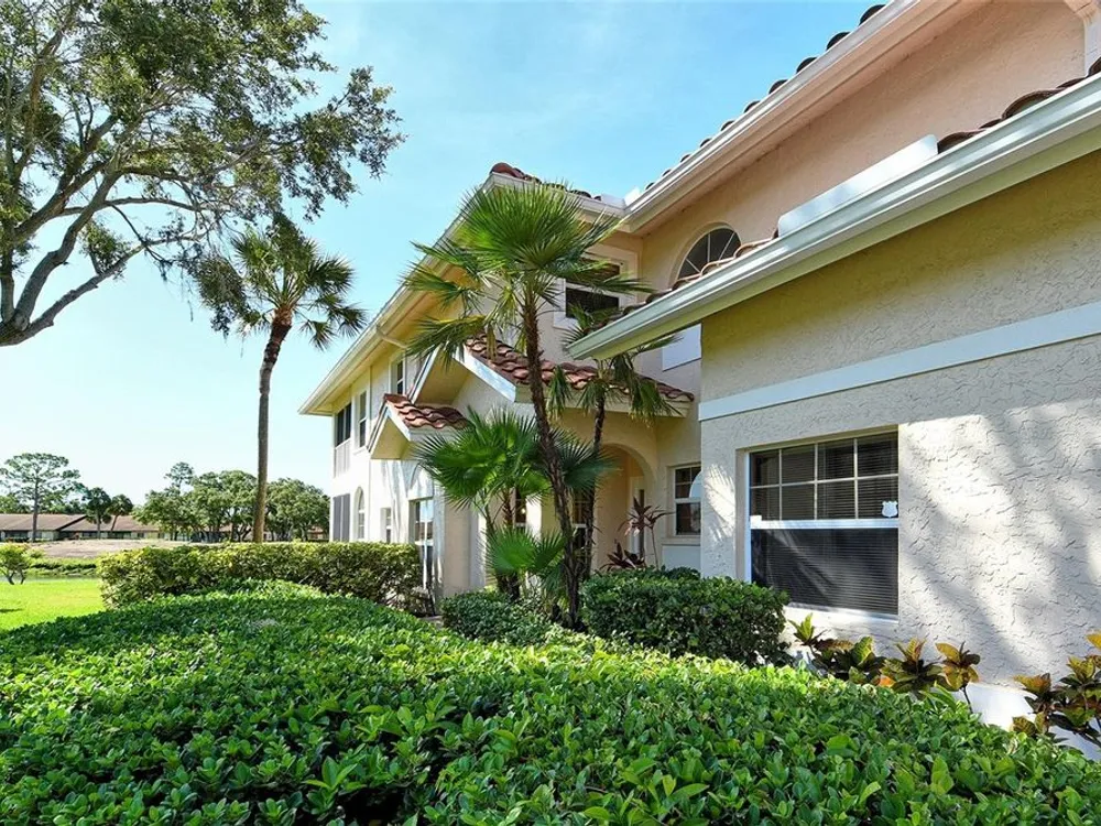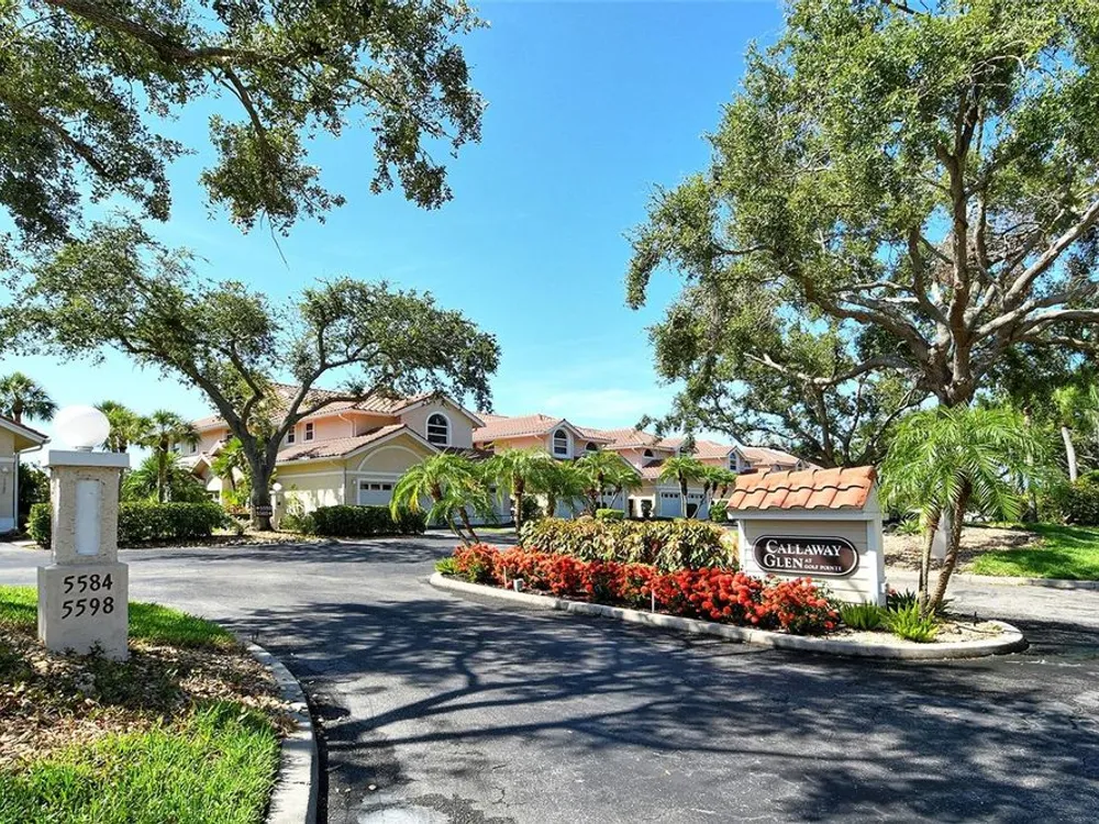WELCOME HOME to your 2-bedroom, 2-bathroom condominium located in the park-like setting in the Callaway Glen community in the Golf Pointe neighborhood at Palm-Aire. Panoramic views of the 15th Hole of Palm Aire golf course and water views. Situated on corner unit provides bright and open views of nature and marvelous landscaping of the golf and dining area combination, creating an inviting atmosphere for both relaxation and entertaining. The generous screened porch showcases picturesque golf and lagoon vistas, providing a peaceful backdrop to enjoy for your morning coffee or evening unwinding. The galley kitchen features warm cabinetry, and granite countertops. One oversized garage. In-unit laundry room. Turnkey furnished and New AC in 2023. Reflex in your family room. The second bedroom can double as an office or a den. Plenty of storage throughout. Palm Aire Golf & Country Club residents enjoy access to the clubhouse, heated swimming pool, 36-hole championship golf course, fitness center, tennis and pickleball courts, as well as numerous social clubs and activities. This prime location puts you moments away from University Town Center (UTC), Benderson Park, SRQ Airport, and a diverse array of dining and shopping destinations. No CDD fees and optional golf membership.