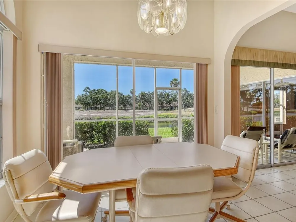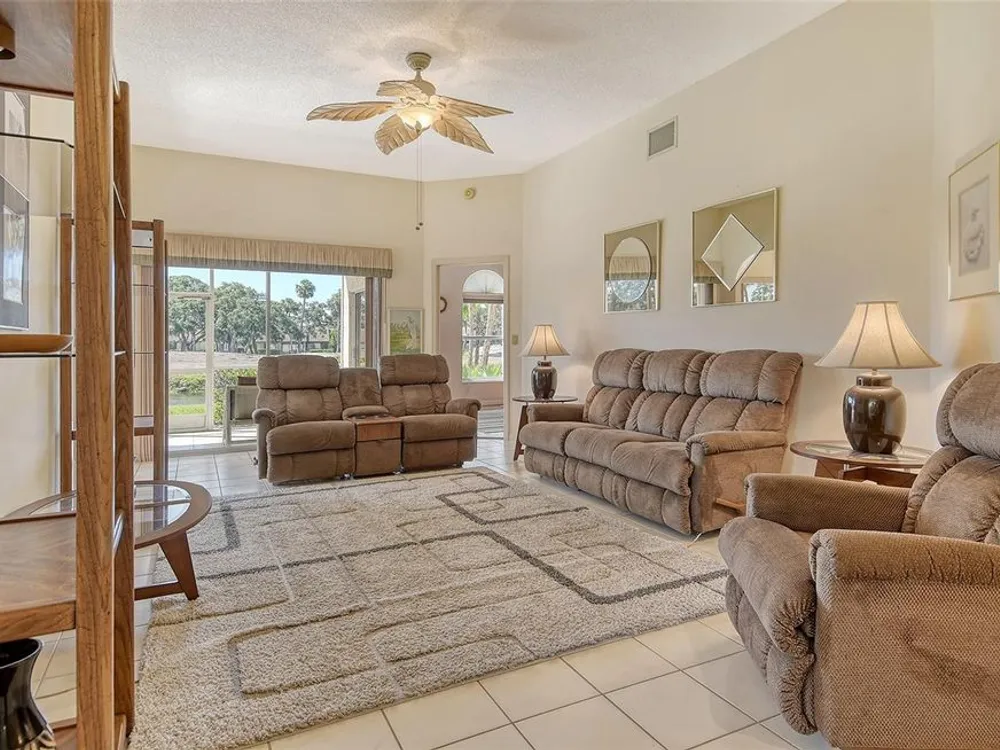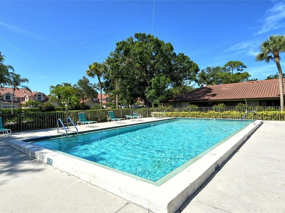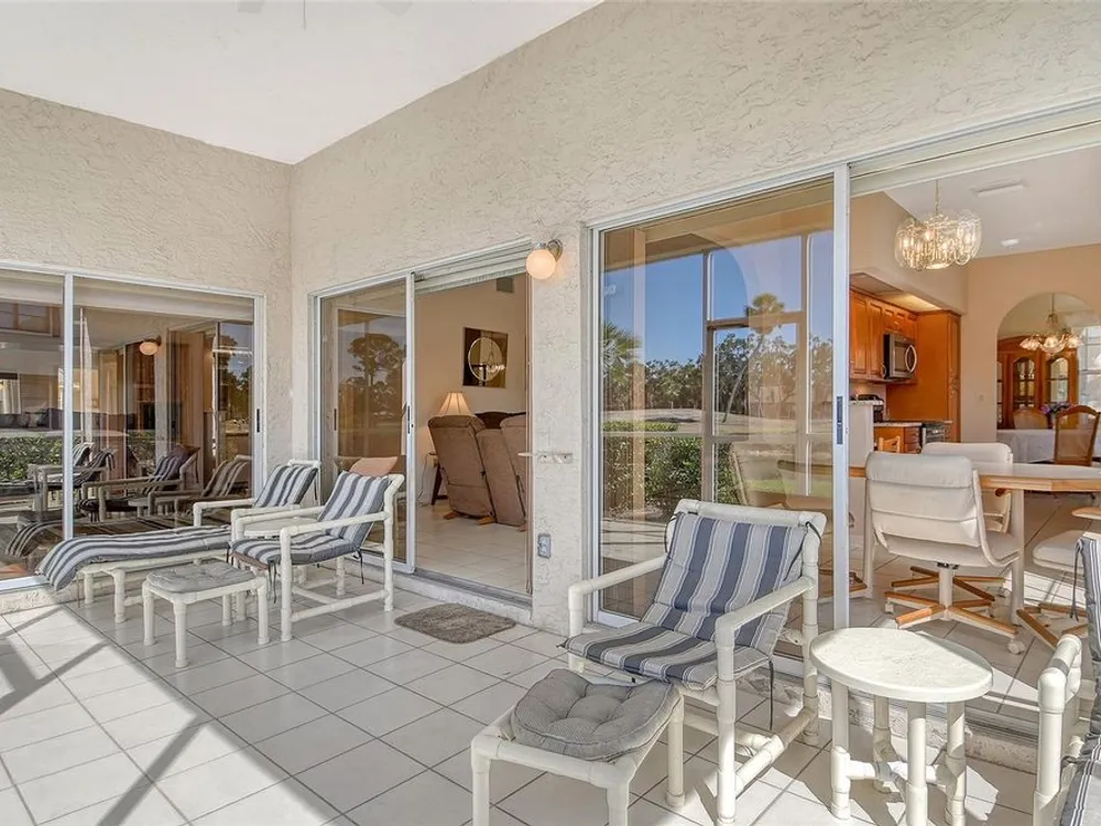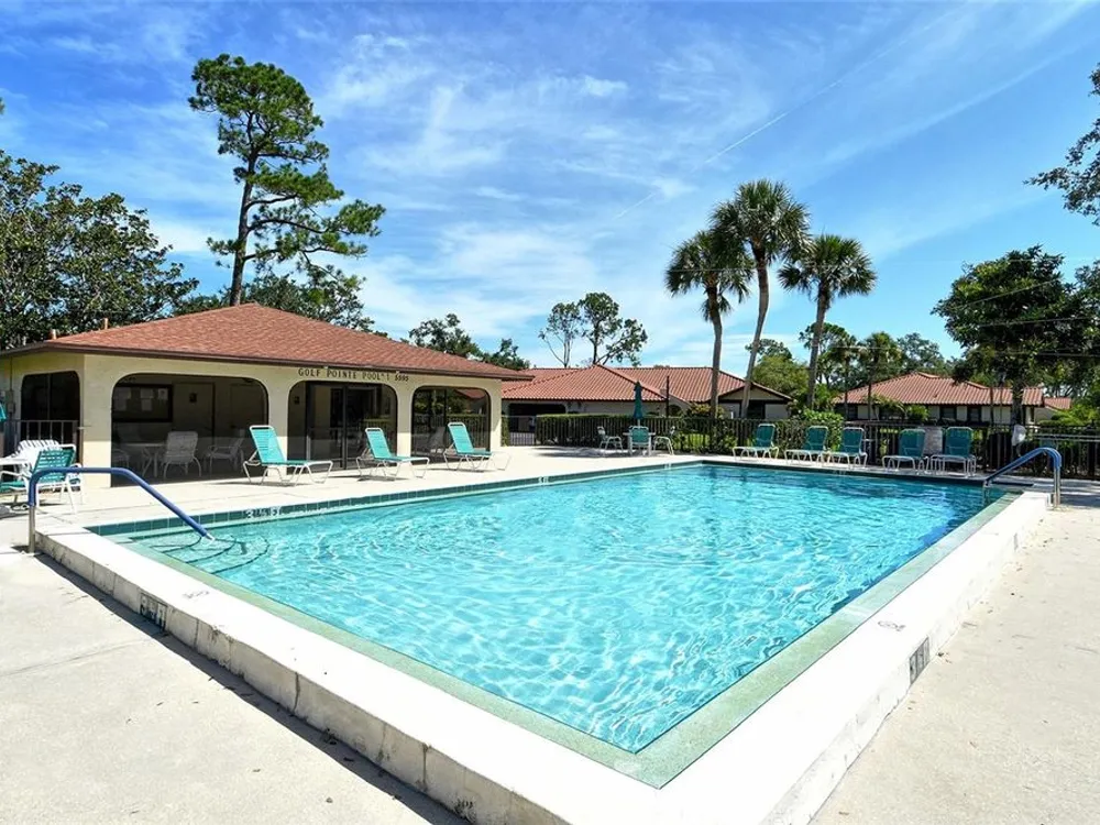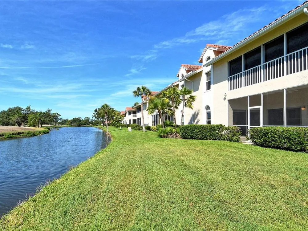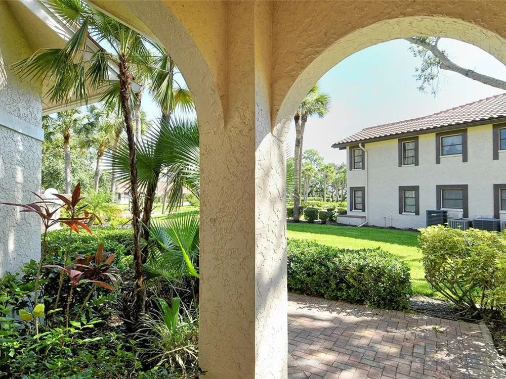 WELCOME HOME to your 2-bedroom, 2-bathroom condominium located in the park-like setting in the Callaway Glen community in the Golf Pointe neighborhood at Palm-Aire. Panoramic views of the 15th Hole of Palm Aire golf course and water views. Situated on corner unit provides bright and open views of nature and marvelous landscaping of the golf and dining area combination, creating an inviting atmosphere for both relaxation and entertaining. The generous screened porch showcases picturesque golf and lagoon vistas, providing a peaceful backdrop to enjoy for your morning coffee or evening unwinding. The galley kitchen features warm cabinetry, and granite countertops. One oversized garage. In-unit laundry room. Turnkey furnished and New AC in 2023. Reflex in your family room. The second bedroom can double as an office or a den. Plenty of storage throughout. Palm Aire Golf & Country Club residents enjoy access to the clubhouse, heated swimming pool, 36-hole championship golf course, fitness center, tennis and pickleball courts, as well as numerous social clubs and activities. This prime location puts you moments away from University Town Center (UTC), Benderson Park, SRQ Airport, and a diverse array of dining and shopping destinations. No CDD fees and optional golf membership.