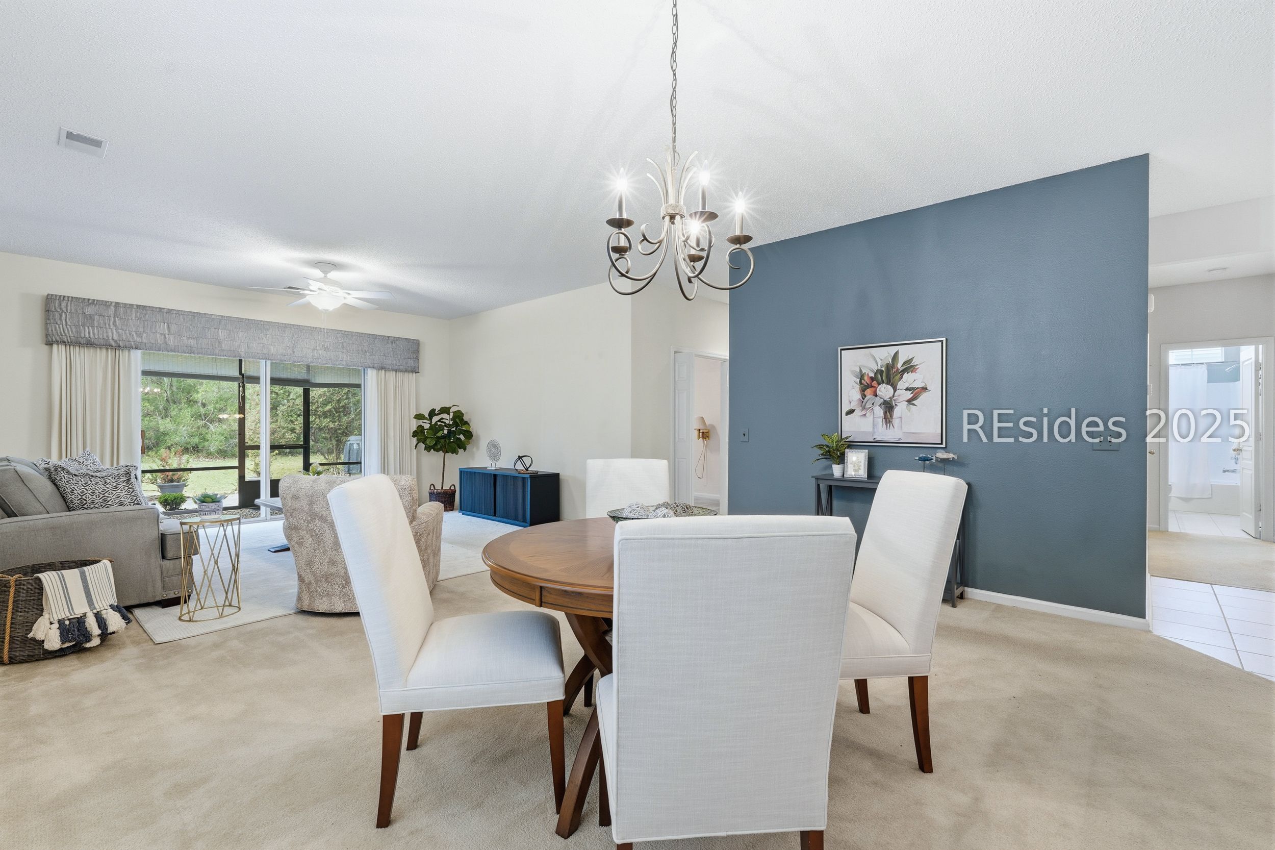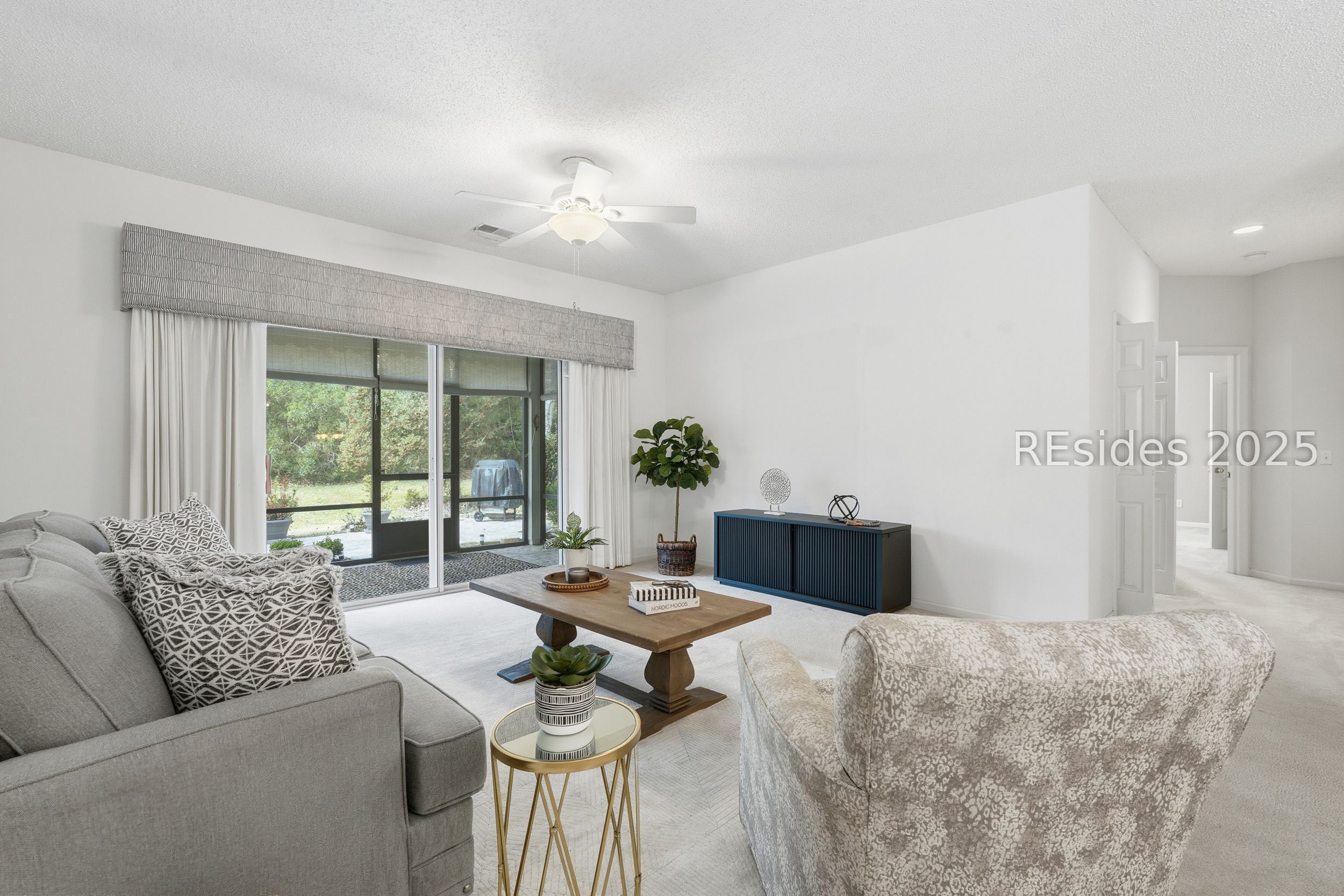Welcome to 56 Doncaster Lane, where Sun City Hilton Head's relaxed, resort-style living is a golf cart ride away. This impeccably maintained Egret offers 2-bedrooms, 2-baths and features a versatile den-ideal for a home office, hobby space, or extra guest accommodations. An almost new 2024 roof adds peace of mind, while the screened lanai offers a tranquil spot to enjoy morning coffee surrounded by a private, wooded backdrop. Just outside your front door, enjoy world-class amenities, golf, fitness centers, pickleball, social clubs, and endless opportunities to connect with neighbors and friends. Whether you're seeking quiet Lowcountry days or an active social calendar, this home provides the perfect place to live the Sun City Hilton Head lifestyle.