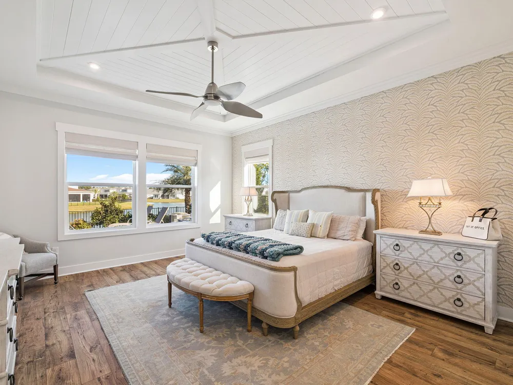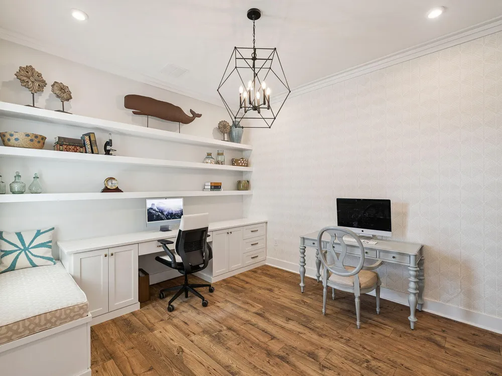 - Built-in Bookcase, Tray Ceiling(s), Coffered Ceiling(s), Vaulted Ceiling(s), Fireplace, Kitchen Island